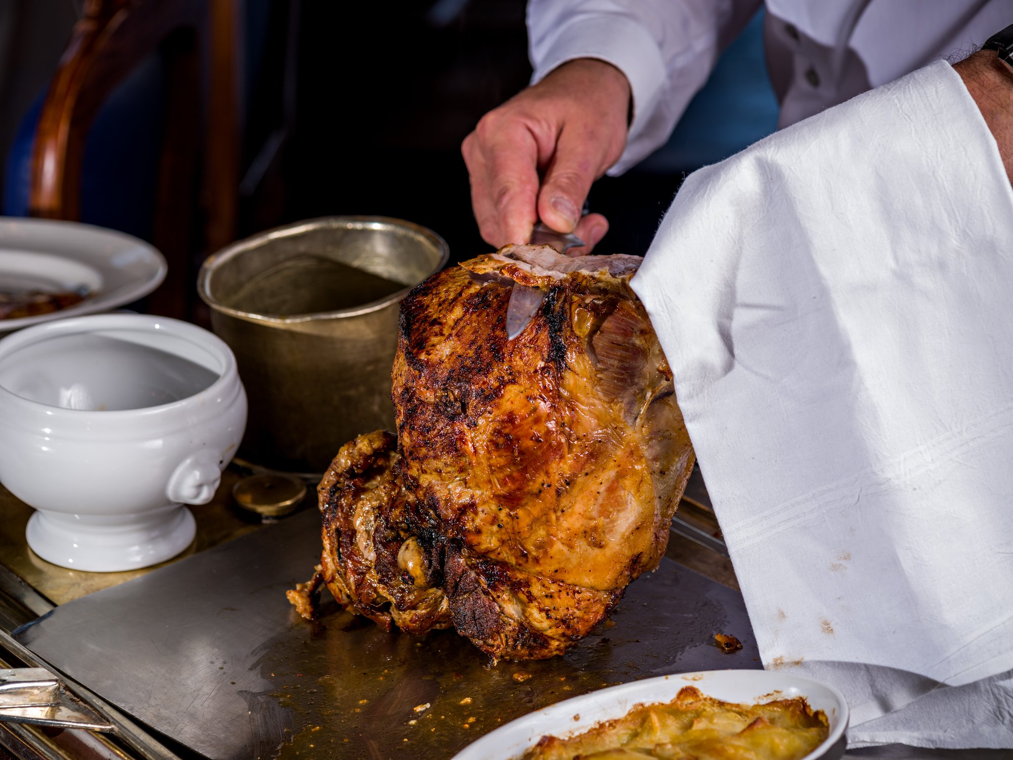 En salle, c’est un autre plaisir, celui d’un spectacle maîtrisé par les serveurs et les maîtres d’hôtel, assurant le service de 600 couverts par jour, une chorégraphie interrompue de temps à autres par le passage d’une voiture de tranche authentique. Une impression d’être au milieu d’un ballet où les plateaux dansent entre cuisine et salle, laissant derrière eux une odeur appétissante. Autant de mets savoureux, réalisés à partir de produits de qualité, qui mettent sur le devant de la scène les plats en sauce et les mijotés, tous faits maison, pour une gourmandise authentique et sincère appelant à plonger un morceau de pain dans l’assiette.