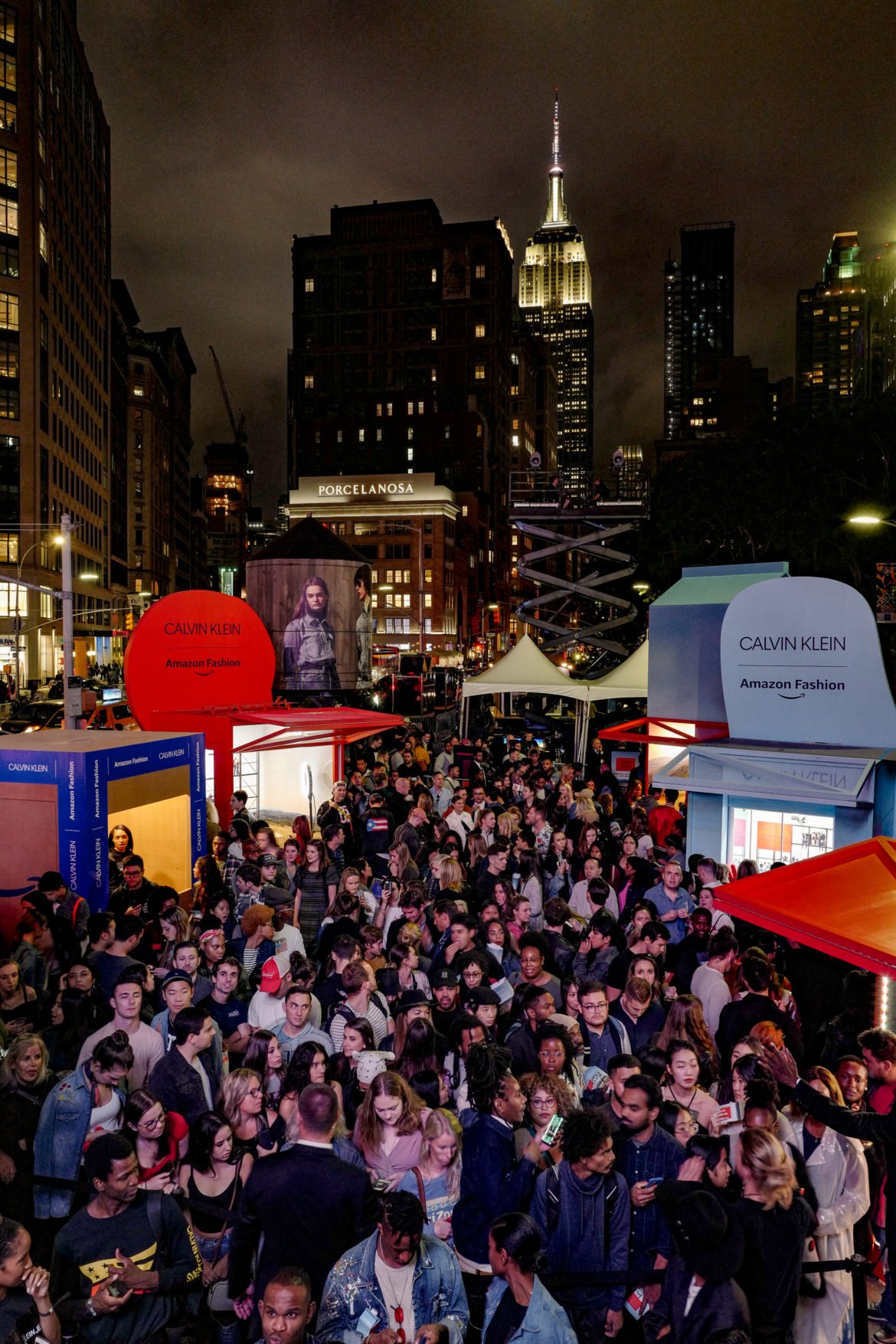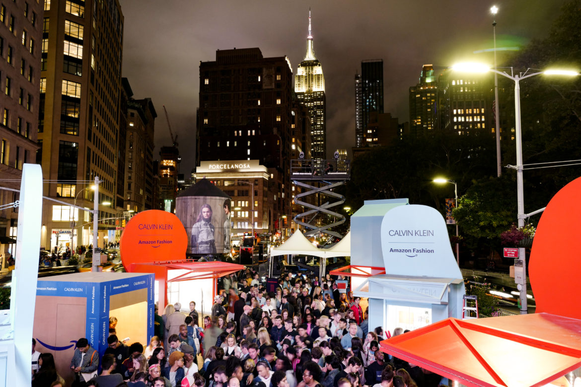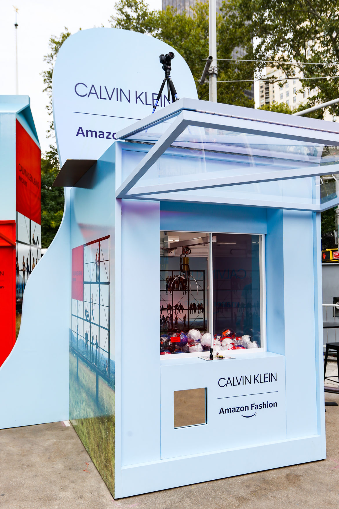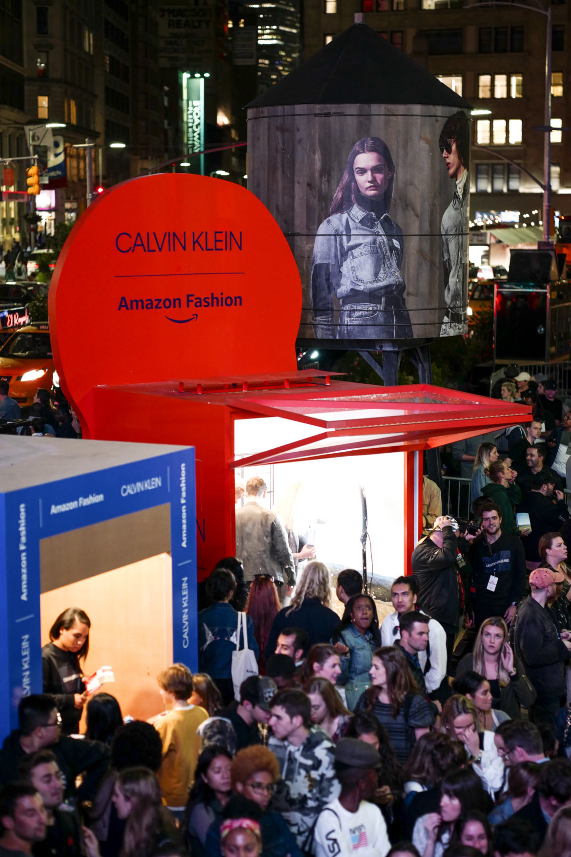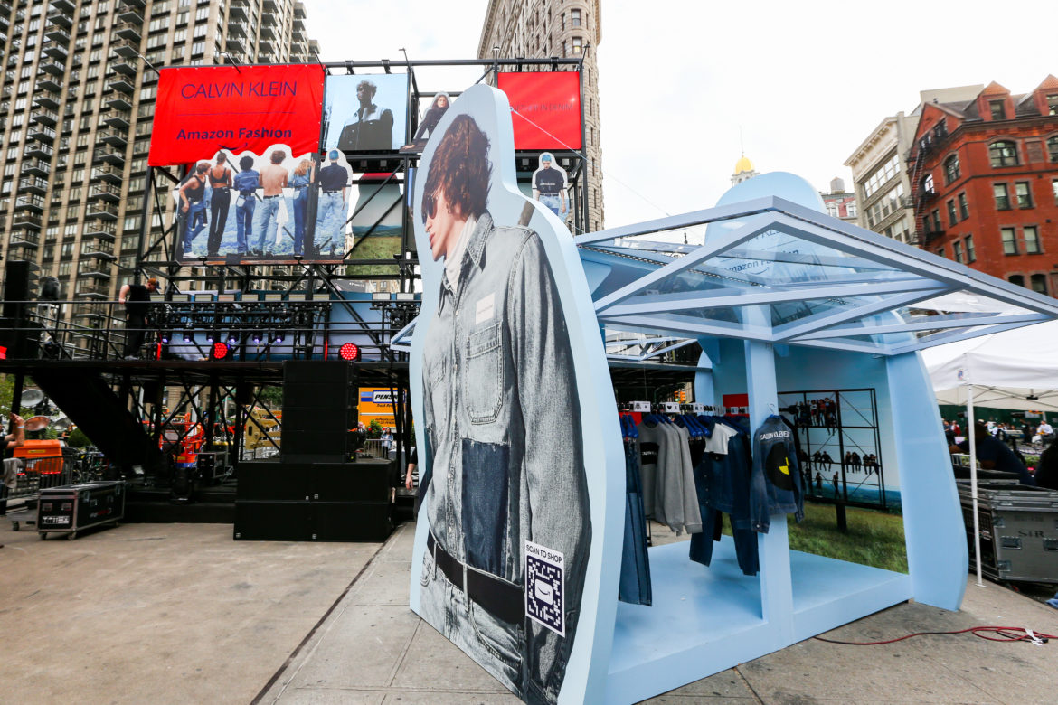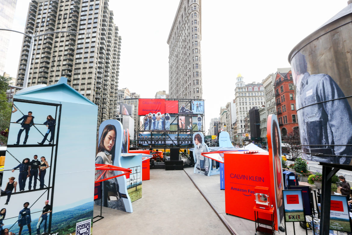 The CALVIN KLEIN x Amazon Fashion NYC Market, which opened today, is an interactive brand event at the Flatiron Plaza in New York City. The market brings to life the CALVIN KLEIN JEANS fall advertising campaign through interactive stalls that integrate product and technology, with a series of digitally enhanced experiences driving to Amazon.com/mycalvins. The CALVIN KLEIN x Amazon Fashion NYC Market, located at the Flatiron Plaza on 23rd Street between Broadway and Fifth Avenue in Manhattan, New York City,