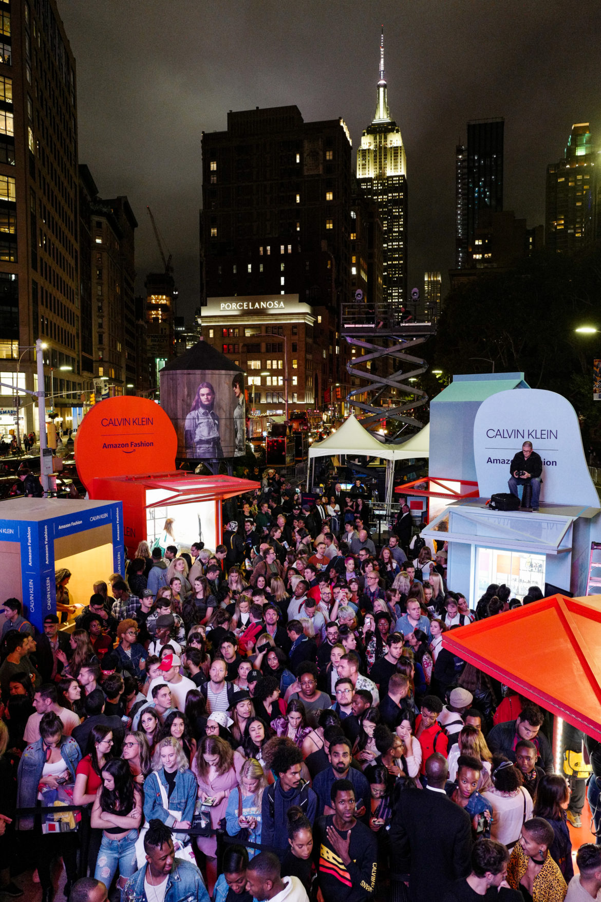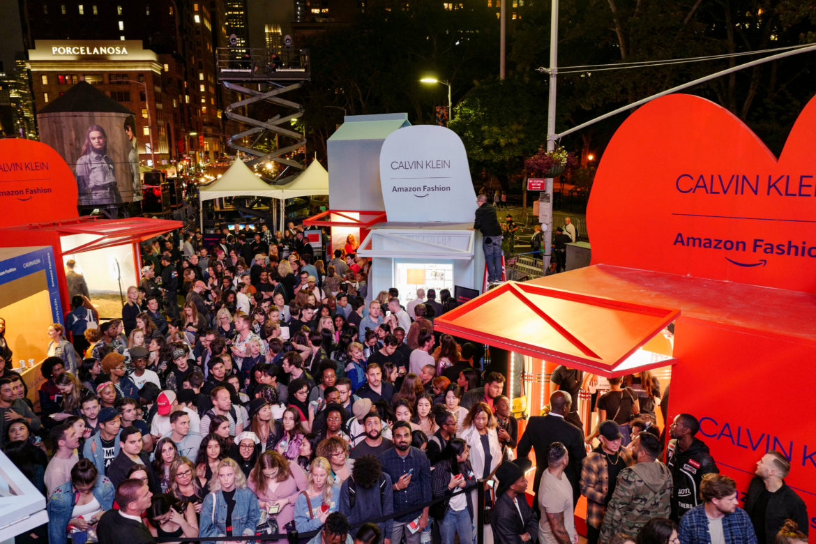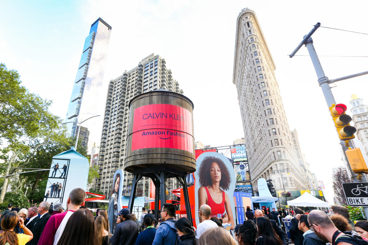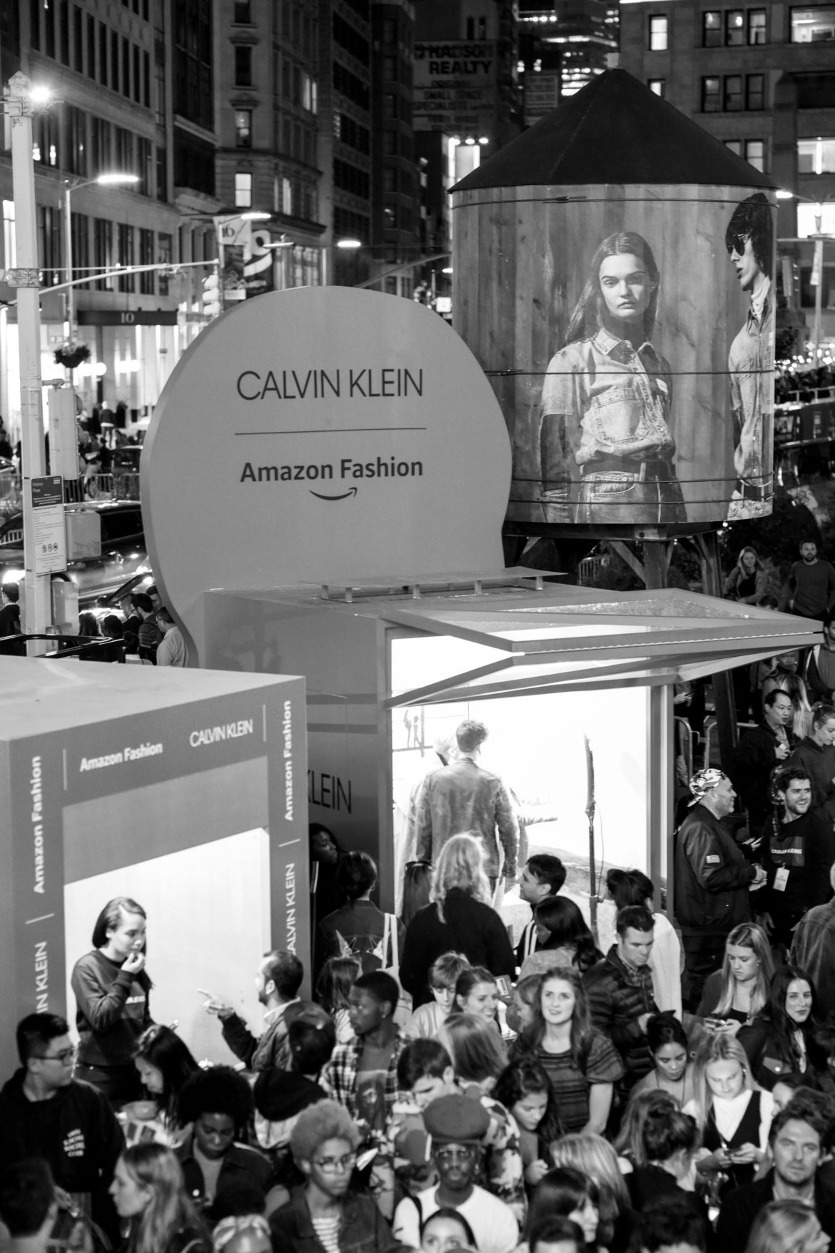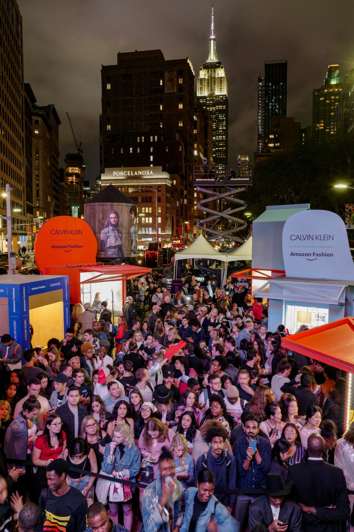 The CALVIN KLEIN x Amazon Fashion NYC Market, which opened today, is an interactive brand event at the Flatiron Plaza in New York City. The market brings to life the CALVIN KLEIN JEANS fall advertising campaign through interactive stalls that integrate product and technology, with a series of digitally enhanced experiences driving to Amazon.com/mycalvins. The CALVIN KLEIN x Amazon Fashion NYC Market, located at the Flatiron Plaza on 23rd Street between Broadway and Fifth Avenue in Manhattan, New York City,