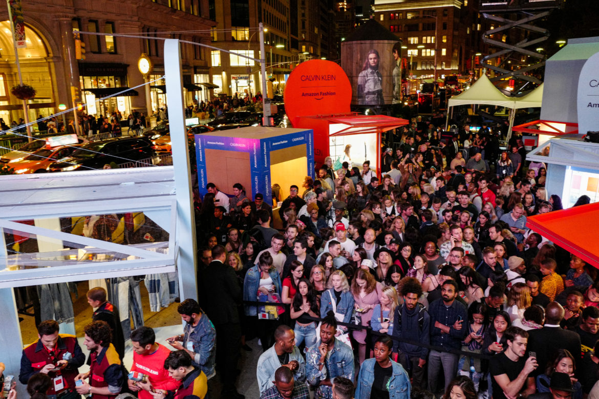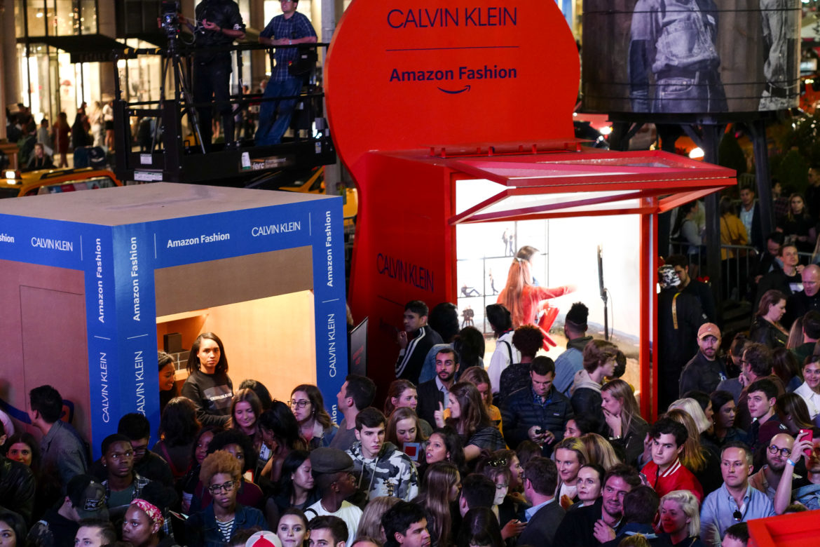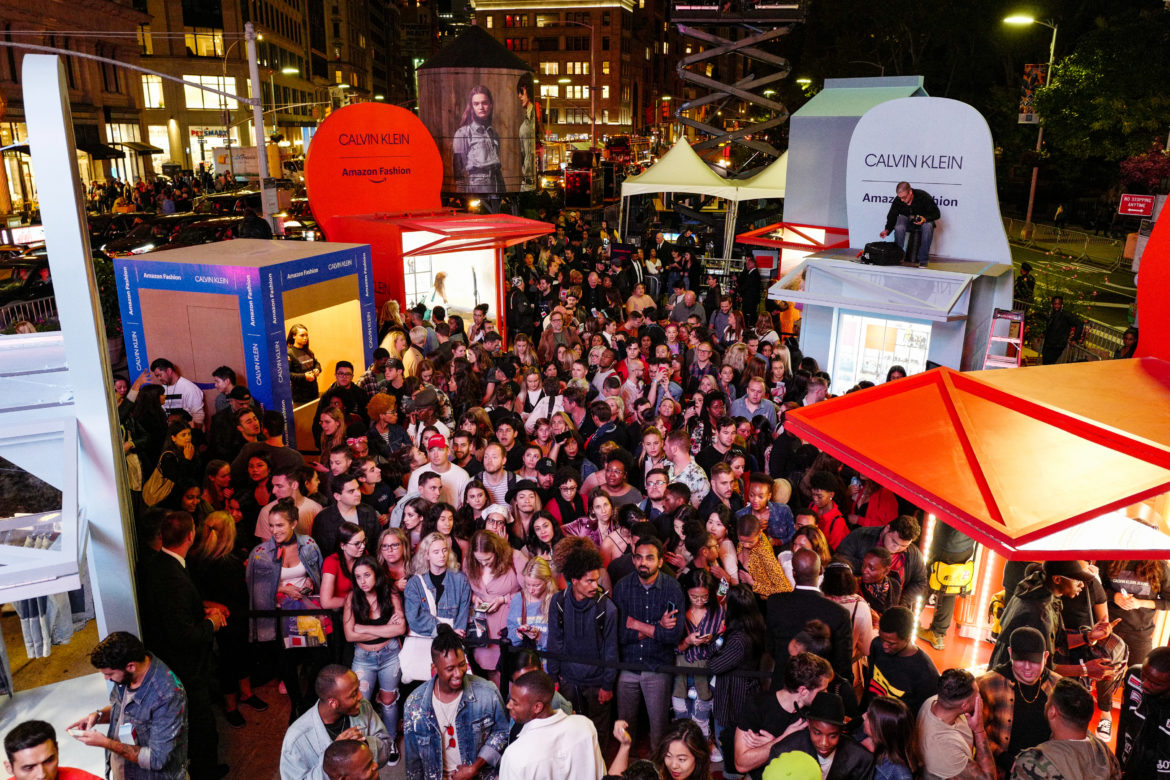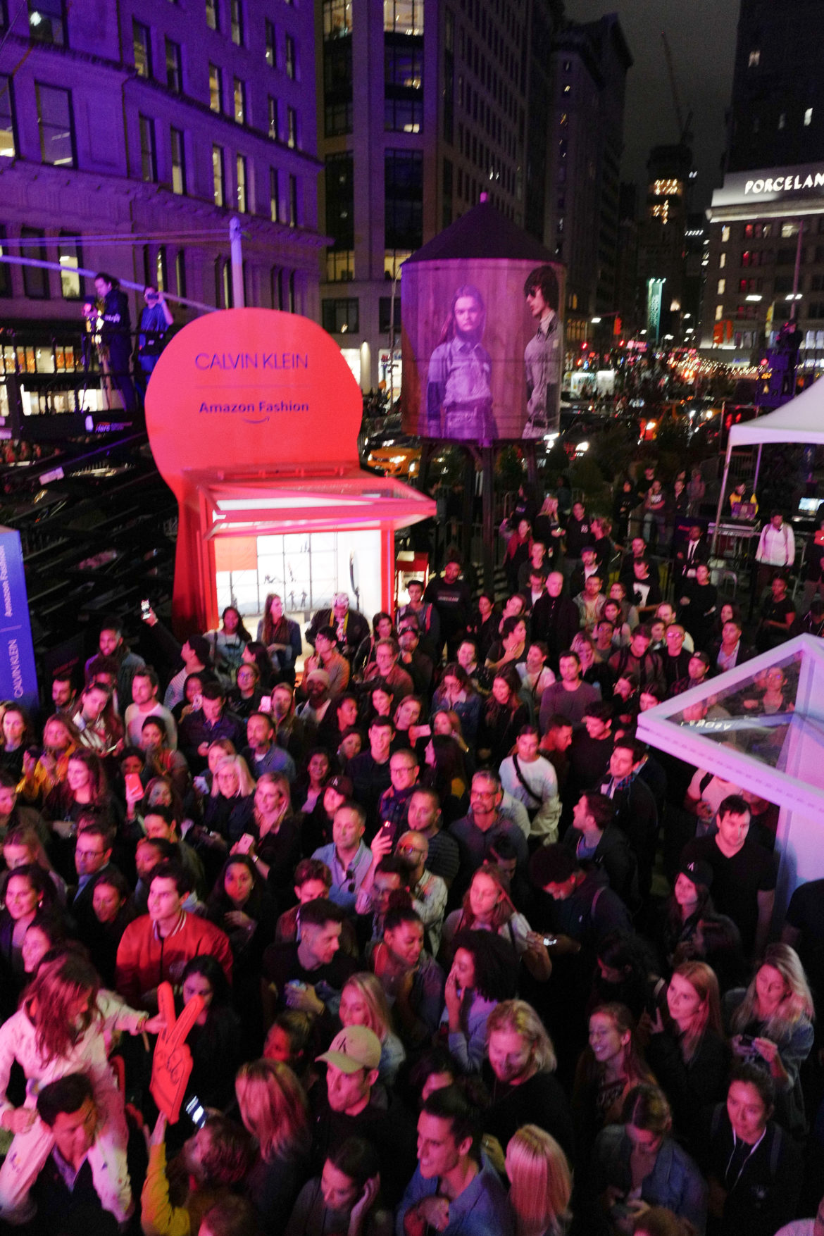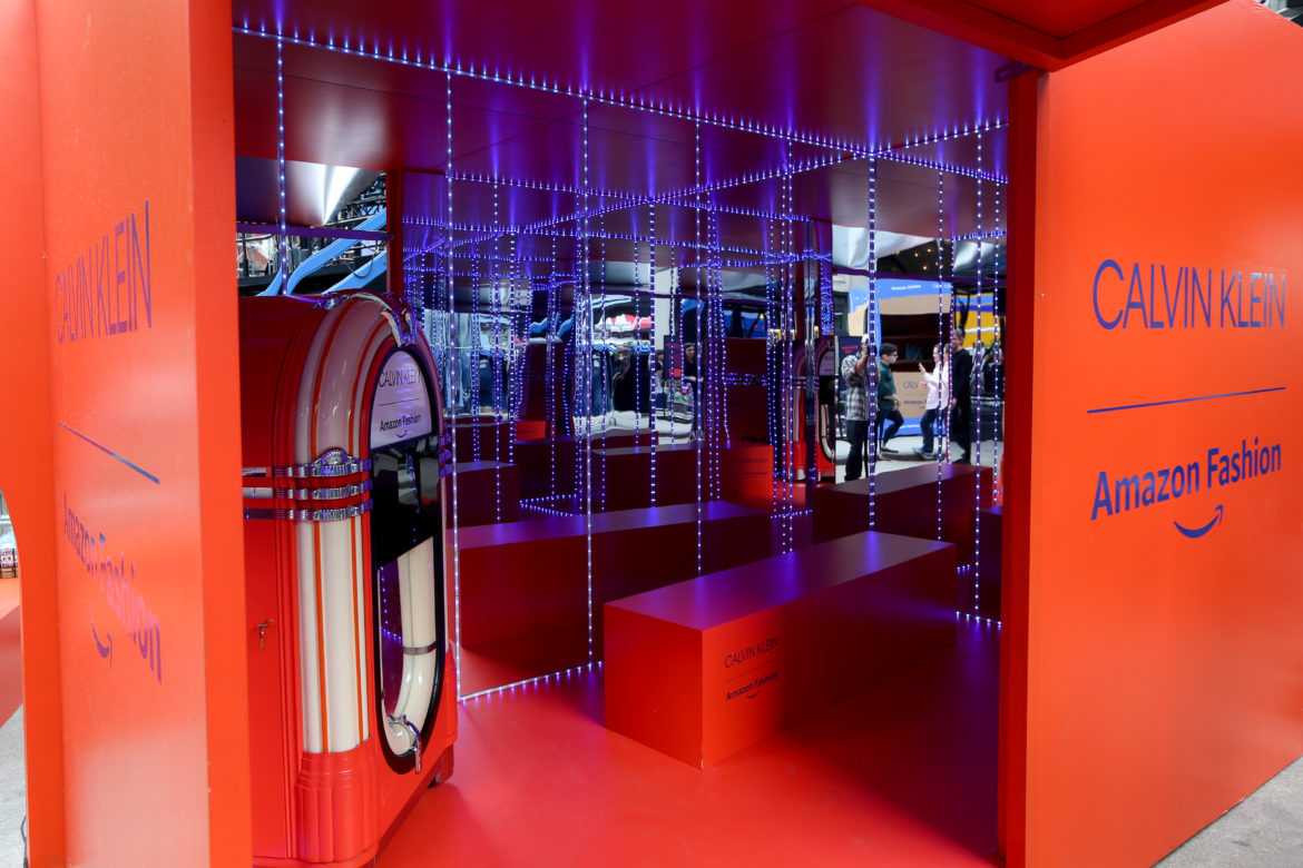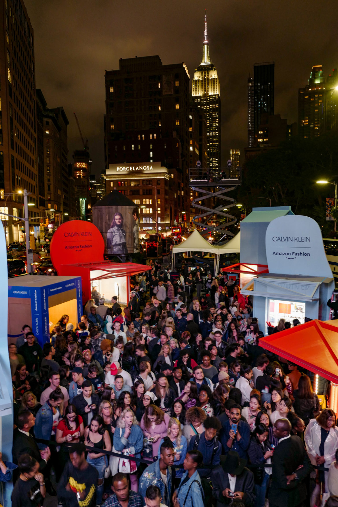 The CALVIN KLEIN x Amazon Fashion NYC Market, which opened today, is an interactive brand event at the Flatiron Plaza in New York City. The market brings to life the CALVIN KLEIN JEANS fall advertising campaign through interactive stalls that integrate product and technology, with a series of digitally enhanced experiences driving to Amazon.com/mycalvins. The CALVIN KLEIN x Amazon Fashion NYC Market, located at the Flatiron Plaza on 23rd Street between Broadway and Fifth Avenue in Manhattan, New York City,