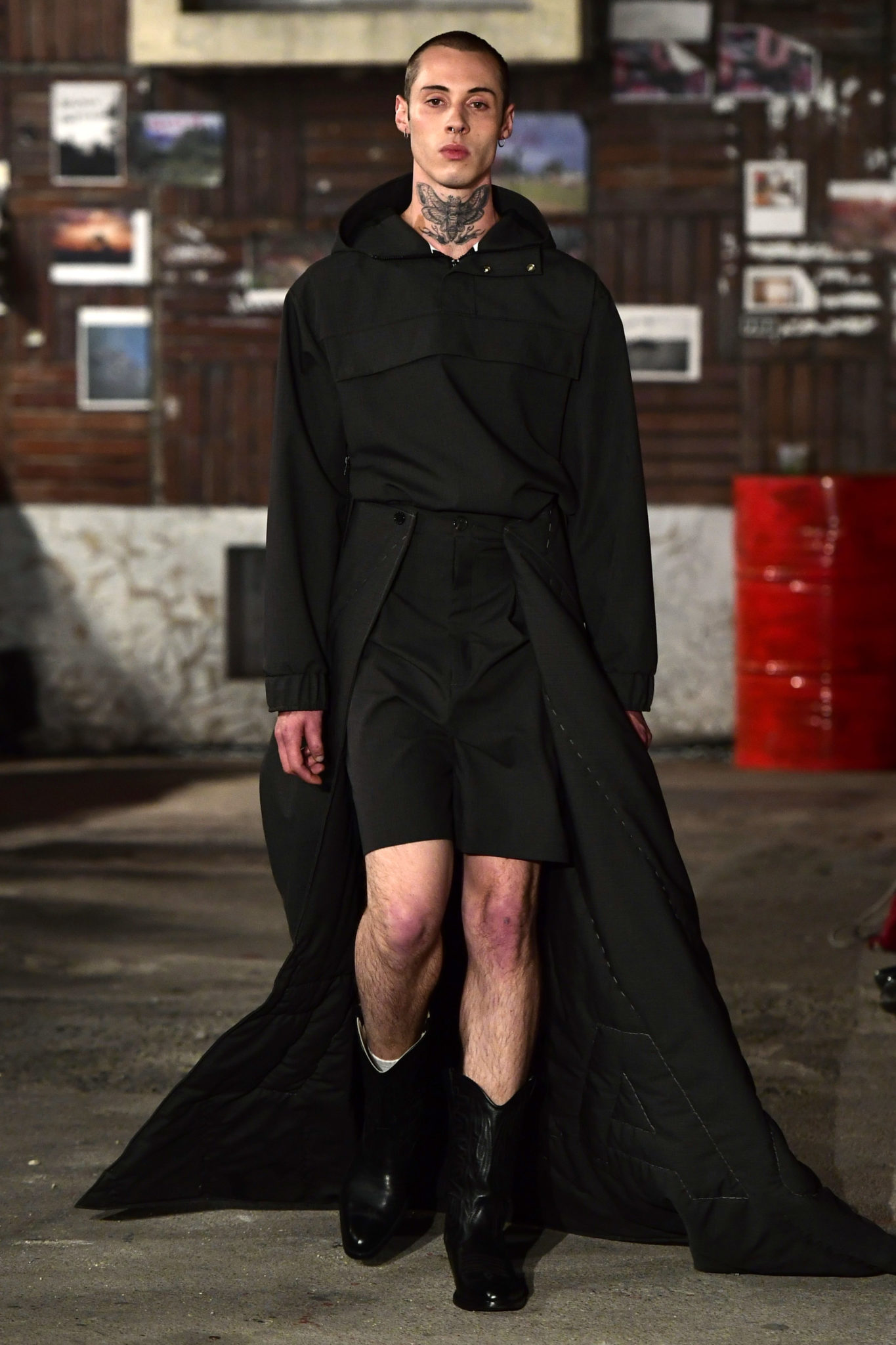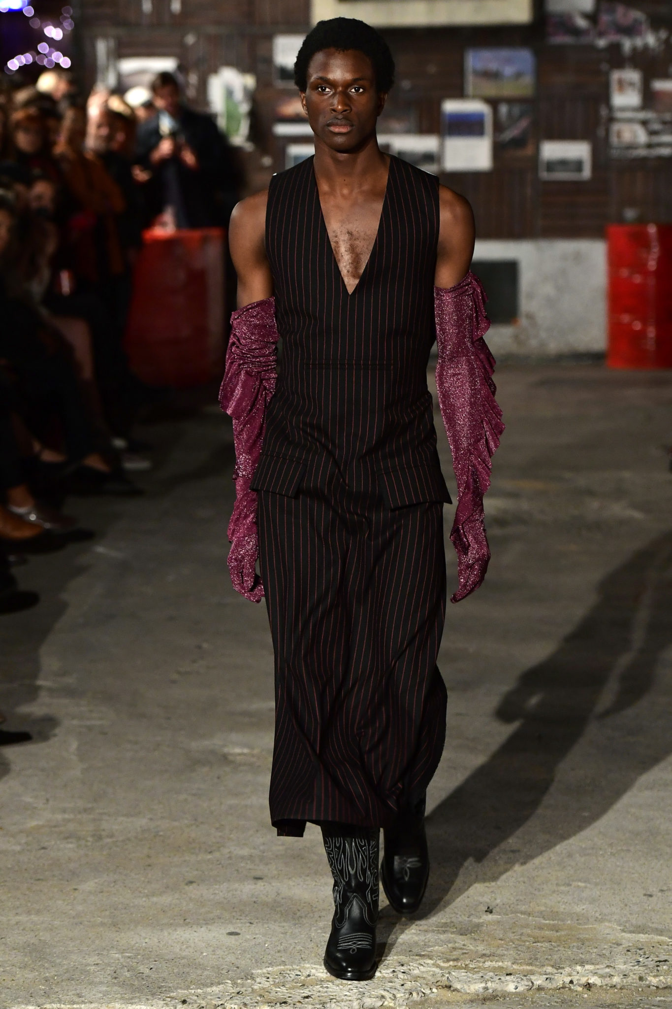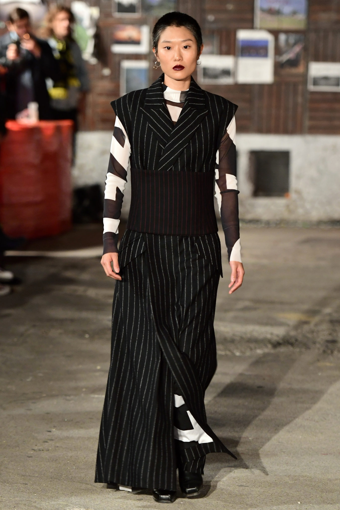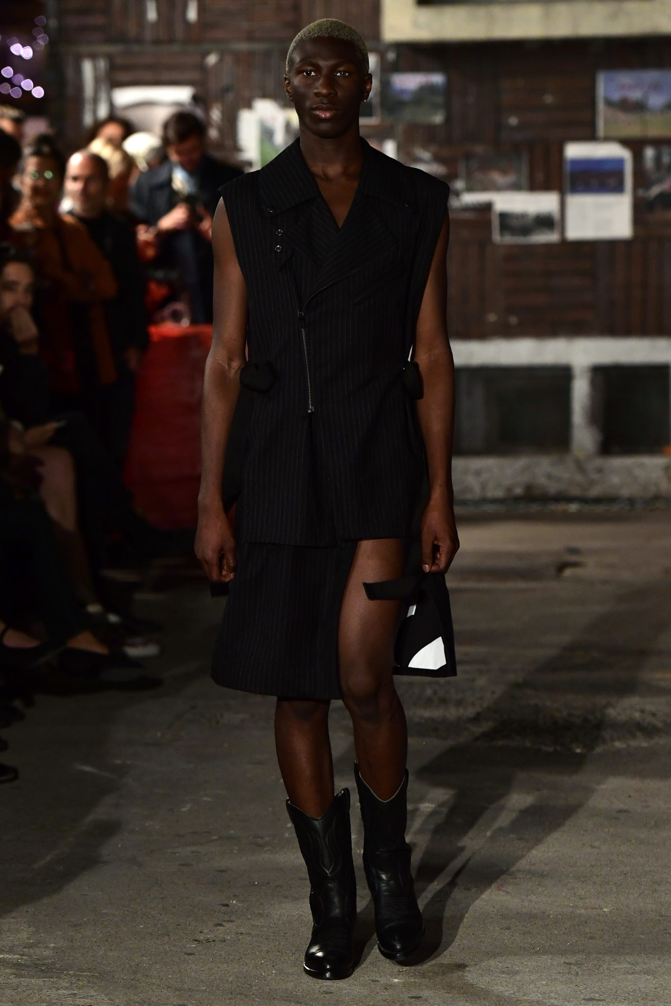 de récupération, qu’on retrouve sur une jupe à volant ou un pantalon. Les sensibilités de chaque membre du collectif cohabitent et se répondent dans un vestiaire cohérent, où le tailleur est revisité sous plusieurs formes, tantôt organique, tantôt conceptuelle, déconstruite, radicale ou minutieuse… Les savoir-faire de chacun.e sont exploités au maximum pour donner vie à une garde-robe ouverte, où les pièces naviguent de l’homme à la femme, dans un mouvement permanent qui annonce une esthétique nouvelle, spontanée et à rebours des tendances actuelles.