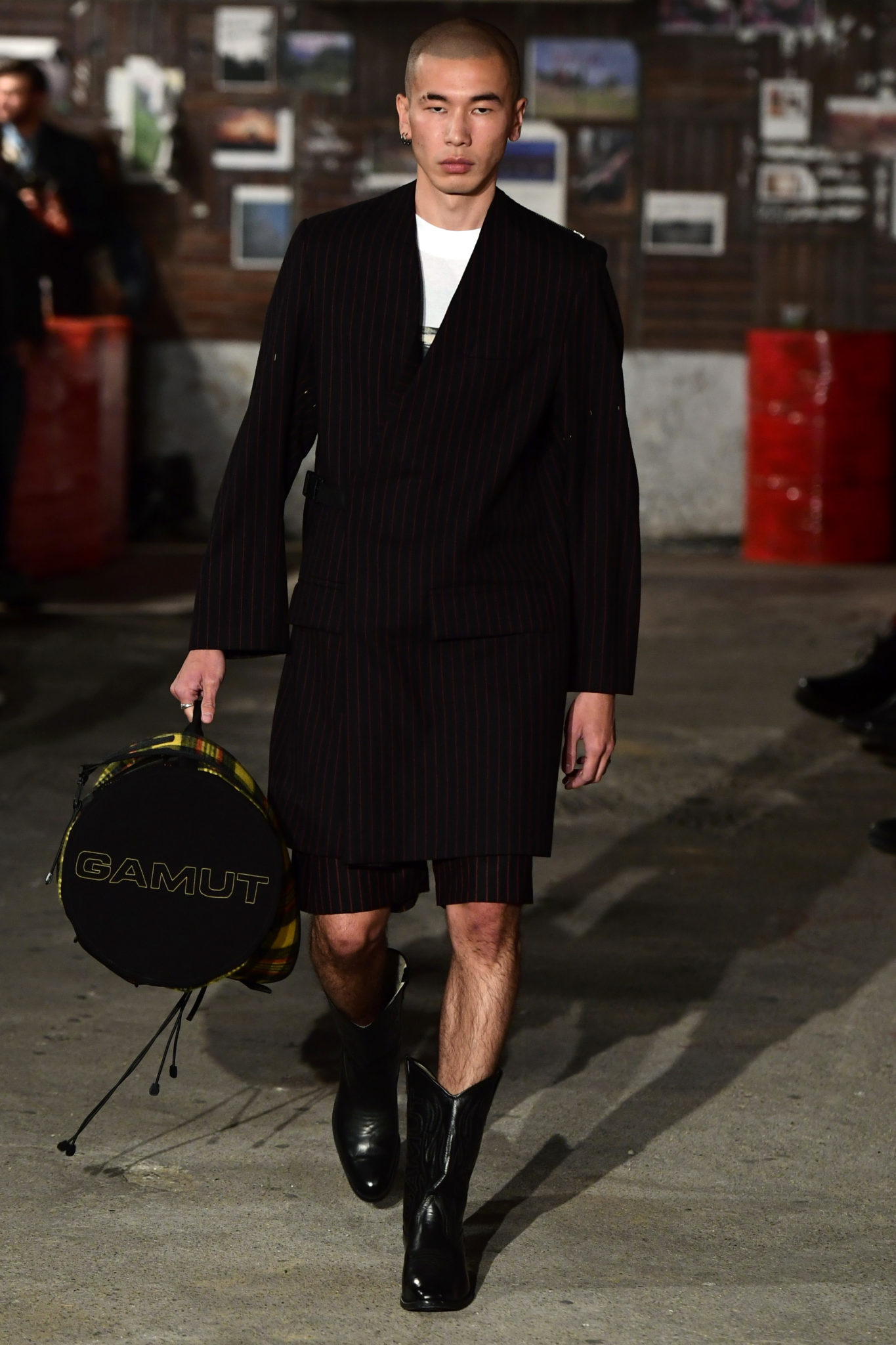 Le collectif GAMUT est le fruit de la rencontre entre cinq designers de mode, un groupe d’ami.e.s formé à La Cambre, en Belgique. Leur première collection, présentée le 28 septembre 2018 à La Station – Gare des Mines, fait dialoguer avec bienveillance les univers et les domaines d’expertise respectifs de ses membres. Sur une même silhouette, on distingue une interprétation du tailleur traditionnel, envahie