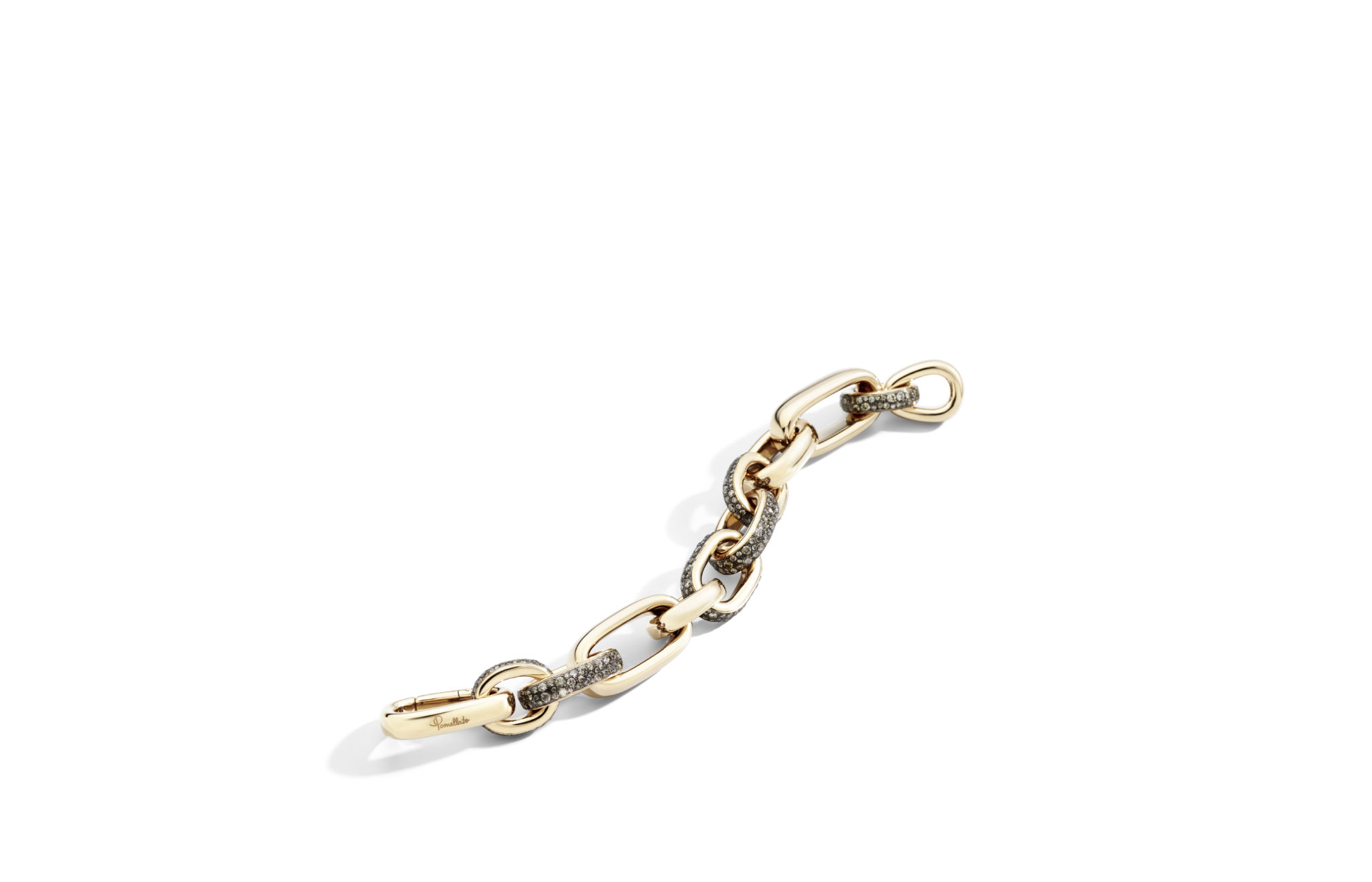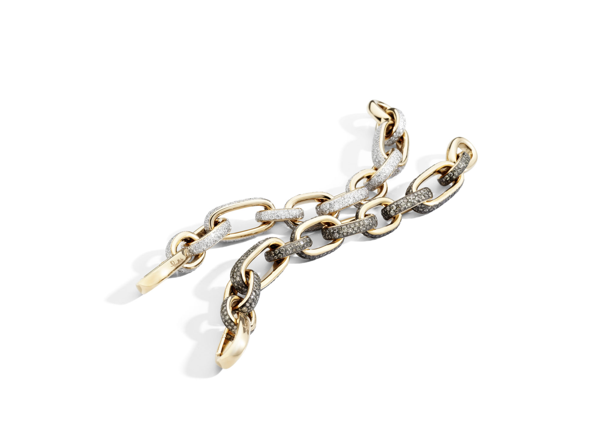 Les majestueuses bagues ICONICA sont sculptées soit en or rose et or blanc alors pavés de diamants blancs, soit en or rose orné d’un pavage de diamants bruns. Arborant un audacieux design milanais, les bracelets chaînes en or rose et or blanc combinent de manière remarquable maillons en or pur et maillons en pavés de diamants blancs. Une variante du même design existe en or rose pavé de diamants bruns pour proposer une sensuelle alliance des textures.