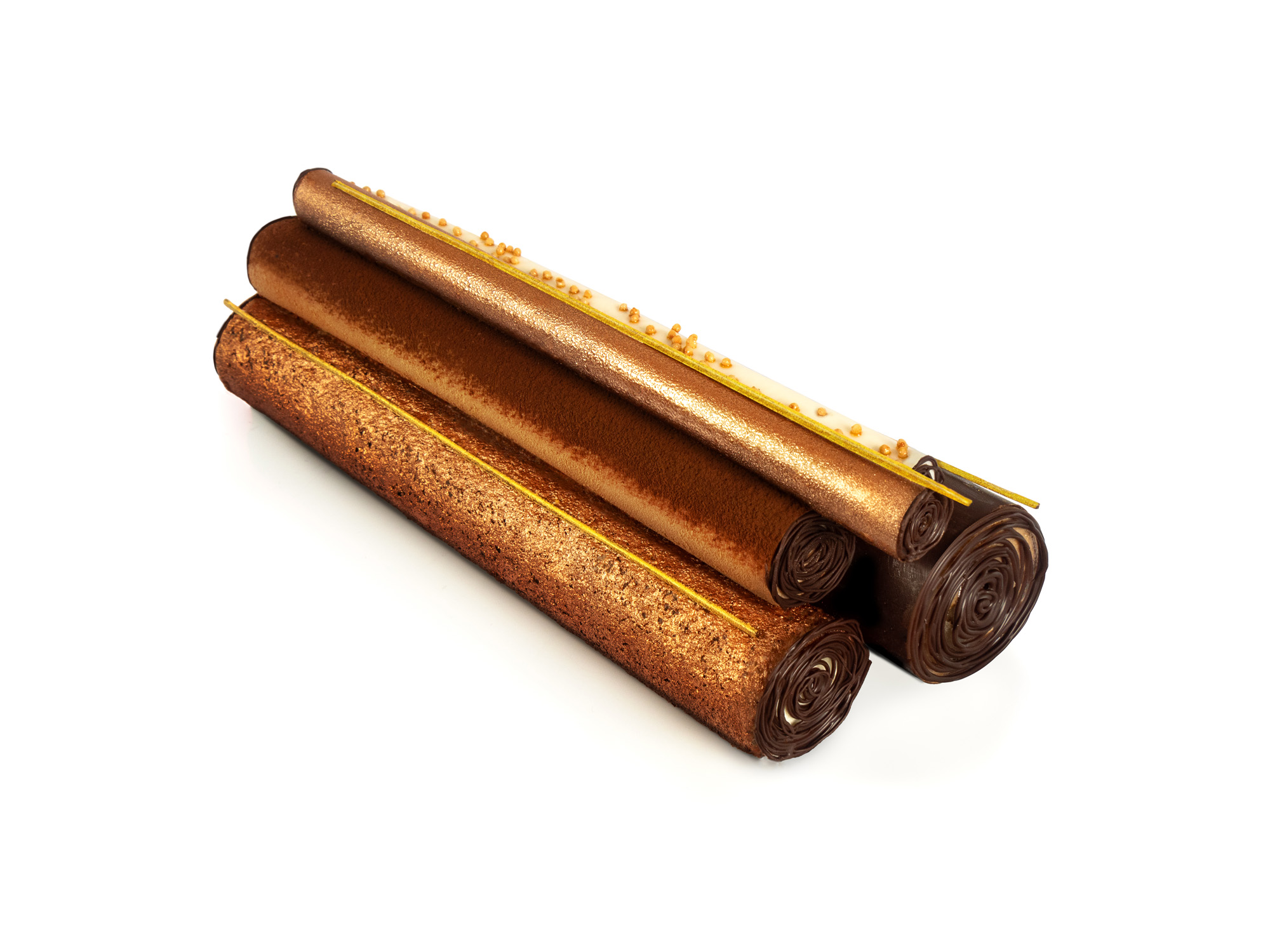 Imaginée par Nina Métayer en clin d’œil à la « cigarette russe ». Savamment superposées, les cinq cigarettes russes renferment des textures et accords différents autour d’une association légère et savoureuse de noisette, de bergamote et de chocolat.