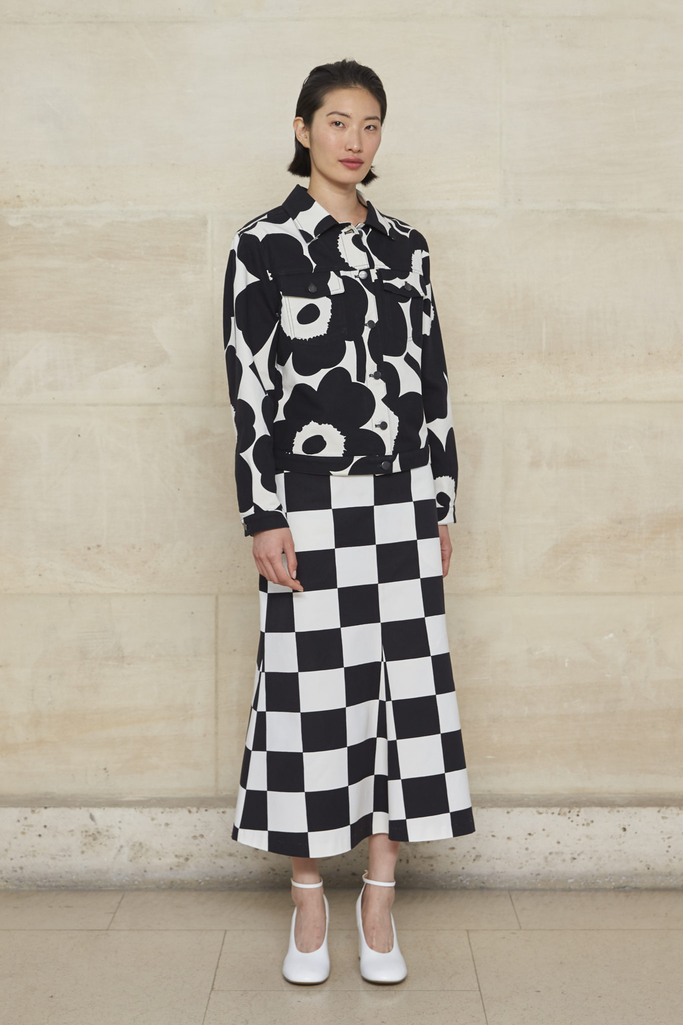 The modern silhouettes of the collection have been skilfully paired with Marimekko’s renowned floral patterns, highlighting the design house’s art of print making. New organic prints create a playful dialogue with distinctive and graphical archival patterns designed between the 1950s and the 1970s. The season’s colour palette combines grass green with bright red, and monochrome pieces provide a peaceful contrast to the blooming prints. Most of the patterned woven fabrics in the collection have been printed at Marimekko’s in-house factory in Helsinki, where around a million metres of fabric are printed every year. The printing mill serves both as a factory and as an innovative hub for Marimekko’s creative community.