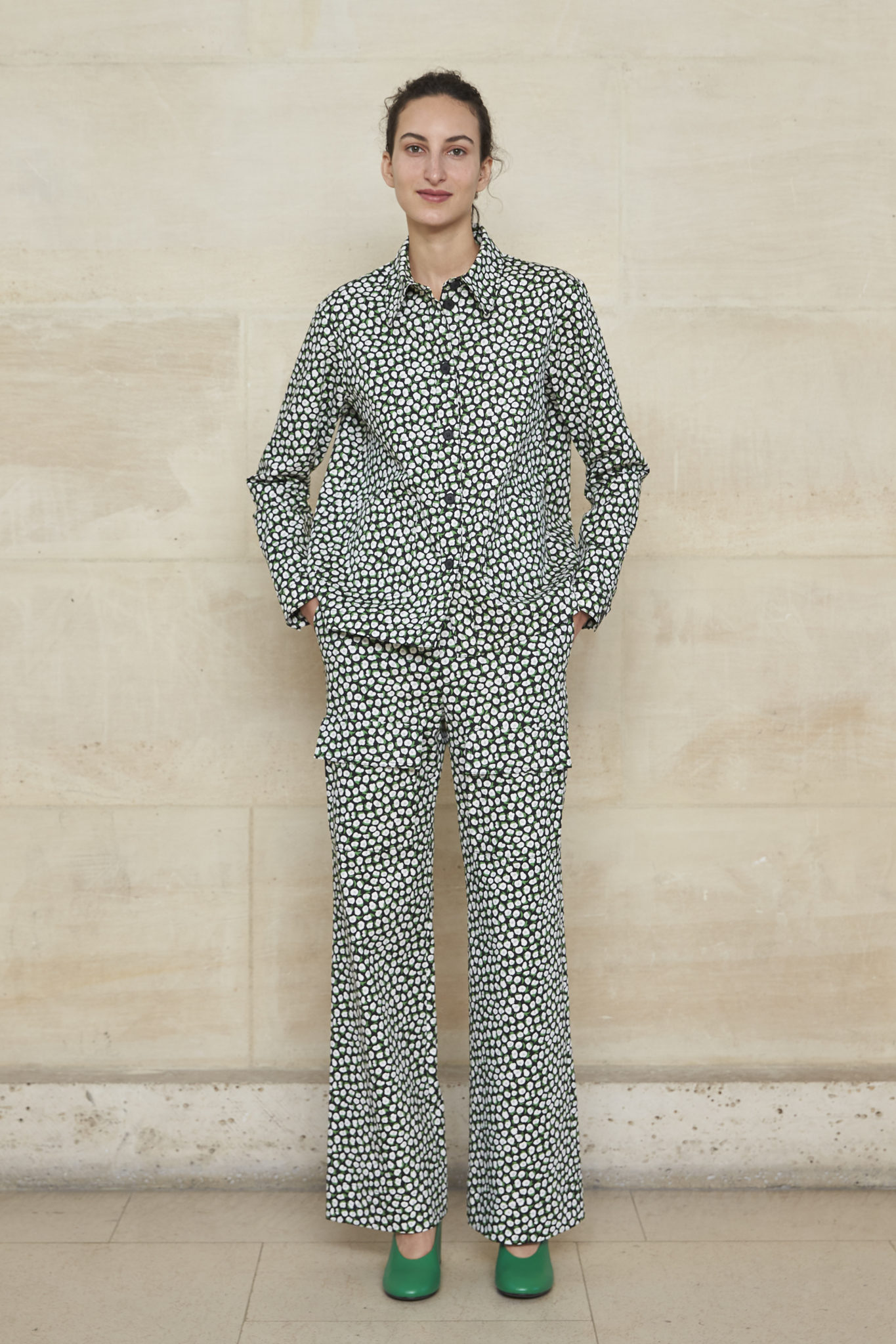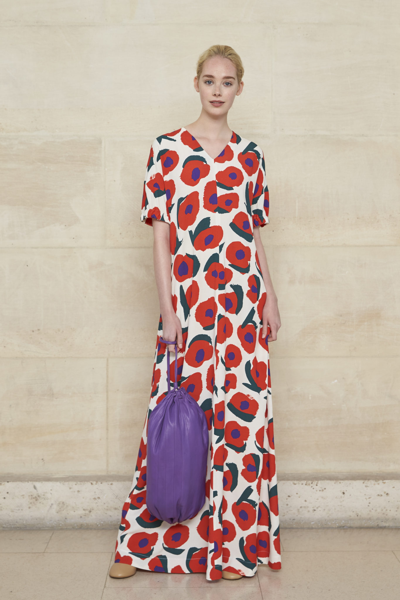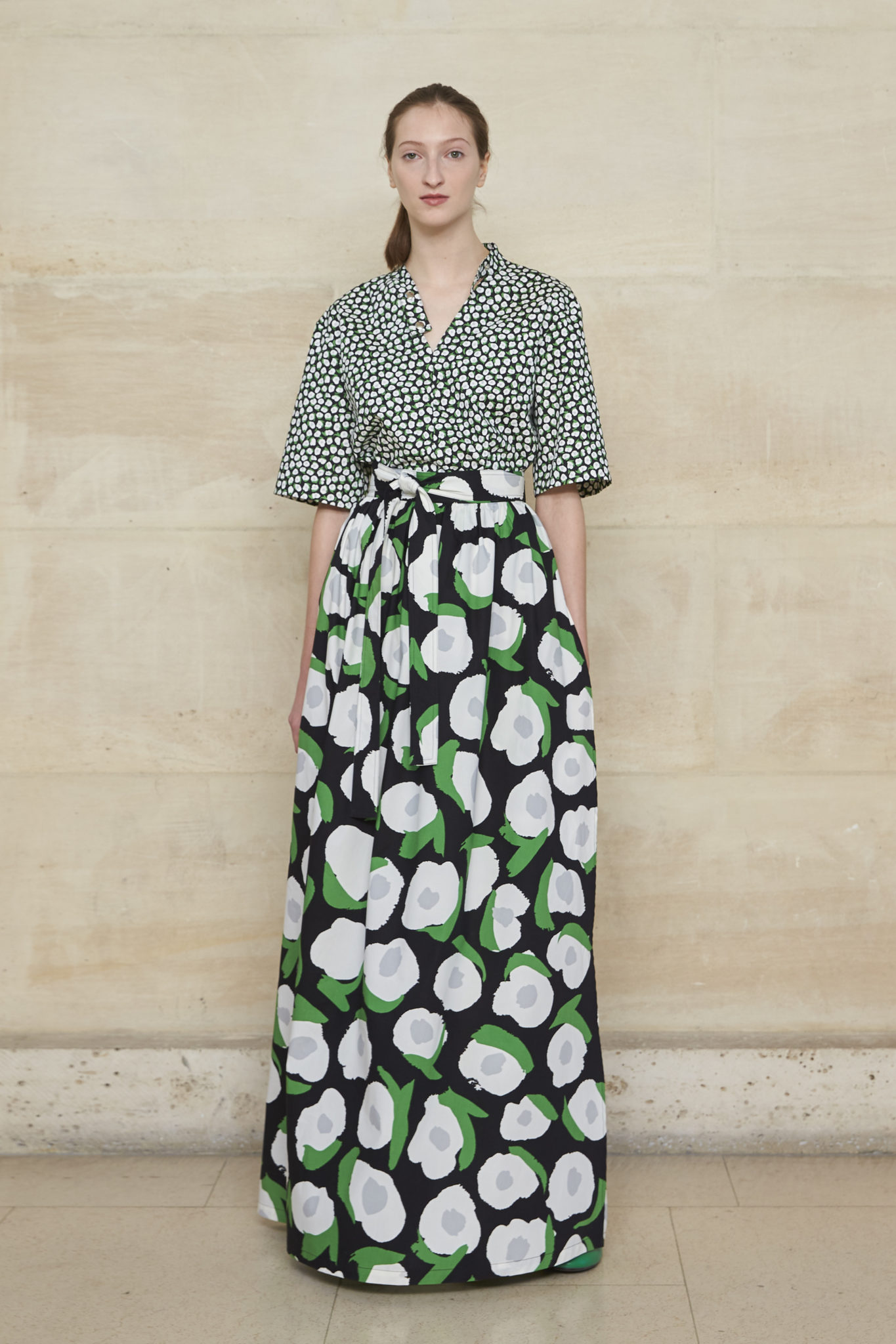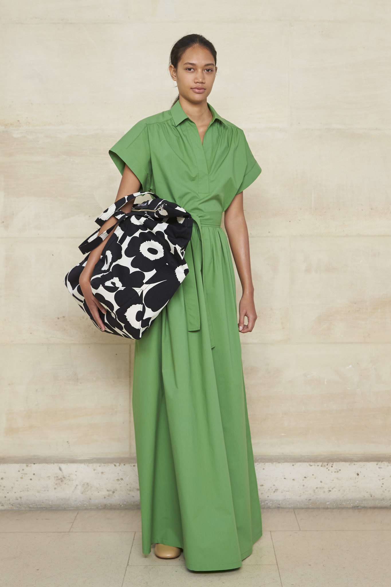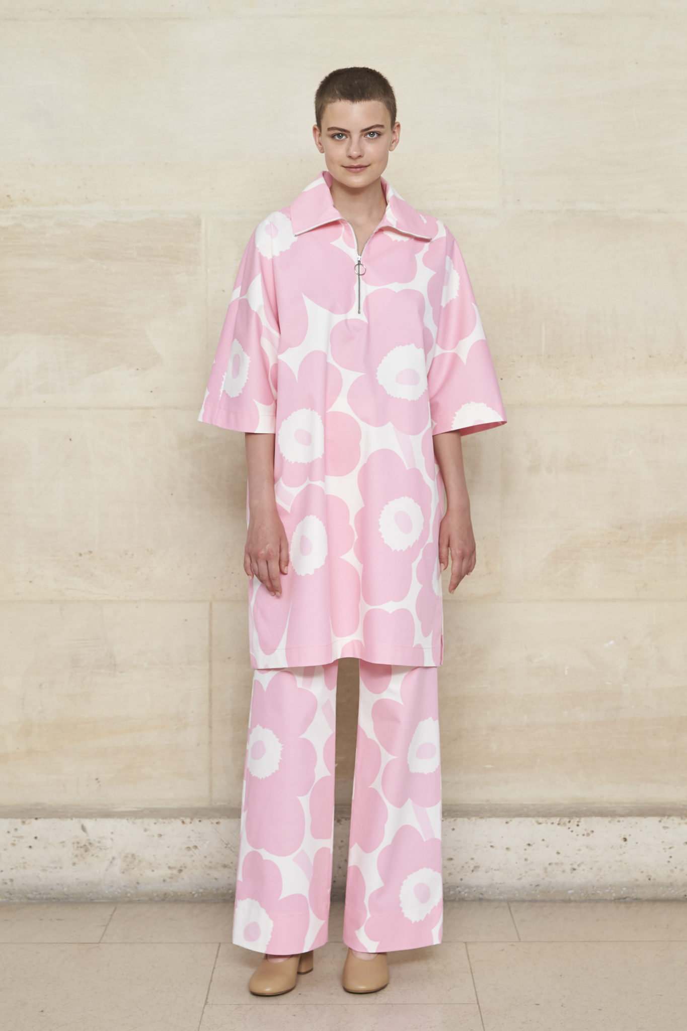 The modern silhouettes of the collection have been skilfully paired with Marimekko’s renowned floral patterns, highlighting the design house’s art of print making. New organic prints create a playful dialogue with distinctive and graphical archival patterns designed between the 1950s and the 1970s. The season’s colour palette combines grass green with bright red, and monochrome pieces provide a peaceful contrast to the blooming prints. Most of the patterned woven fabrics in the collection have been printed at Marimekko’s in-house factory in Helsinki, where around a million metres of fabric are printed every year. The printing mill serves both as a factory and as an innovative hub for Marimekko’s creative community.