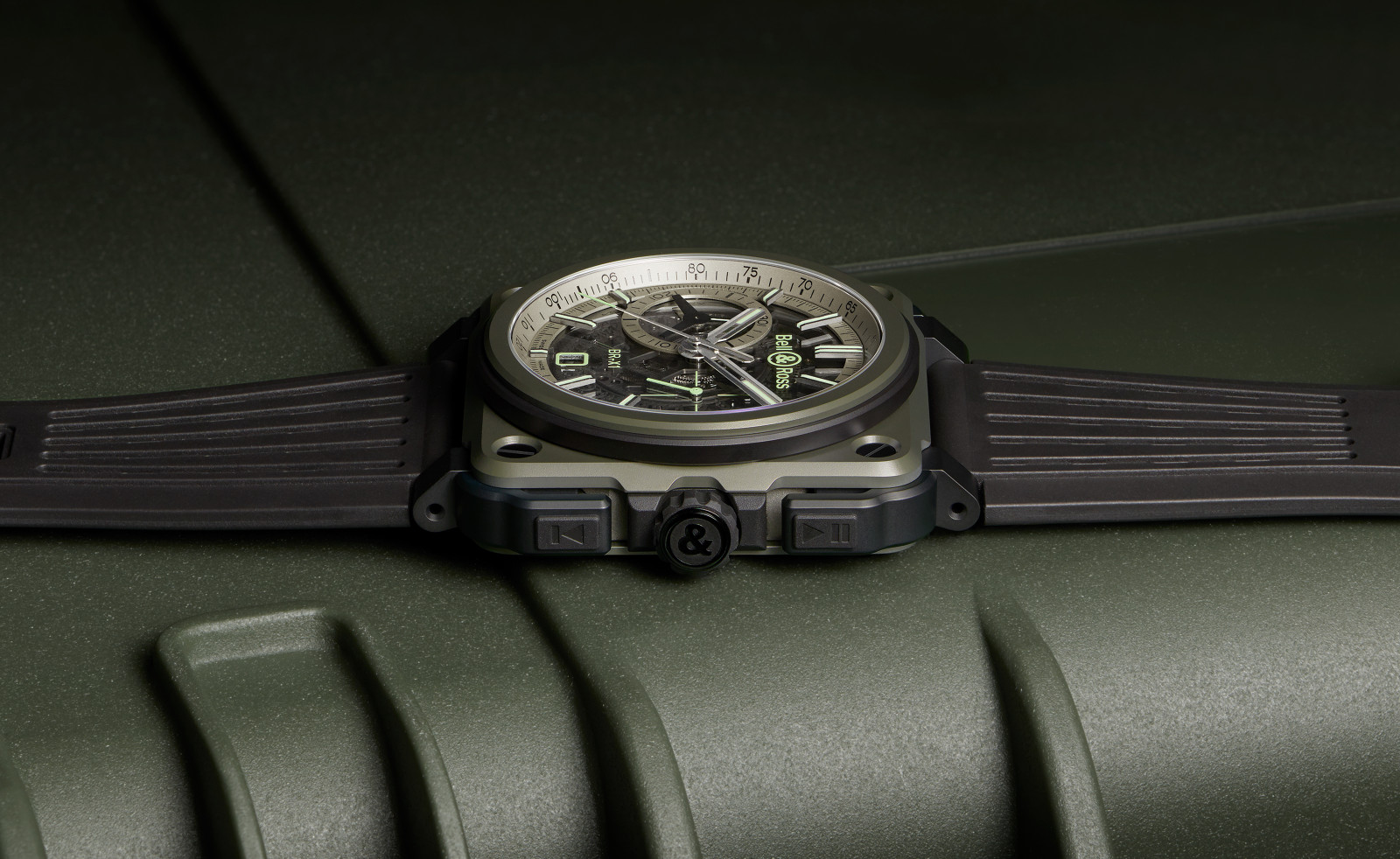 Bell & Rossdévoile sa nouvelle BR-X1 Military, un chronographe haut de gamme à l’image des avions de chasse furtifs composé d’une boîte en HRT kaki mat et d’un affichage vert ultra lumineux.