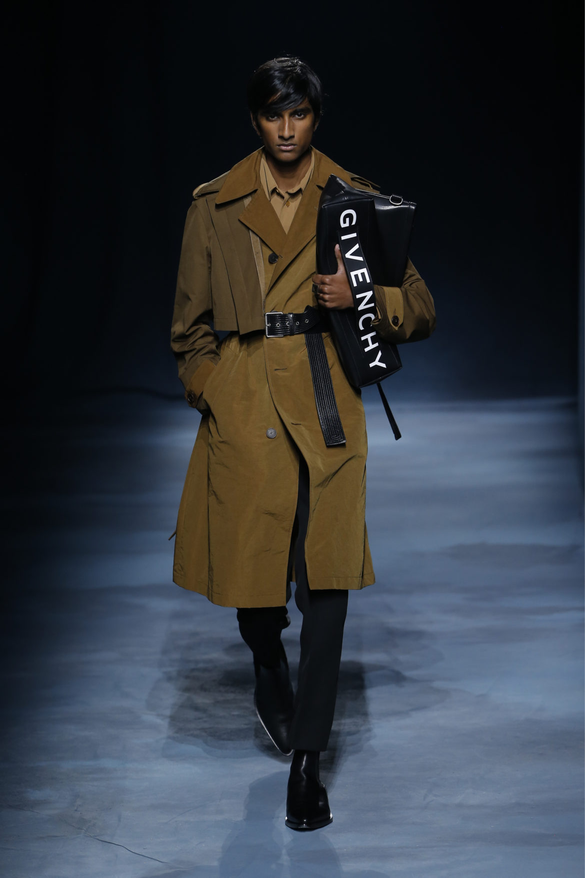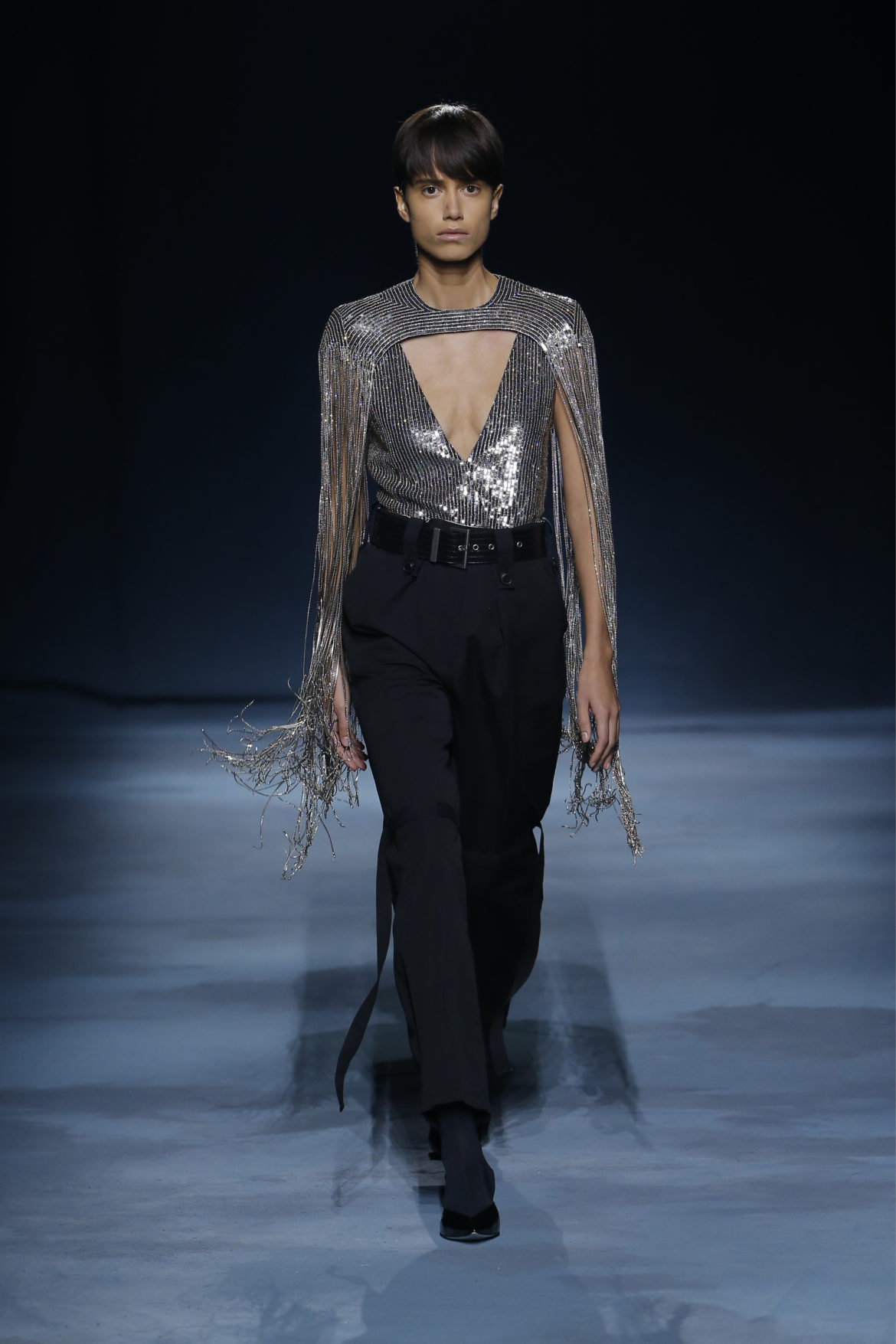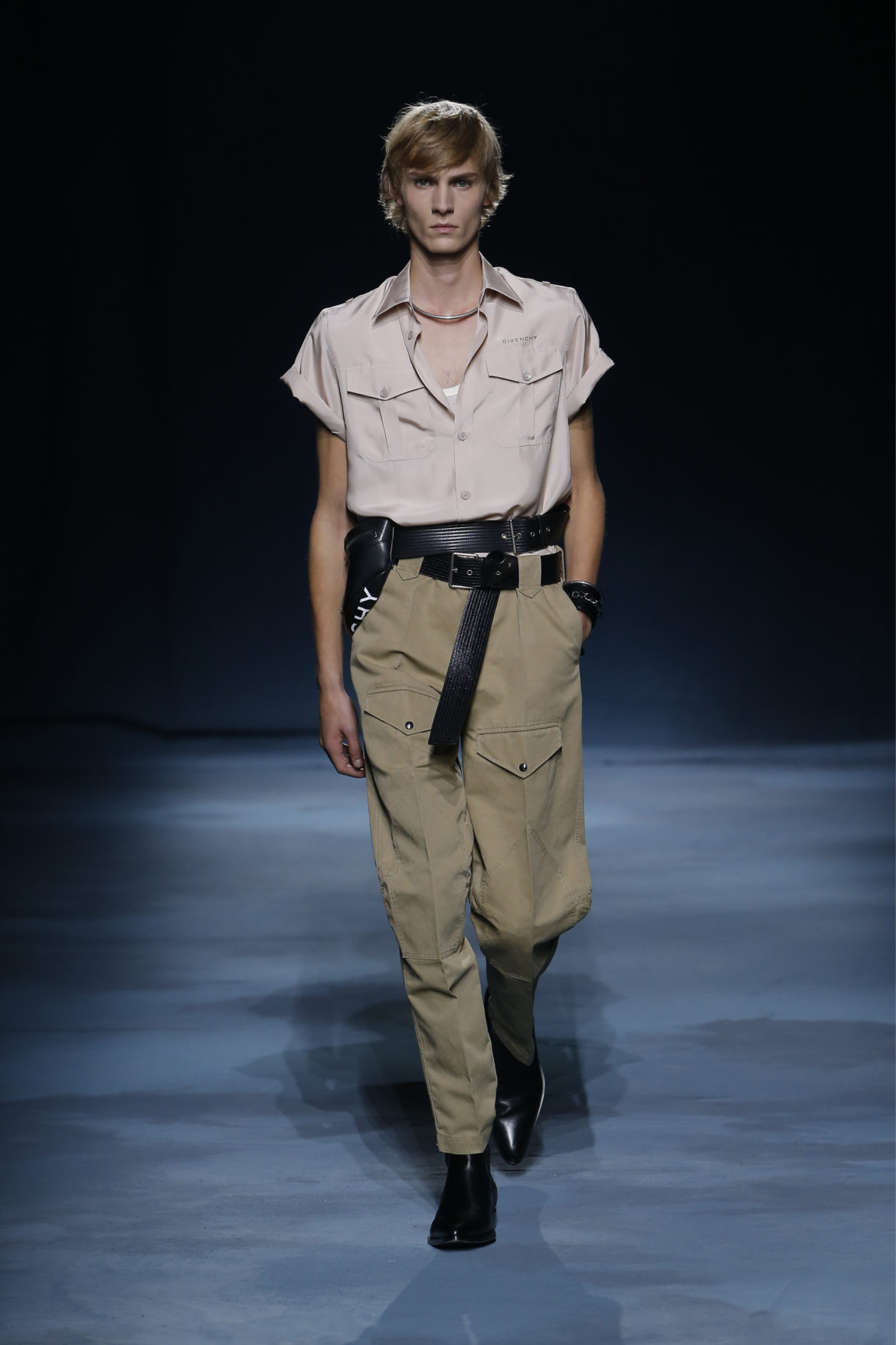 An abstract idea of mirrors informs the spring/summer 2019 women’s and men’s ready-to-wear collection by artistic director Clare Waight Keller. Manifesting the notion of the Givenchy couple, the designer mirrors female and male in each other and cross-pollinates their gender characteristics. It allows for properties conventionally comprehended as female or male to morph in a nonchalant approach to gender codes, reflective of an evolved global mentality. The transition evokes memories of iconoclasts of the past, enabling a free interaction of eras across the collection.