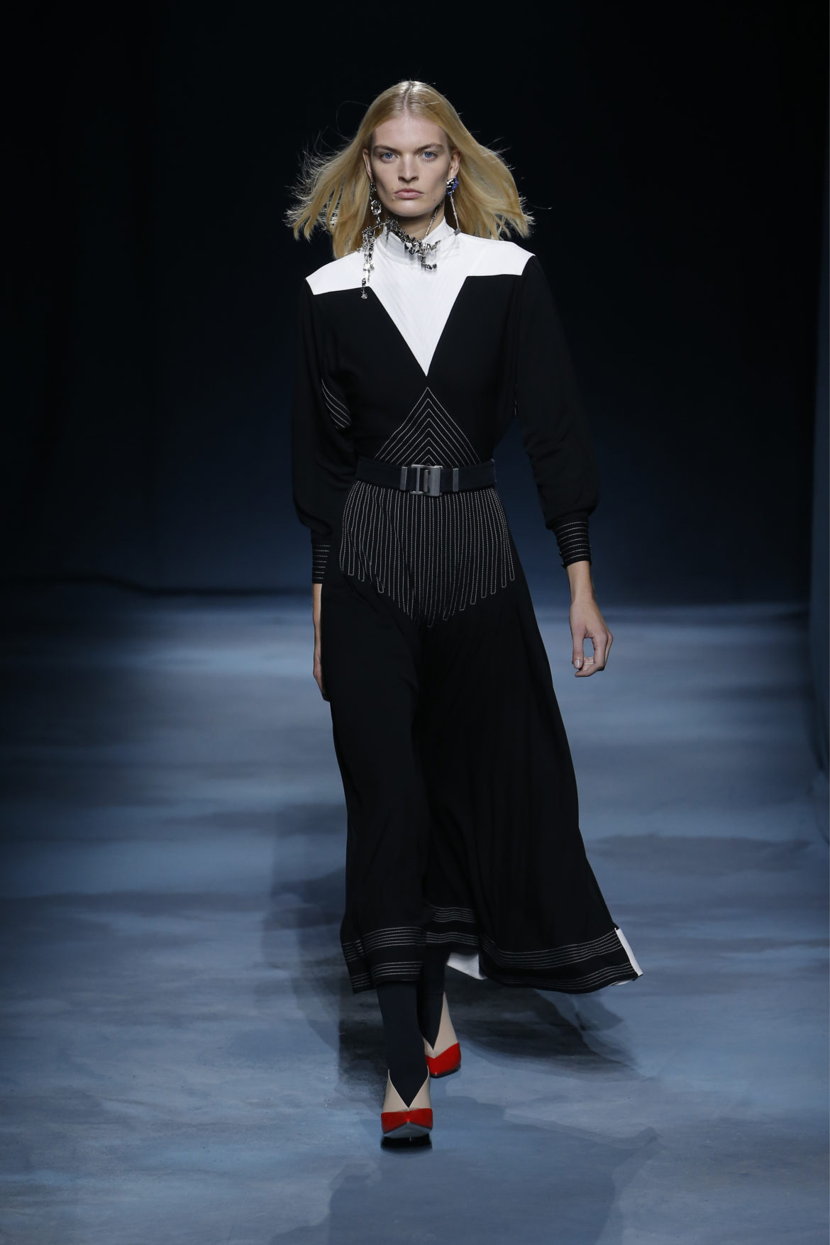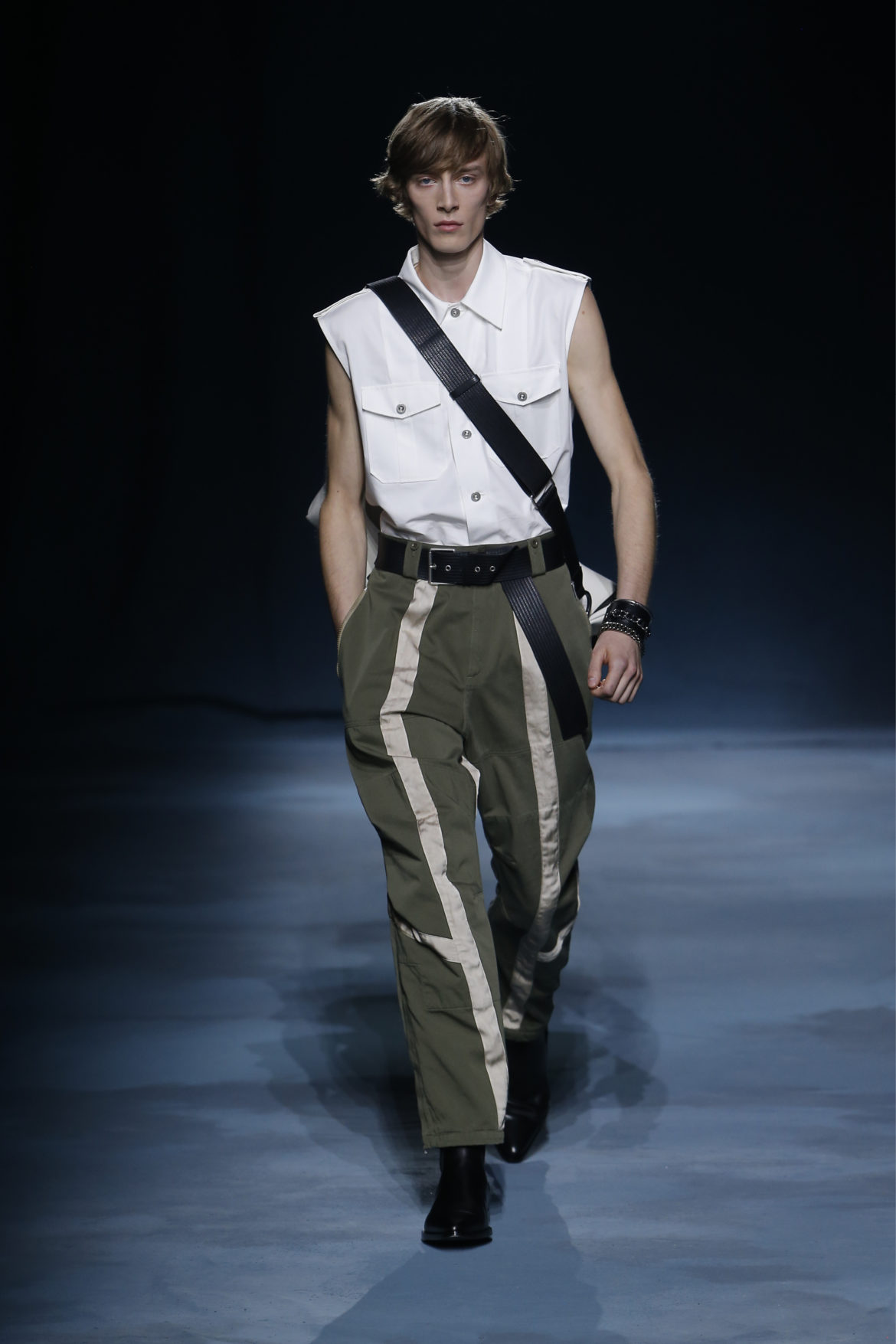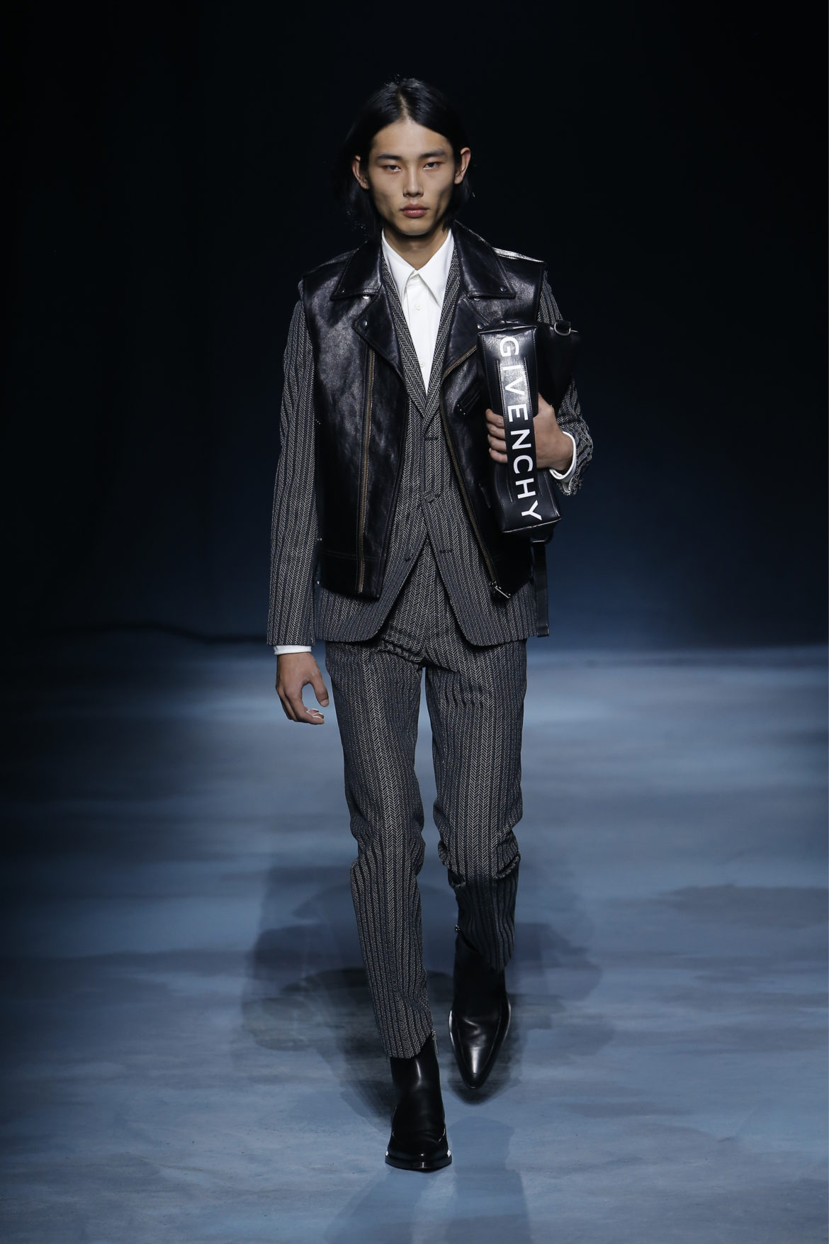 An abstract idea of mirrors informs the spring/summer 2019 women’s and men’s ready-to-wear collection by artistic director Clare Waight Keller. Manifesting the notion of the Givenchy couple, the designer mirrors female and male in each other and cross-pollinates their gender characteristics. It allows for properties conventionally comprehended as female or male to morph in a nonchalant approach to gender codes, reflective of an evolved global mentality. The transition evokes memories of iconoclasts of the past, enabling a free interaction of eras across the collection.