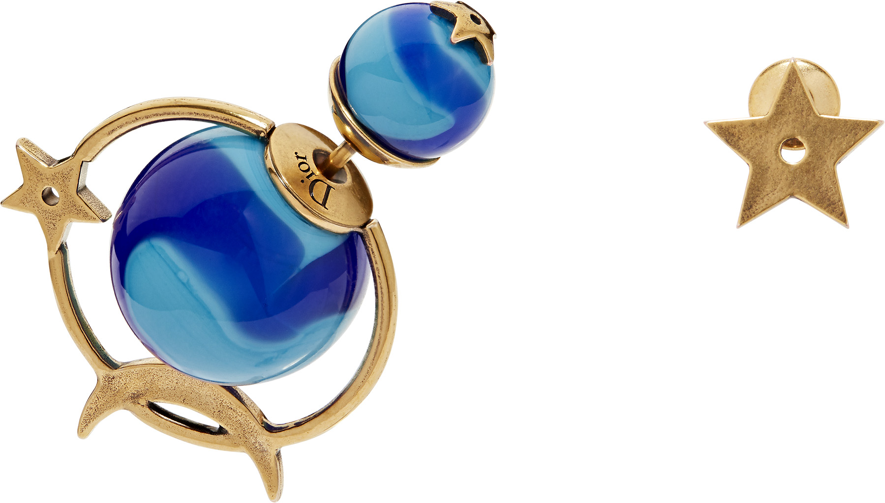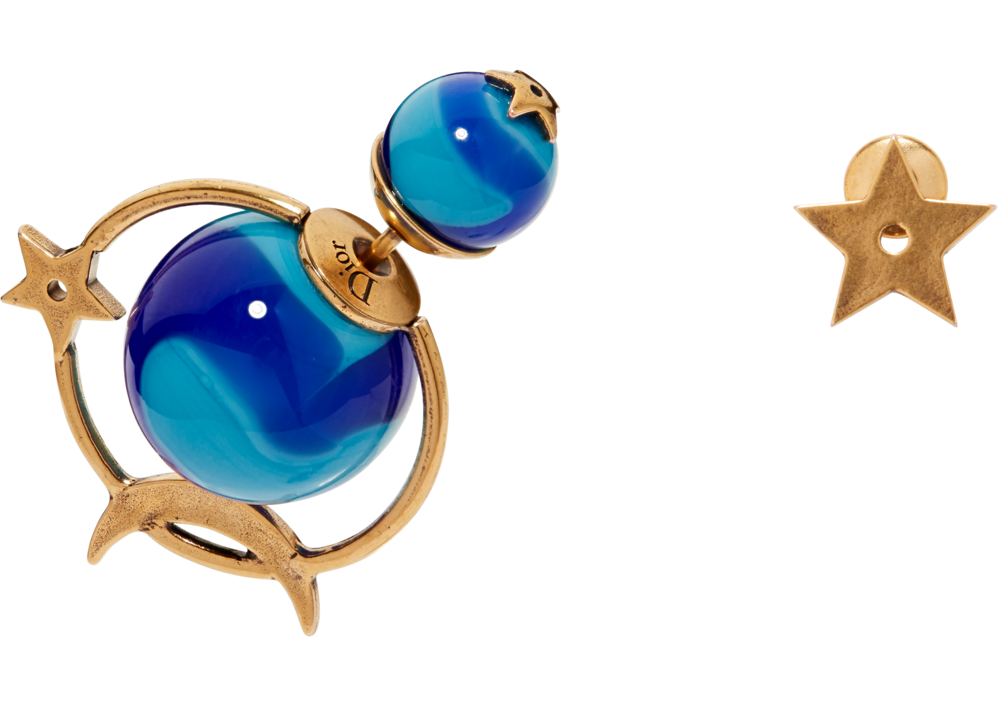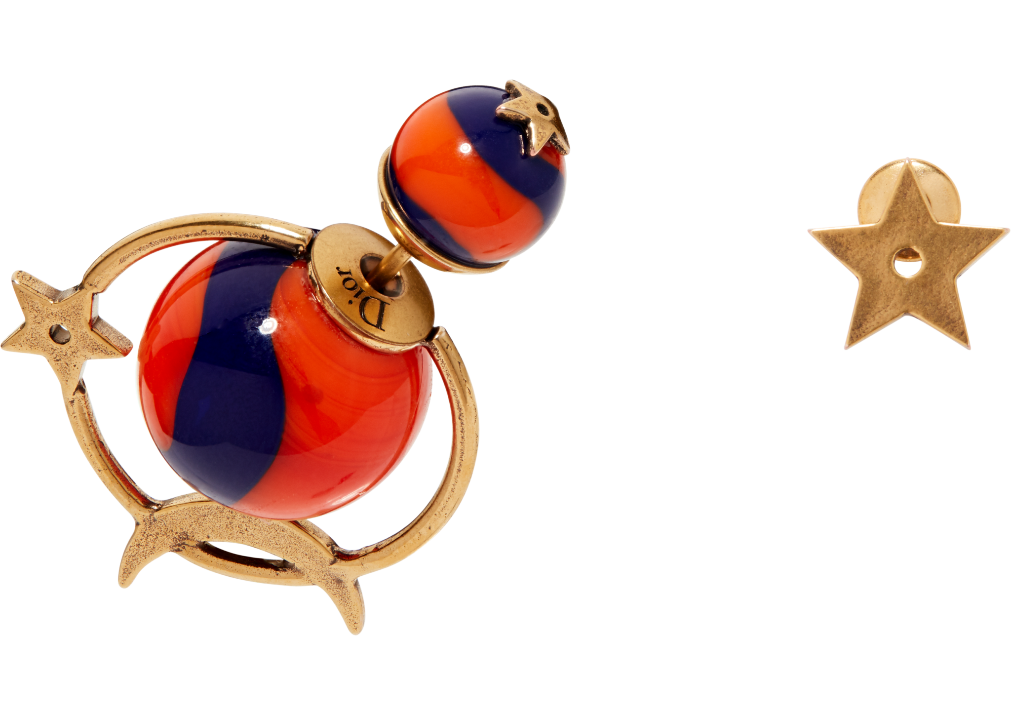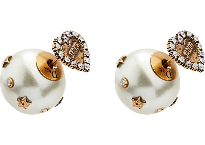 « J’aime toujours voir les femmes porter des boucles d’oreilles. Elles apportent une jolie touche finale », confiait Christian Dior dans son Petit Dictionnaire de la Mode. Iconiques et intemporelles, les Dior Tribales laissent deviner, cette saison, trois codes de la Maison en métal doré : les initiales de Christian Dior, ainsi qu’une étoile et une abeille, symboles fétiches et porte-bonheur de Dior. Avec ces deux perles de tailles différentes, ces boucles d’oreilles jouent à l’envi sur l’asymétrie et se portent en duo ou mixés à une autre création de la Maison.