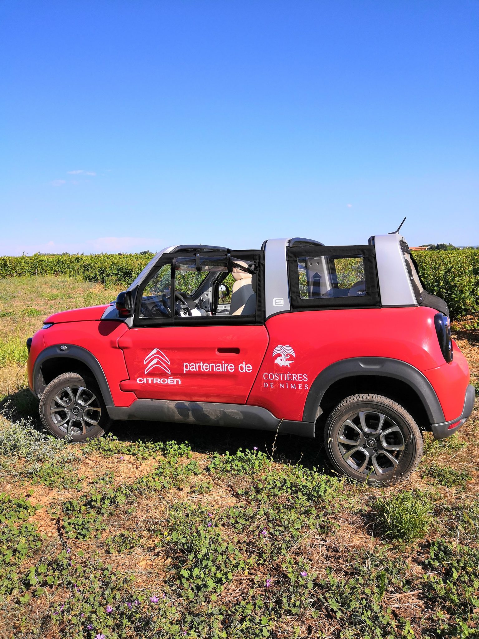 Nous embarquons en e-Mehari pour un voyage au cœur du vignoble à la rencontre des vignerons et de l’appellation Costières de Nîmes. Premier arrêt au Château des Nages et au domaine de Michel Gassier