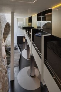 La vue sur la mer représente la face claire de Marseille, son identité provençale, sa lumière et sa joie de vivre, et inspire tous les espaces ouverts sur la mer : le hall d’accueil, le bar, le restaurant, les chambres et les grands salons. Les espaces sans vue sont eux traités avec une vision plus complexe, celle de la face sombre de Marseille, avec un mélange de matières plus brutes, plus rugueuses, la dominance du noir, ponctué d’éclats de jaune.