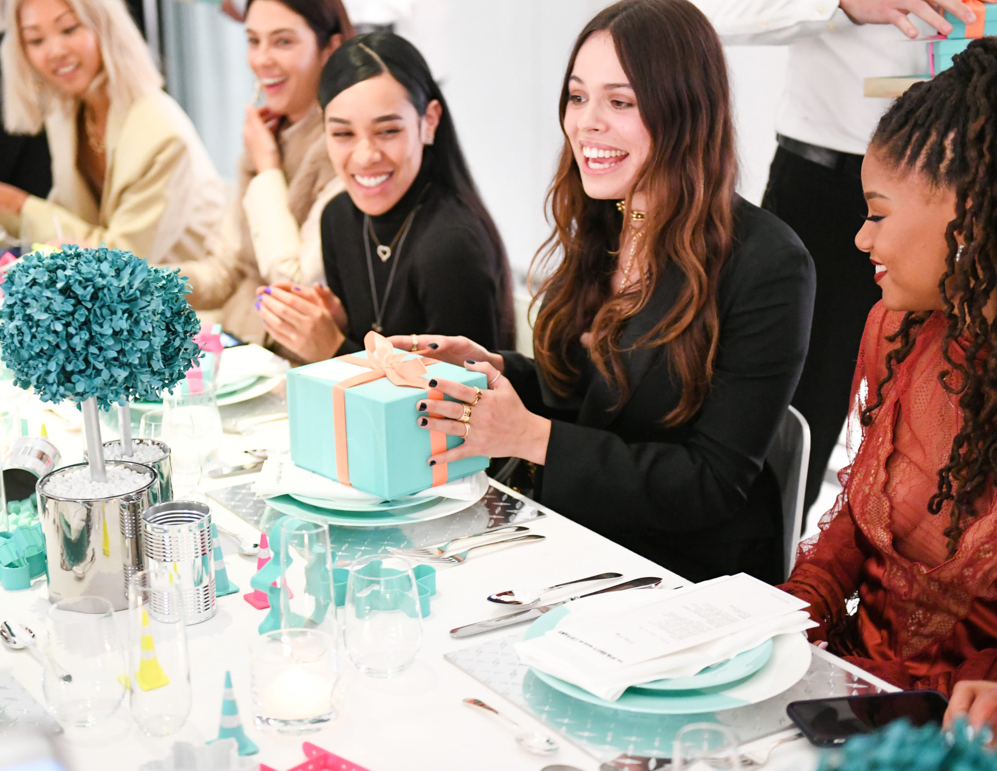 Les invitées avaient toutes choisi un cadeau avant d’arriver à la soirée. Après avoir siroté quelques cocktails, apprécié un set de DJ Kittens ainsi que des tours de magie de John Steiner, les invitées se sont échangées leurs cadeaux lors d’un dîner privé au troisième étage du magasin. Ces cadeaux incluaient des bijoux Tiffany & Co. et plusieurs pièces de la collection Home & Accessories.