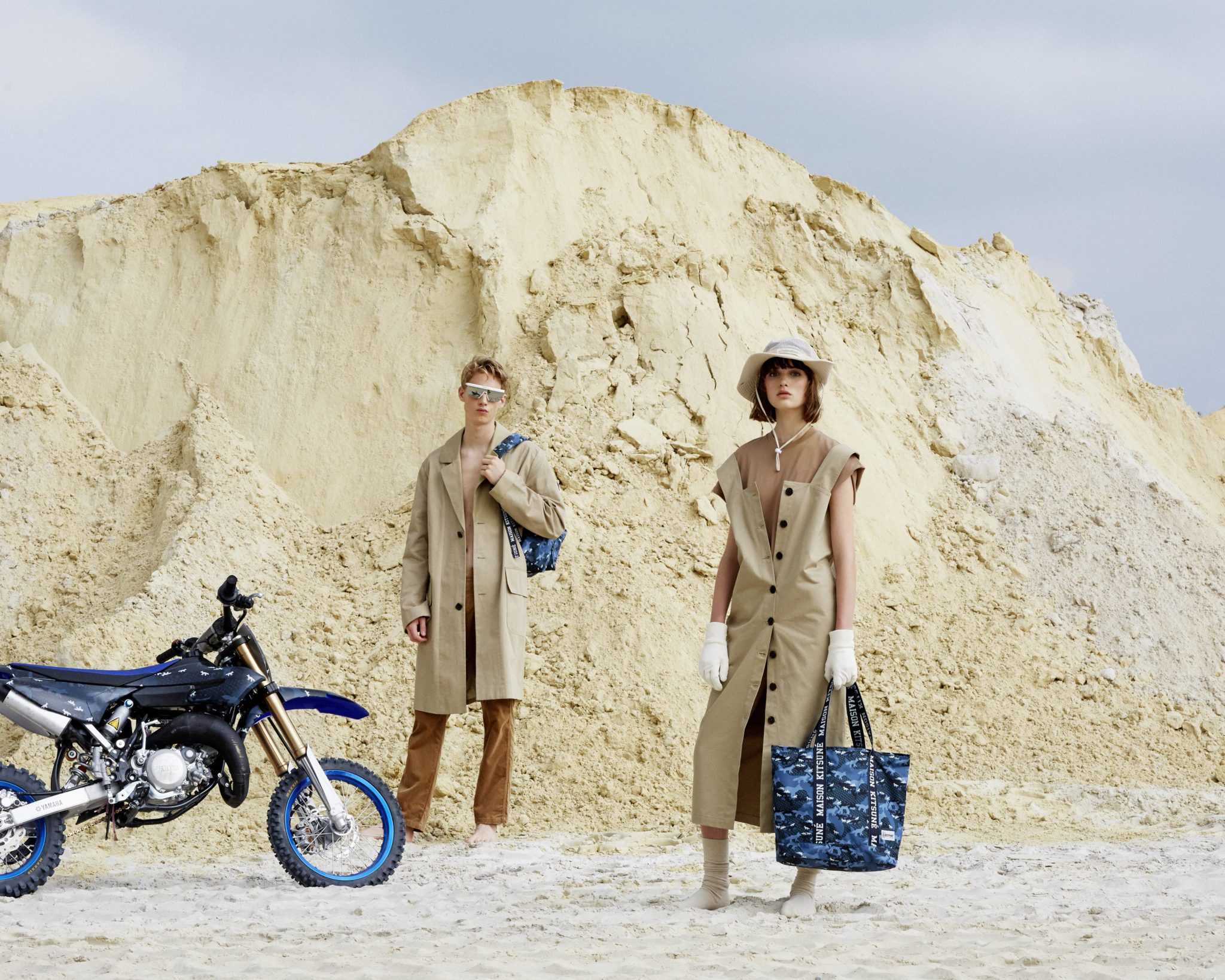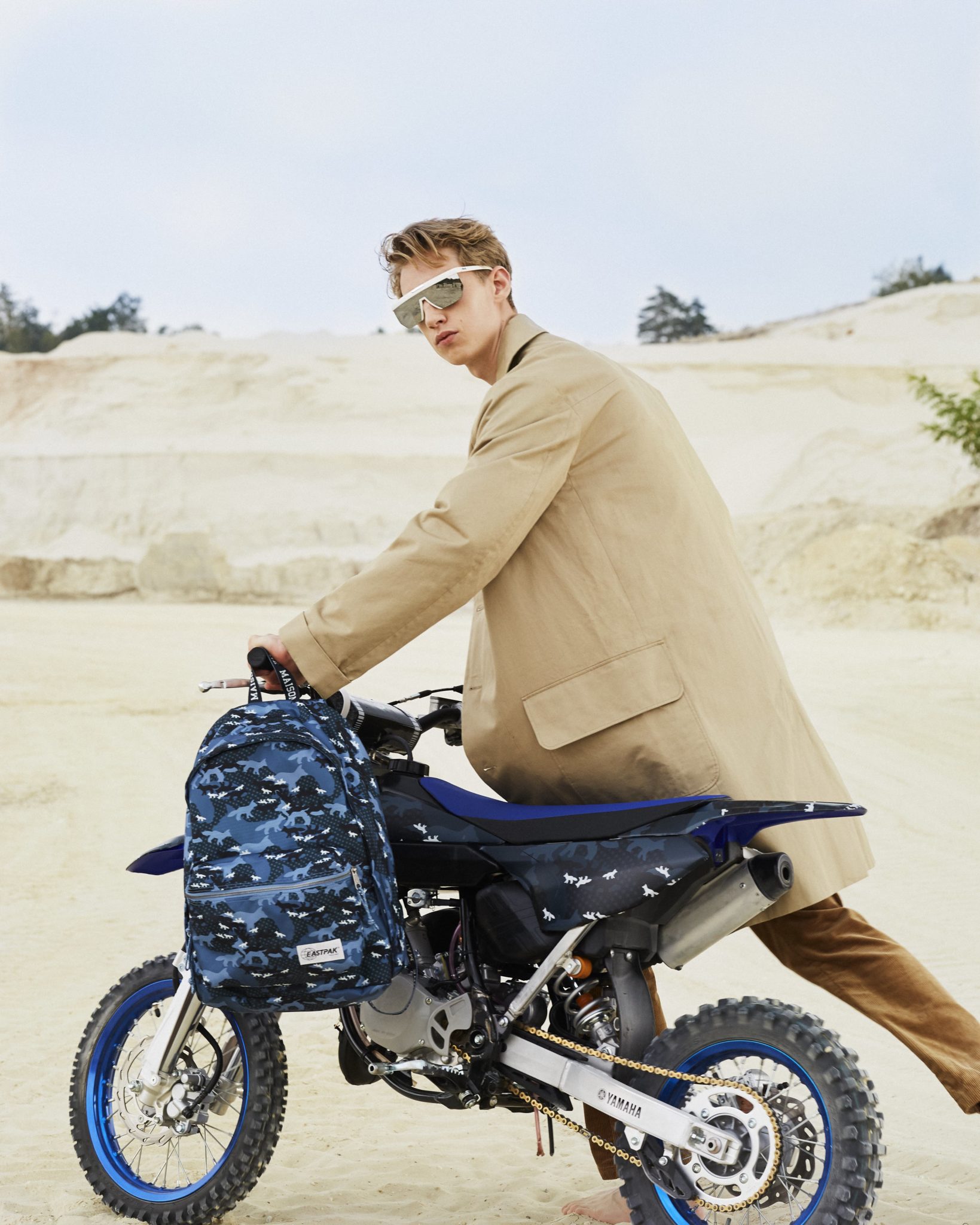 Eastpak s’associe avec Maison Kitsuné pour une seconde capsule en édition limitée. Six pièces iconiques conçues dans l’emblématique imprimé «Camo Fox», dans des tonalités de bleus et de blancs, sont réinterprétés et redessinés dans l’esprit chic et urbain du label de mode franco-japonais. Mettant en vedette une mini moto de cross (pit-bike) habillée du même imprimé, la campagne dévoile un couple voyageur évoluant dans un paysage désertique. Une campagne à la fois moderne, élégante et nonchalante.