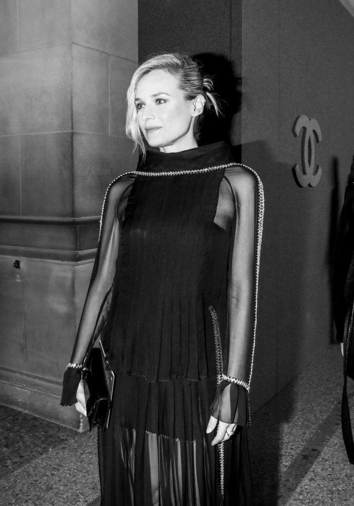 Diane KRUGER, Comédienne Allemande, portait une bague « Camélia » et des boucles d’oreilles « Comète Spirale » en or blanc 18K et diamants CHANEL Joaillerie.