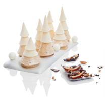 Angelo Musa, Champion du Monde de pâtisserie et Meilleur Ouvrier de France et Alexandre Dufeu, chef pâtissier de l’Hôtel Plaza Athénée ont imaginé pour Noël une création 100% gourmande, à partager ! En effet, ils se sont amusés à recréer une forêt de sapins, délicatement parée de blanc ! Bien que présentant des silhouettes variées, les 7 conifères enneigés dévoilent tous un jeu de saveurs et de textures identiques, celles du 100% vanille, dessert signature de l’hôtel Plaza Athénée créé par Angelo Musa.