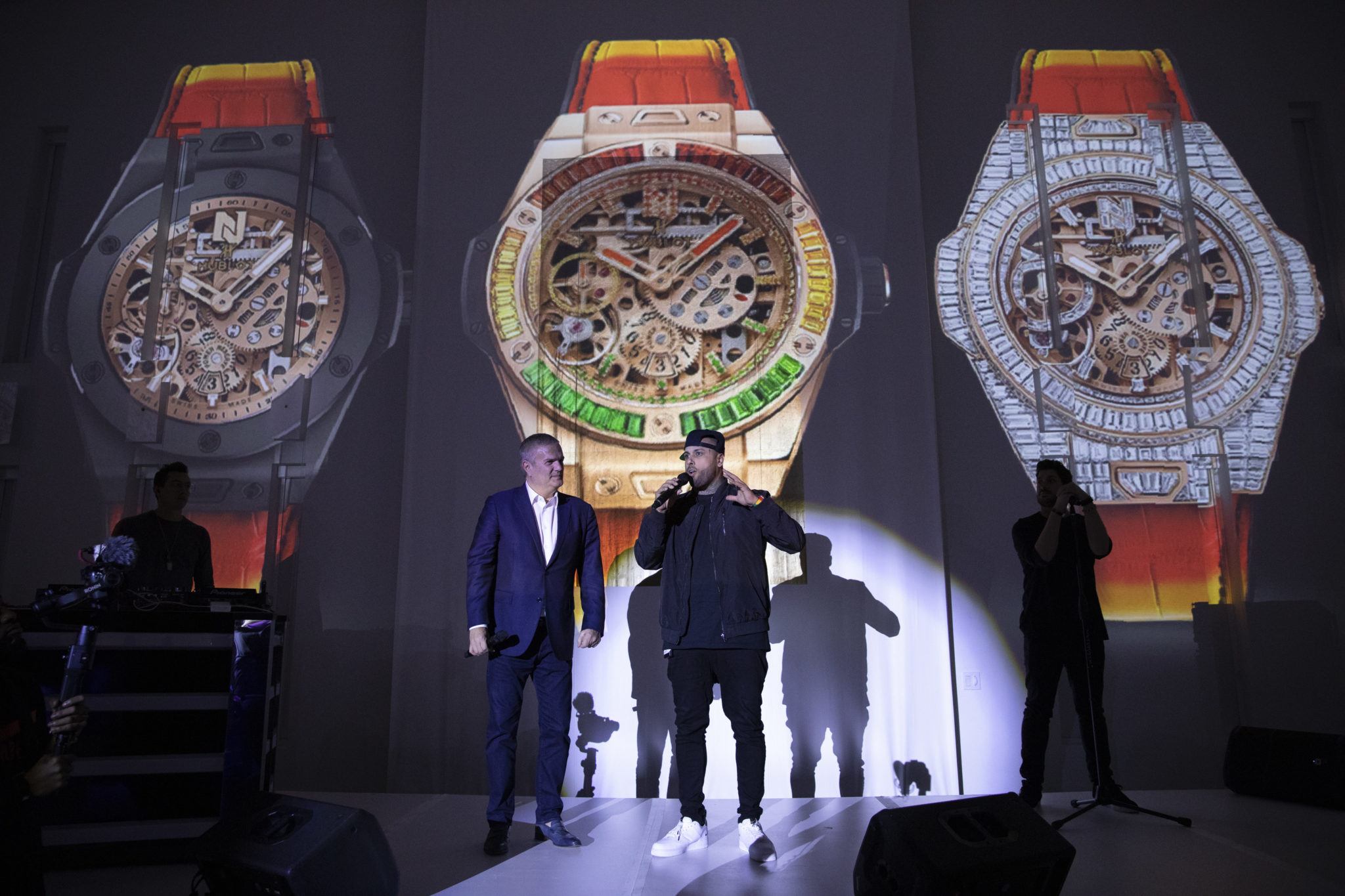 C’est dans ce somptueux cadre que Ricardo Guadalupe, CEO de la marque, a remercié lors d’un chaleureux discours Nicky d’avoir rejoint la maison Hublot et a dévoilé en avant-première le premier fruit de cette collaboration: les montres Big Bang Meca-10 Nicky Jam.
