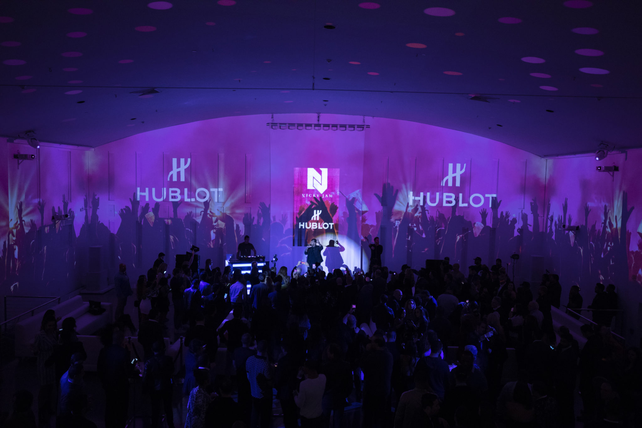 C’est devant un parterre d’invités triés sur le volet – VIPs, vedettes et amis de la marque – qu’Hublot a honoré le talent de Nicky Jam lors d’une folle soirée à The Temple House, Miami. Pour l’occasion, la prestigieuse adresse au coeur du quartier de South Beach s’est vue revêtir de lumière : sa façade comme ses murs intérieurs ont servi d’écran à une animation en mapping projetant artistiquement films et photographies.