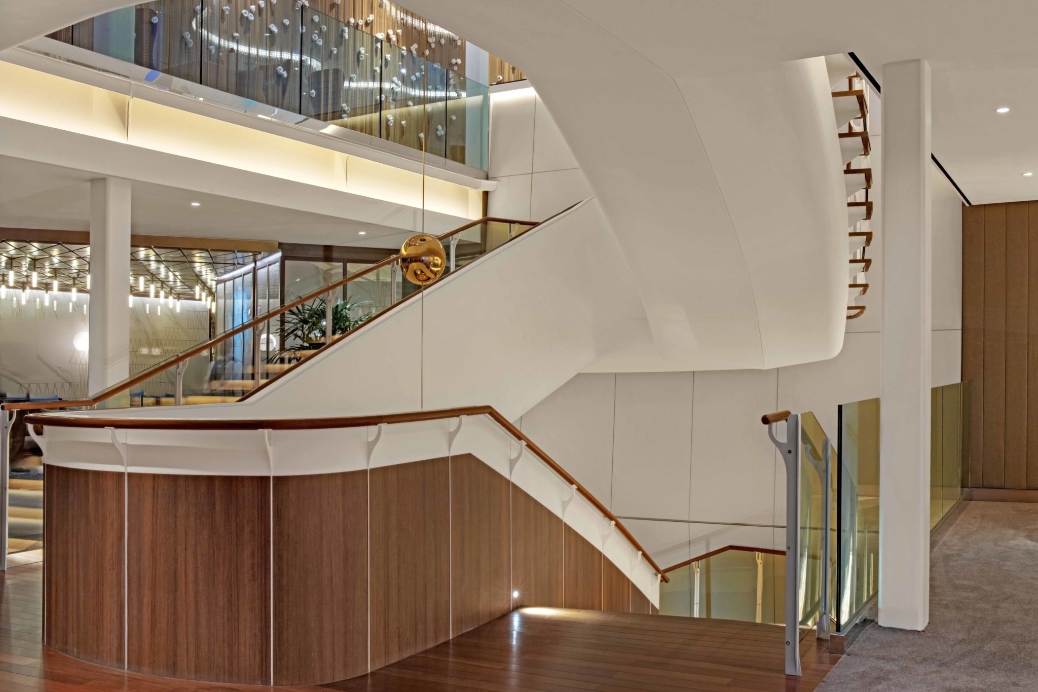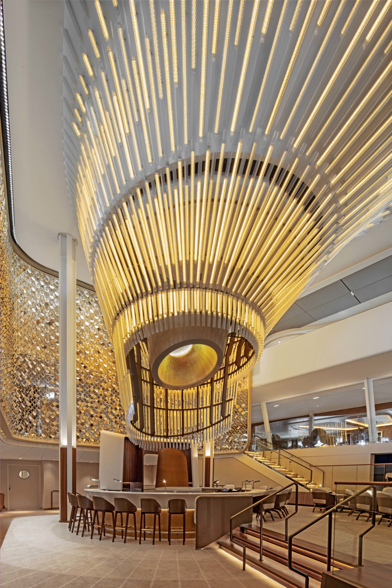 Leur volonté a été de créer des espaces rappelant à chaque instant aux clients qu’ils se trouvent à bord d’un navire, en offrant le luxe et le confort d’un boutique-hôtel tout en exprimant l’expérience hors du commun de la croisière.