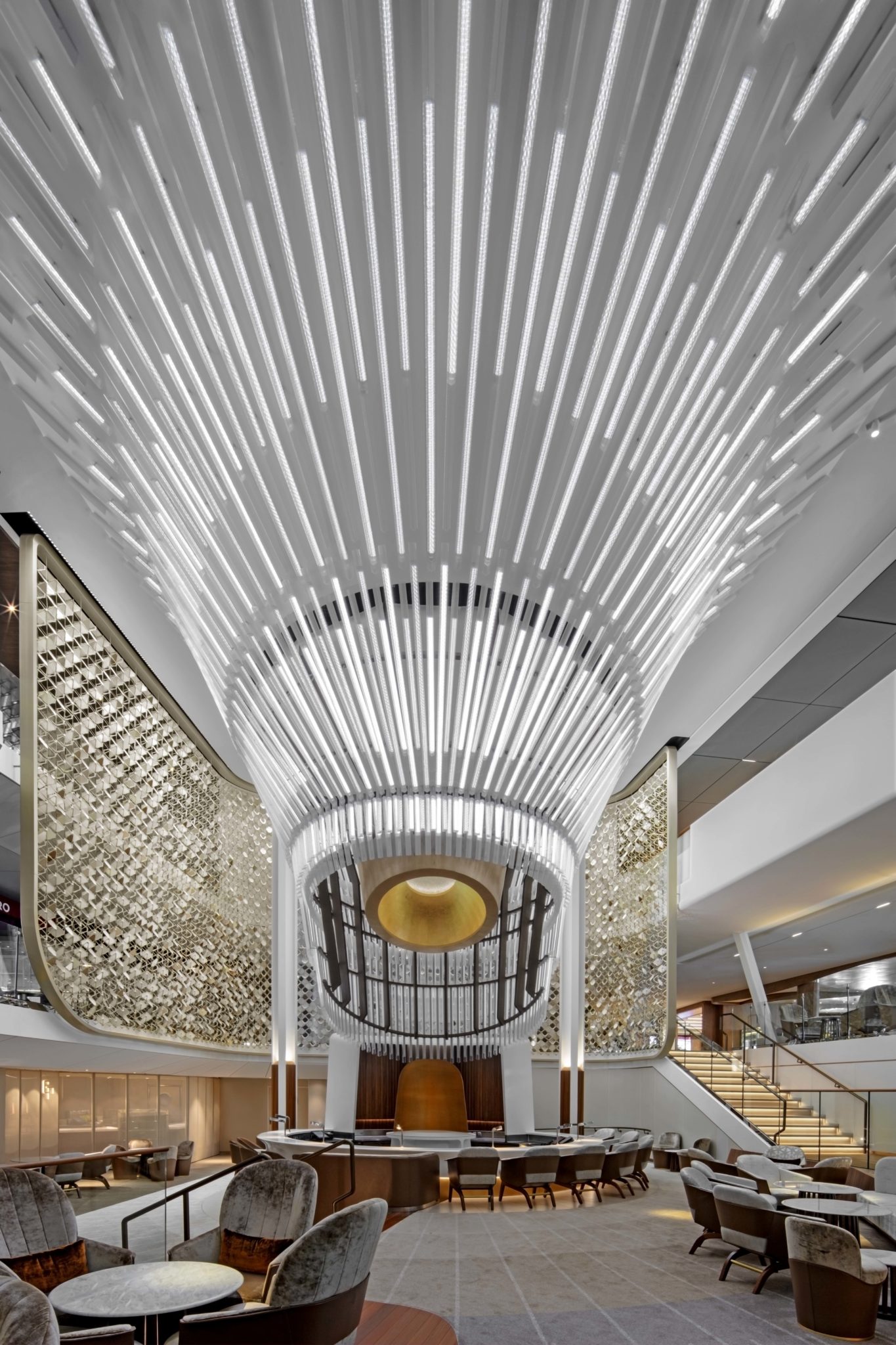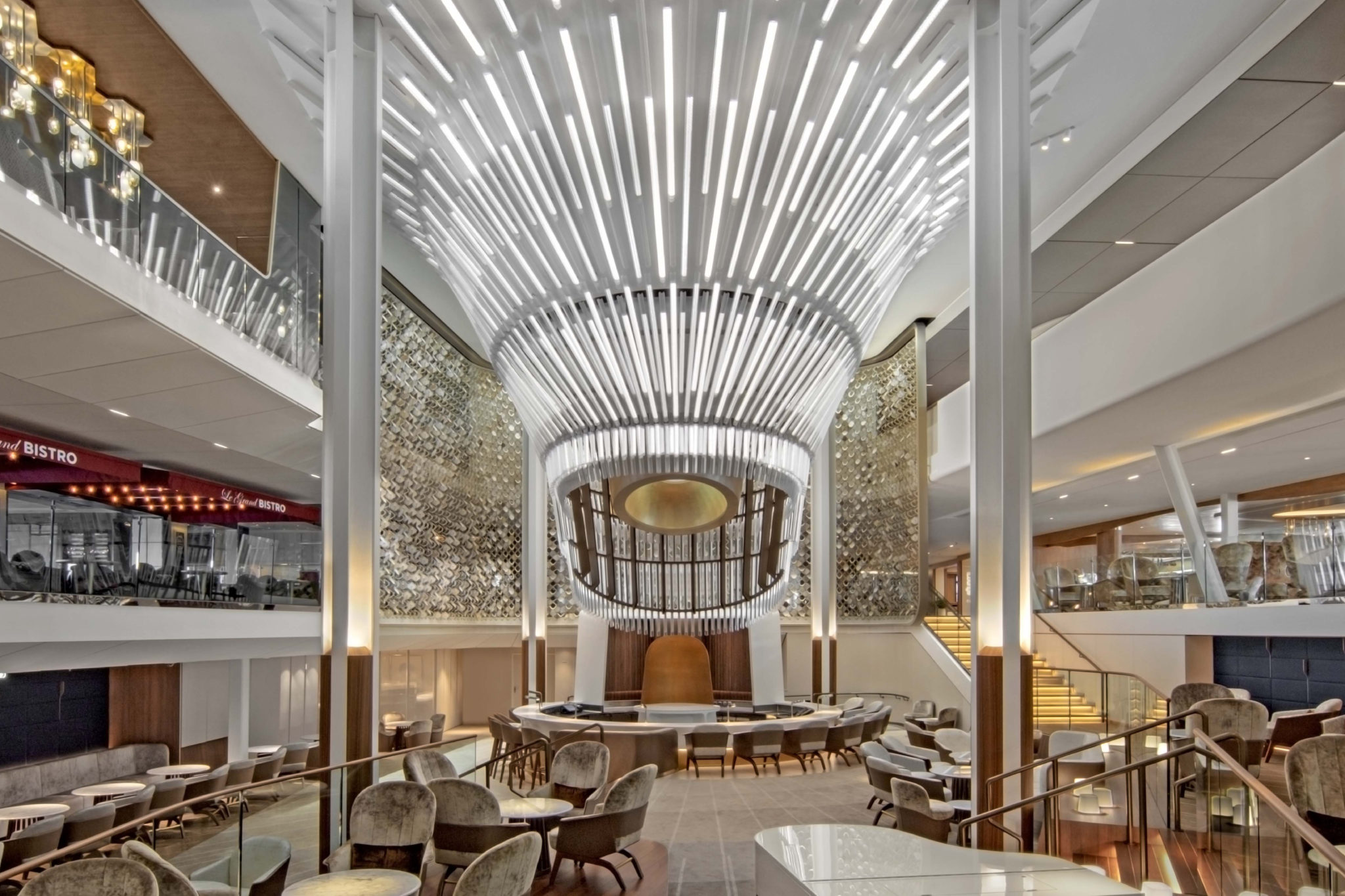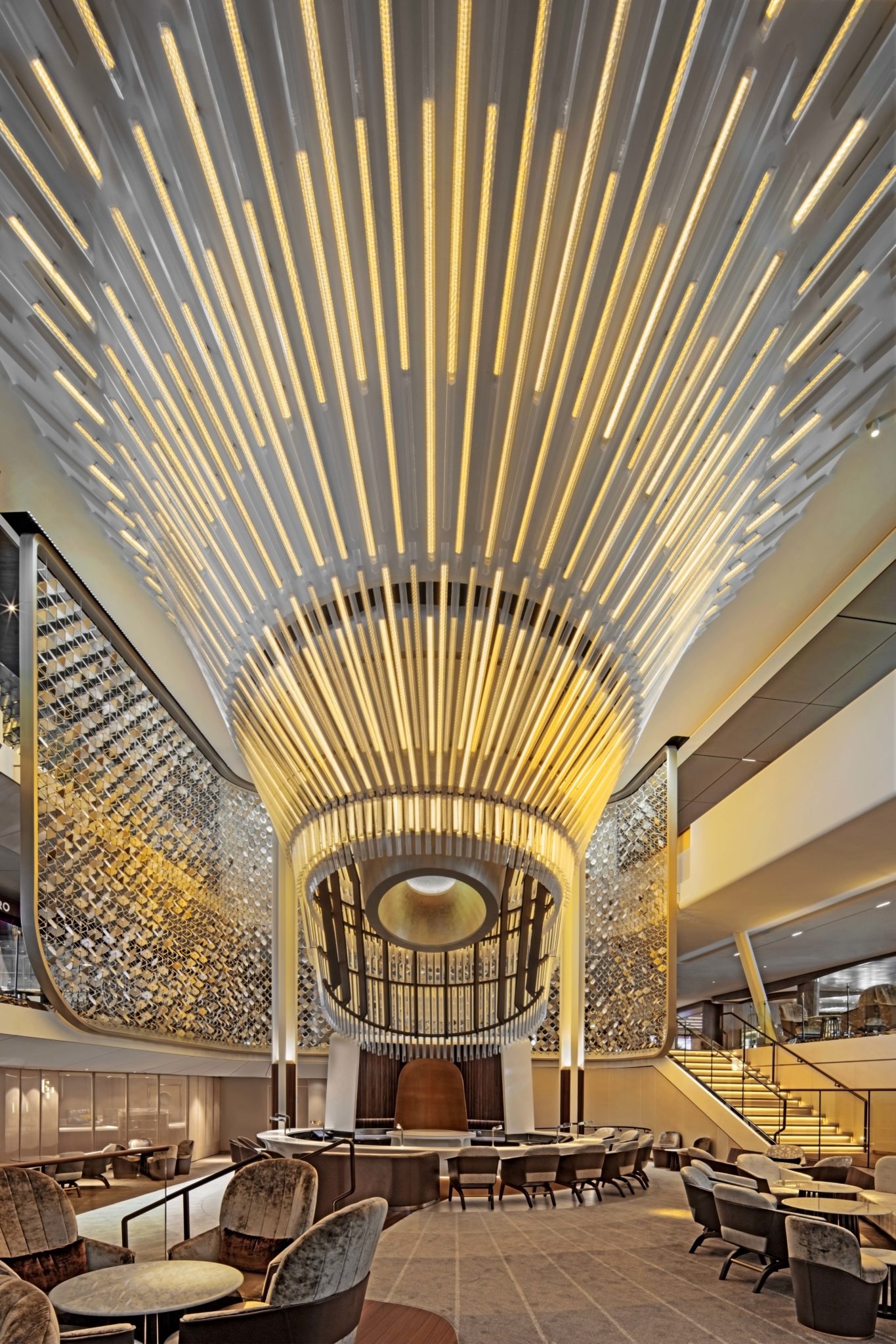 L’agence de design et d’architecture intérieure Jouin Manku révèle les espaces qu’elle a conçus pour Celebrity Edge, un nouveau paquebot de luxe qui partira de Fort Lauderdale, en Floride pour sa croisière inaugurale le 9 décembre. L’agence a dessiné le Grand Plaza, l’épicentre du navire, le « Main dining atrium », l’escalier qui dessert les espaces de restauration, ainsi que ses circulations.