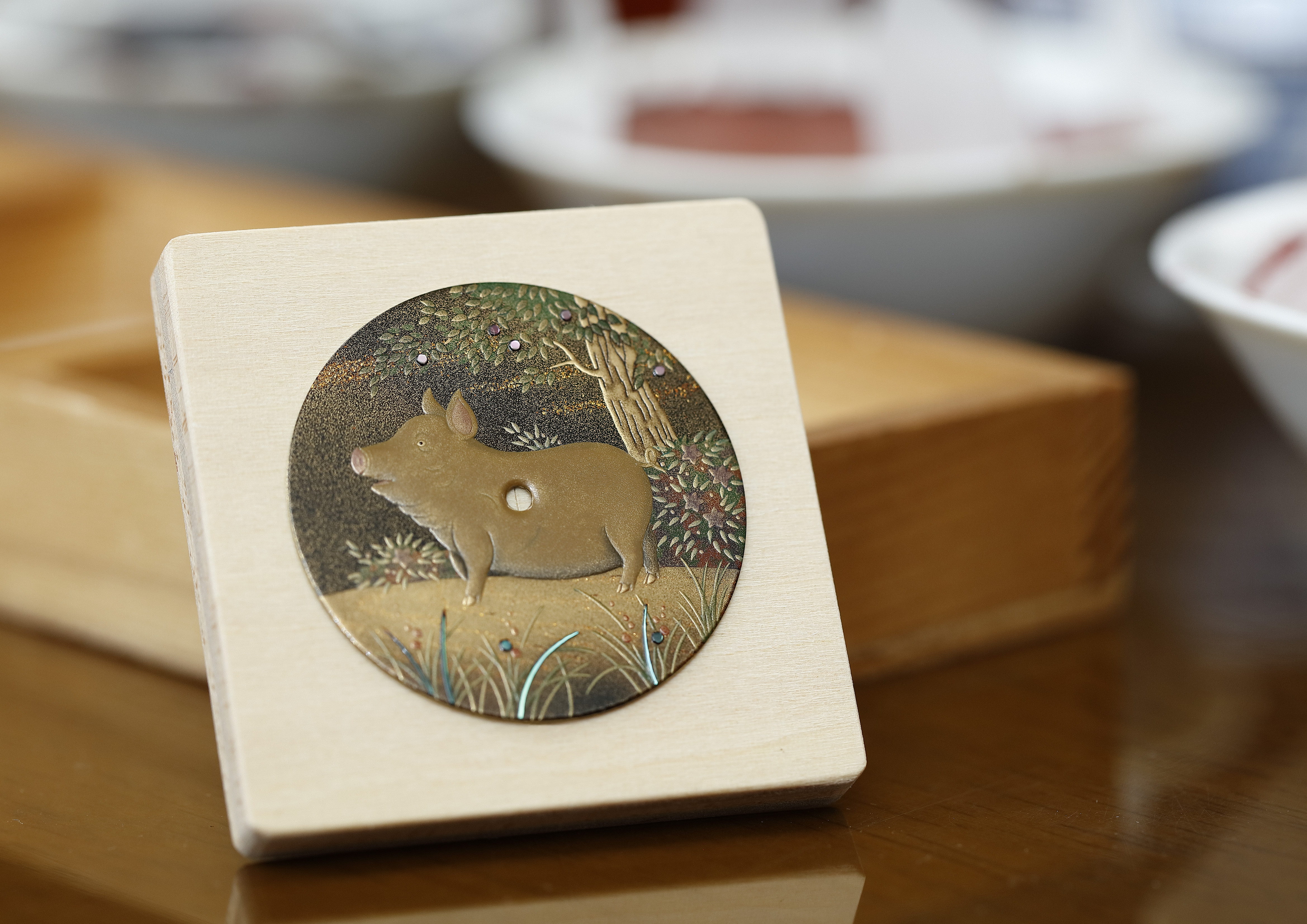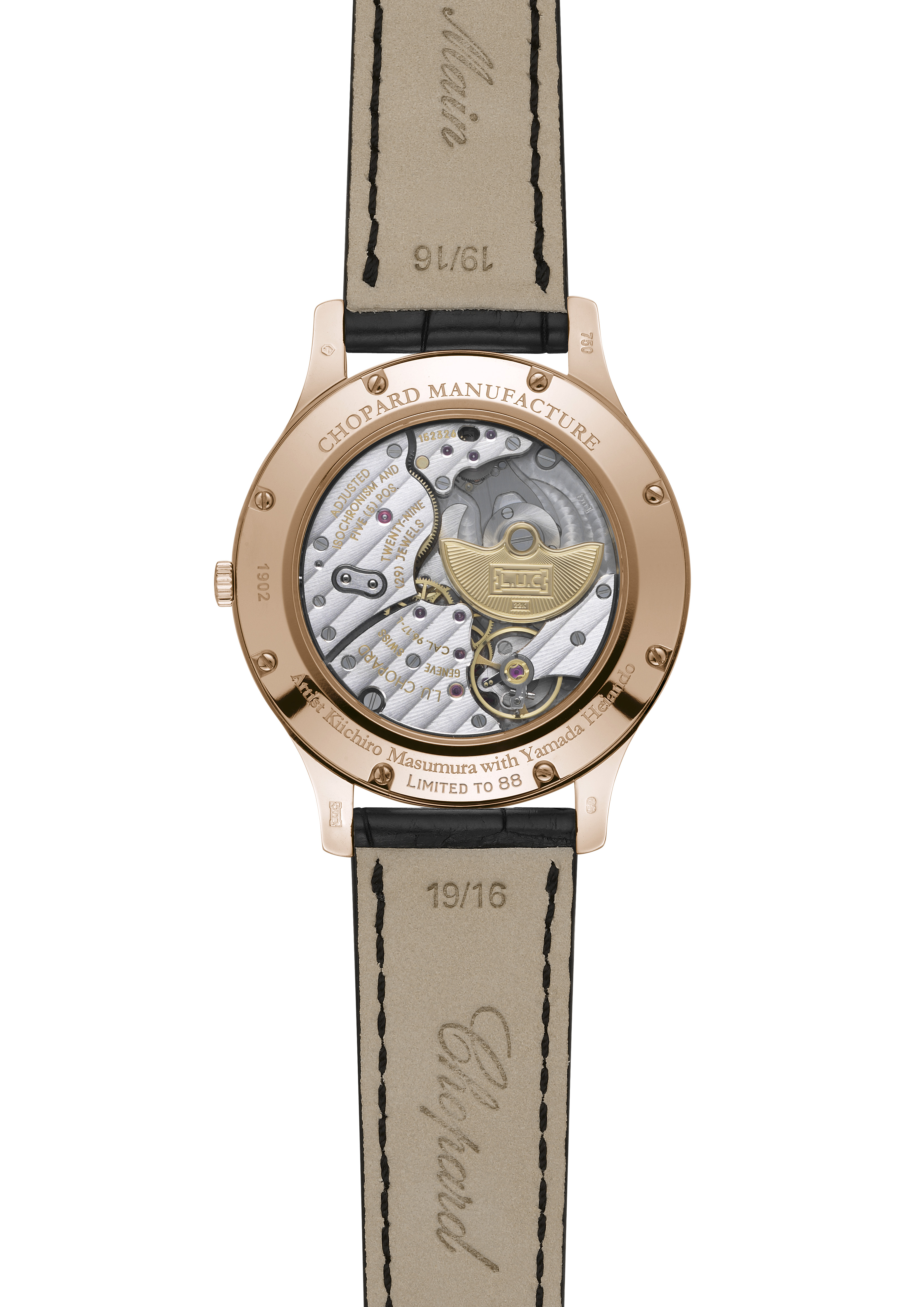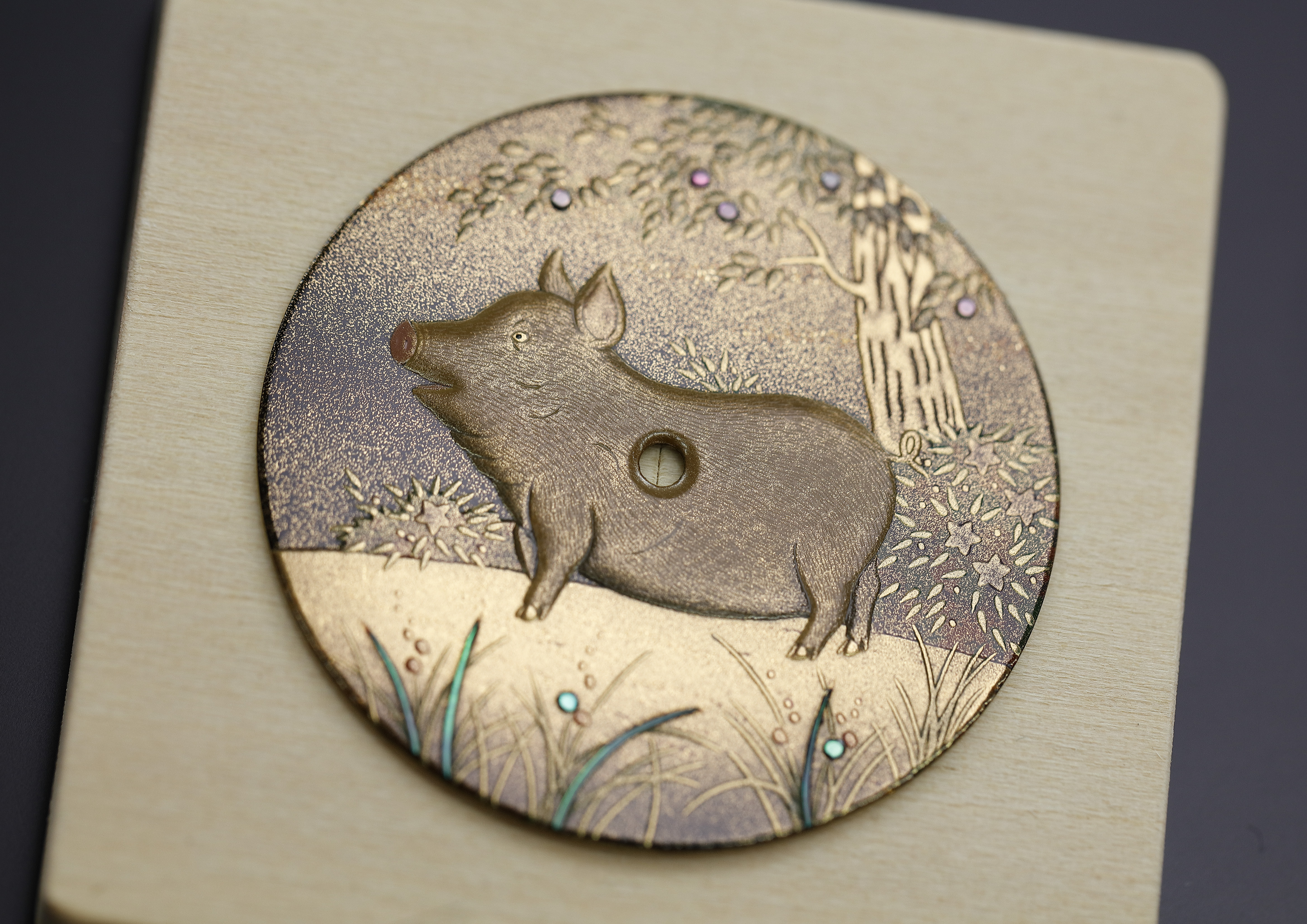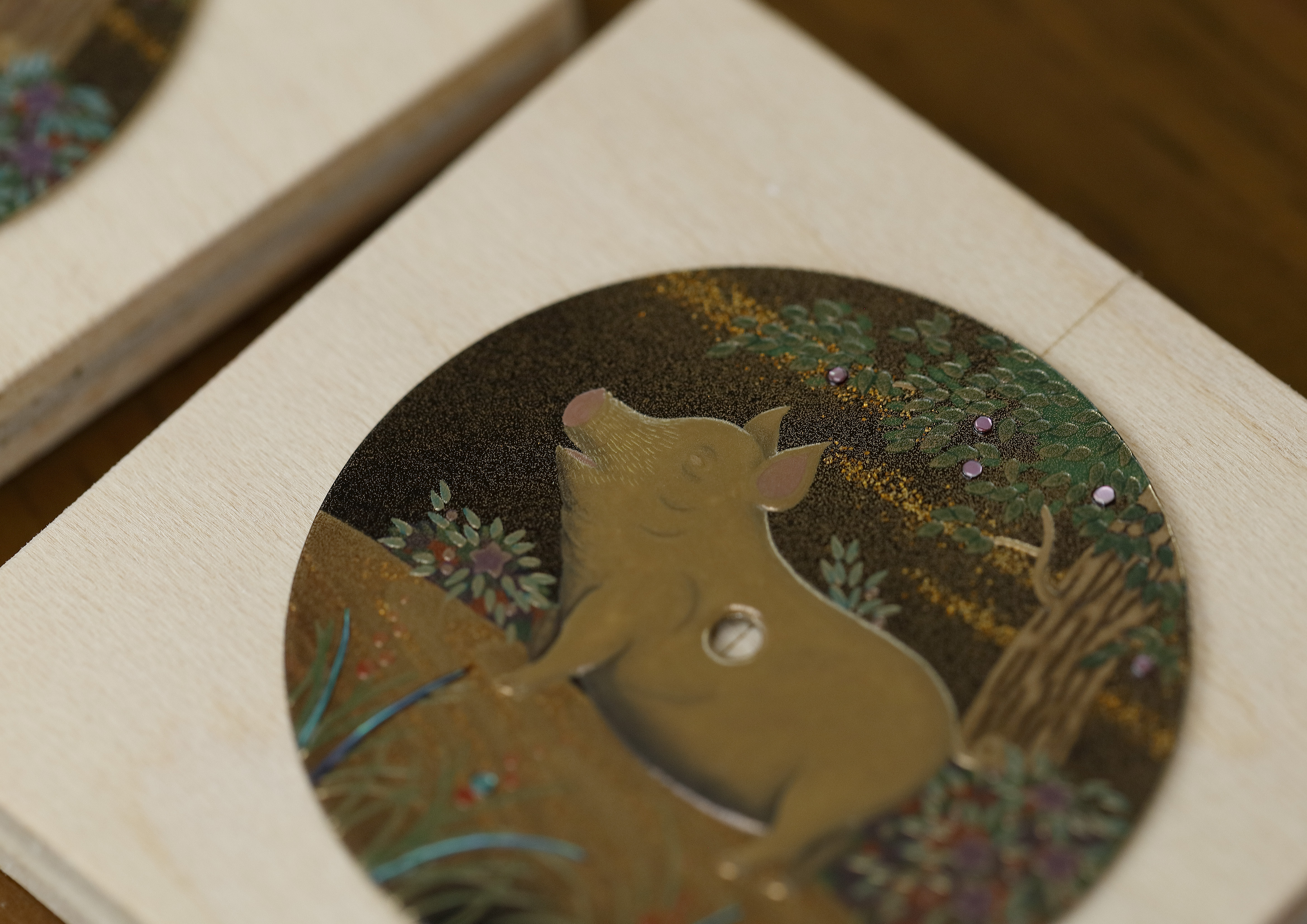 Le cadran de cette nouvelle montre zodiacale, en édition limitée de 88 pièces est entièrement réalisé à la main. Il met l’Asie à l’honneur avec l’emploi de la technique de laque traditionnelle japonaise Urushi. La scène représente un cochon doré (symbole de l’abondance), ventru (signe de jovialité) sur un fond de forêt multicolore. En effet, dans la représentation traditionnelle du Zodiaque Chinois, le cochon n’a rien de péjoratif, ni de sale. Il est sincère et travailleur, prévenant et généreux. En conséquence, une Année du Cochon est faite de labeur couronné de réussite, mais aussi de festivités.
