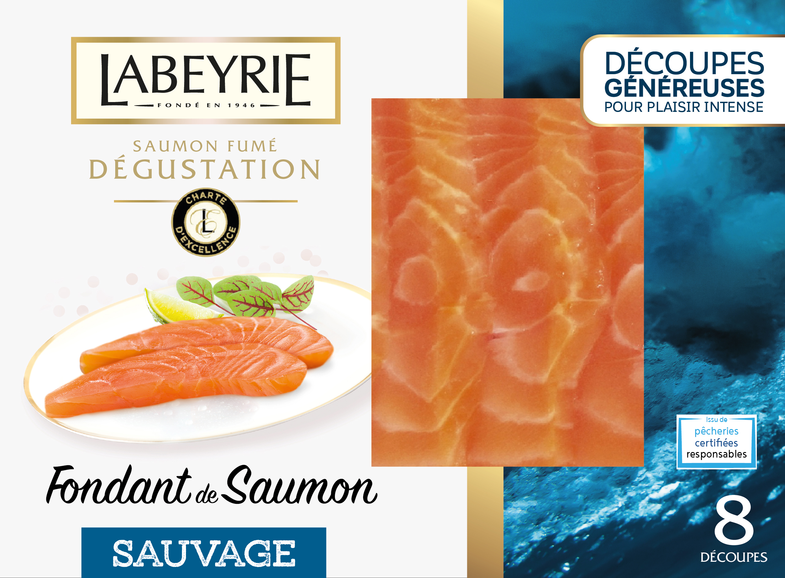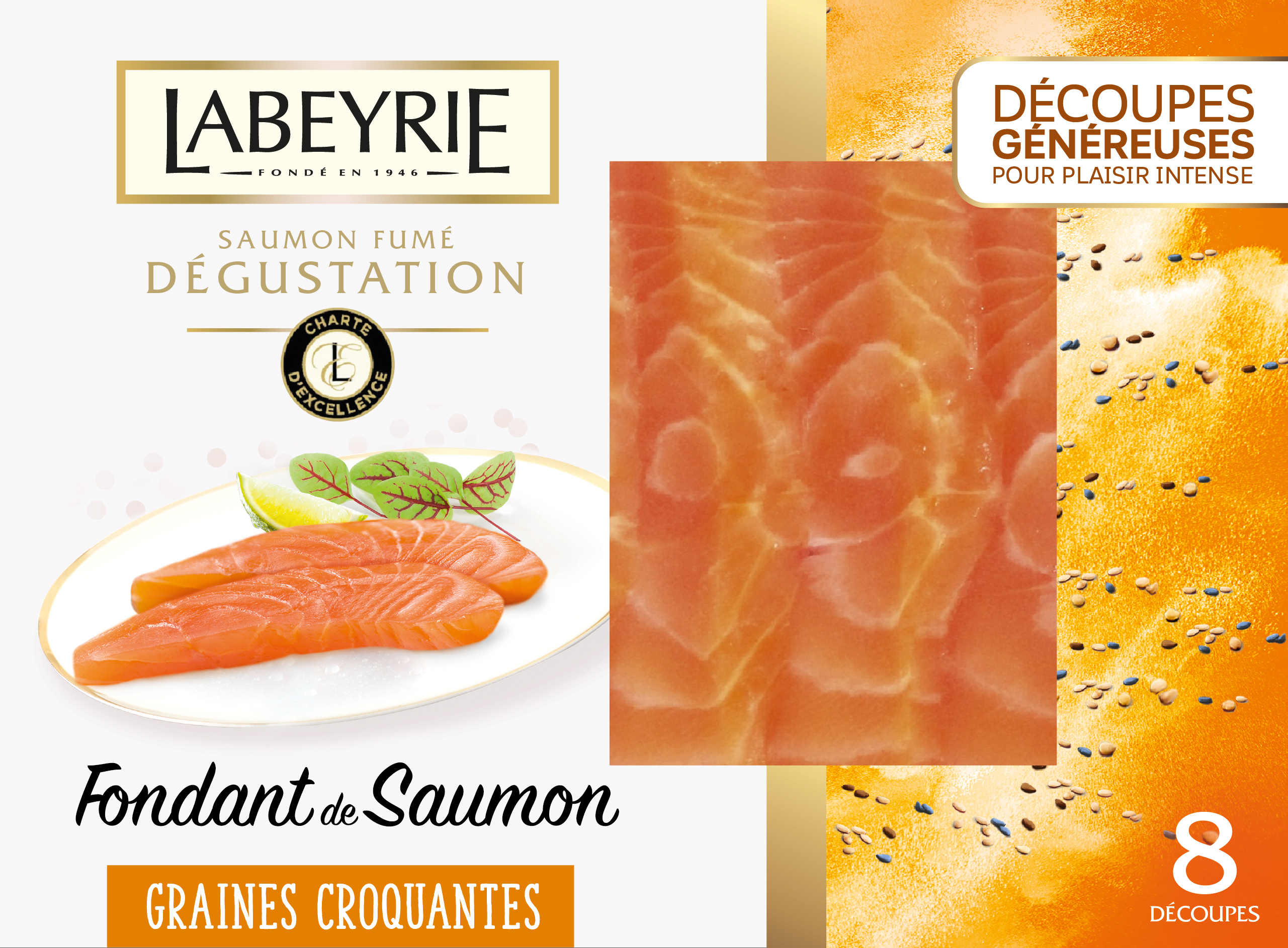 Grâce à la générosité de leur découpe et aux saveurs boisées de leur chair, ces Fondant de Saumon séduiront les amateurs de texture fondante. Et pour les plus audacieux, une nouvelle alliance aux Graines Croquantes sera l’alternative idéale pour enchanter les tables de fête ! Avec ces Fondant de Saumon, LABEYRIE renouvelle le plaisir
