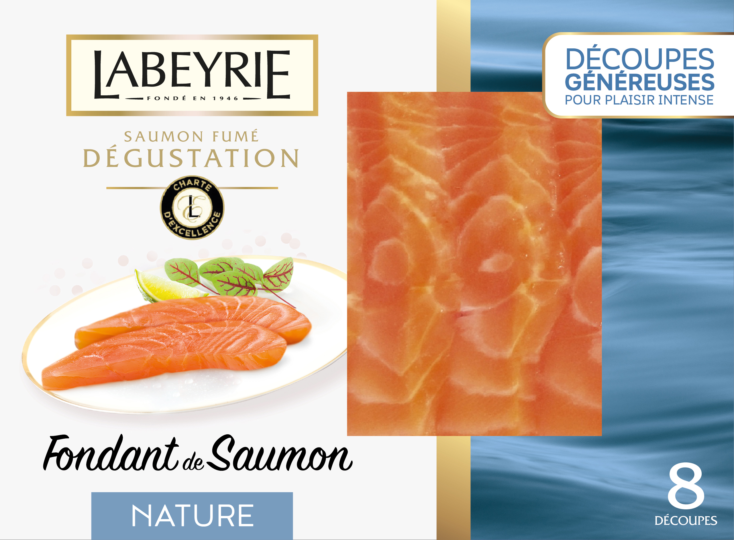 Symbole des grandes tablées familiales, icône des moments de partage, le Saumon Fumé LABEYRIE n’est plus à présenter. Grâce à sa texture fondante et savoureuse, il se déguste avec finesse pour des sensations gustatives incomparables.