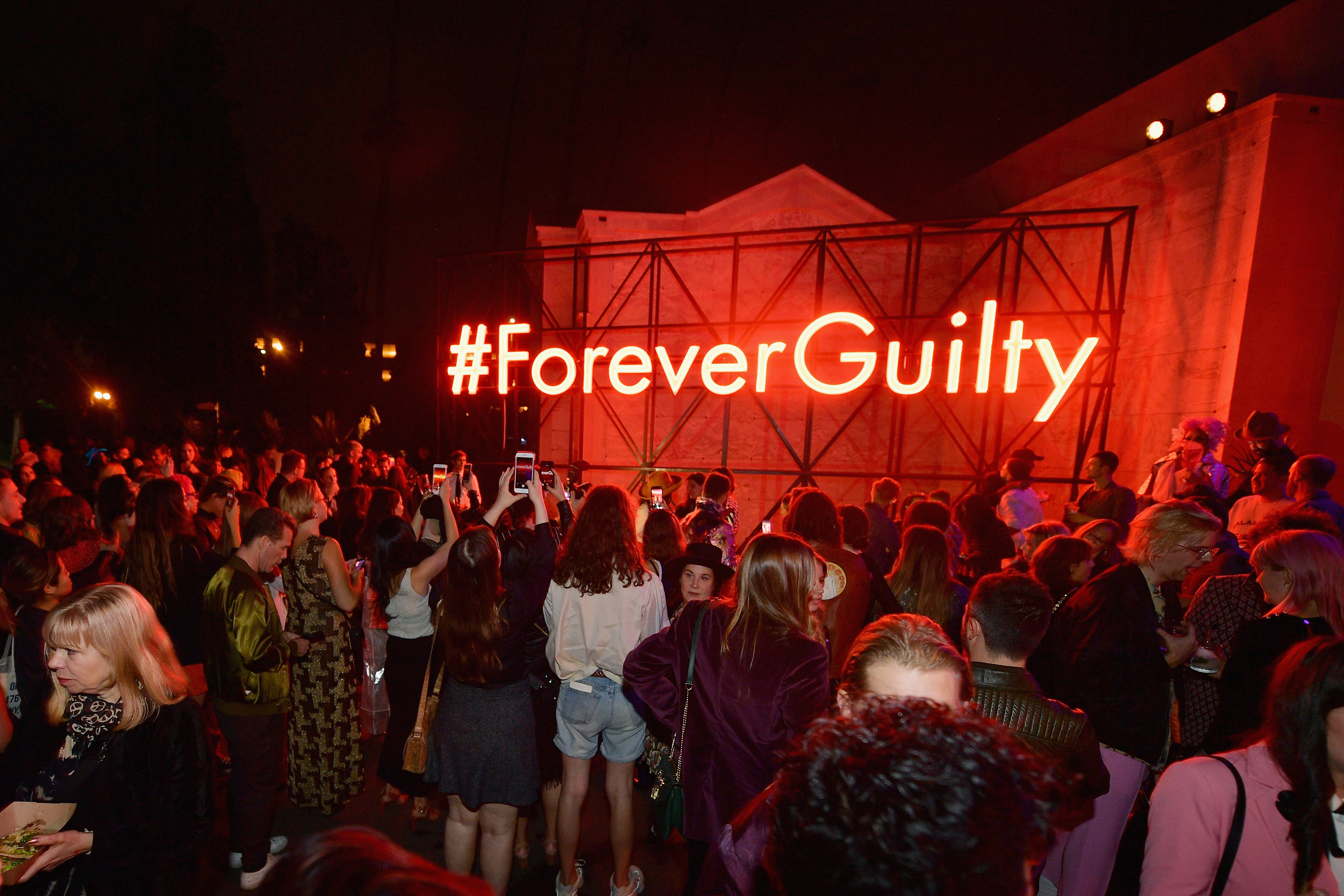 - HOLLYWOOD, CA – NOVEMBER 02: Signage is seen at Gucci Guilty Launch Party at Hollywood Forever on November 2, 2018 in Hollywood, California. (Photo by Stefanie Keenan/Getty Images for GUCCI)