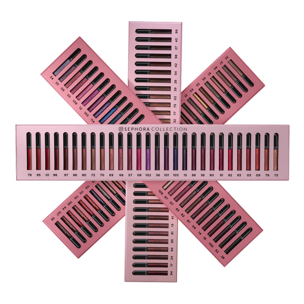 A l’occasion des fêtes de fin d’années, Sephora lance un coffret de folie puisque celui-ci contient pas moins de 100 rouges lèvres, de quoi donner le tournis ! Au programme : 80 rouges mat et 20 rouges aux reflets irrisés.
