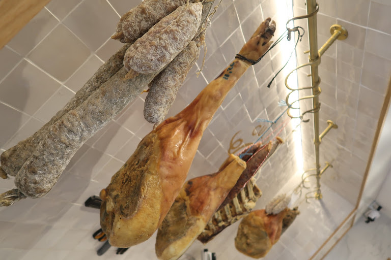 Du côté des régions : parmi plus de 32 producteurs, on déguste un comté af né 22 mois de la maison Petite, du foie gras IGP du Périgord, des jambons sous toutes leurs formes – Noir de Bigorre, Cul noir limousin, à l’os, sans os – et toujours sans nitrites.