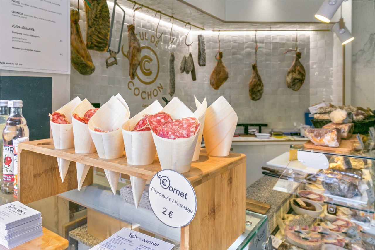 Avec le Chef Vincent Régnier Vigouroux, Cul de Cochon propose de la charcuterie, du fromage, des foie gras et des sandwiches tous réalisés sur place chaque jour, à partir des produits frais de l’épicerie.