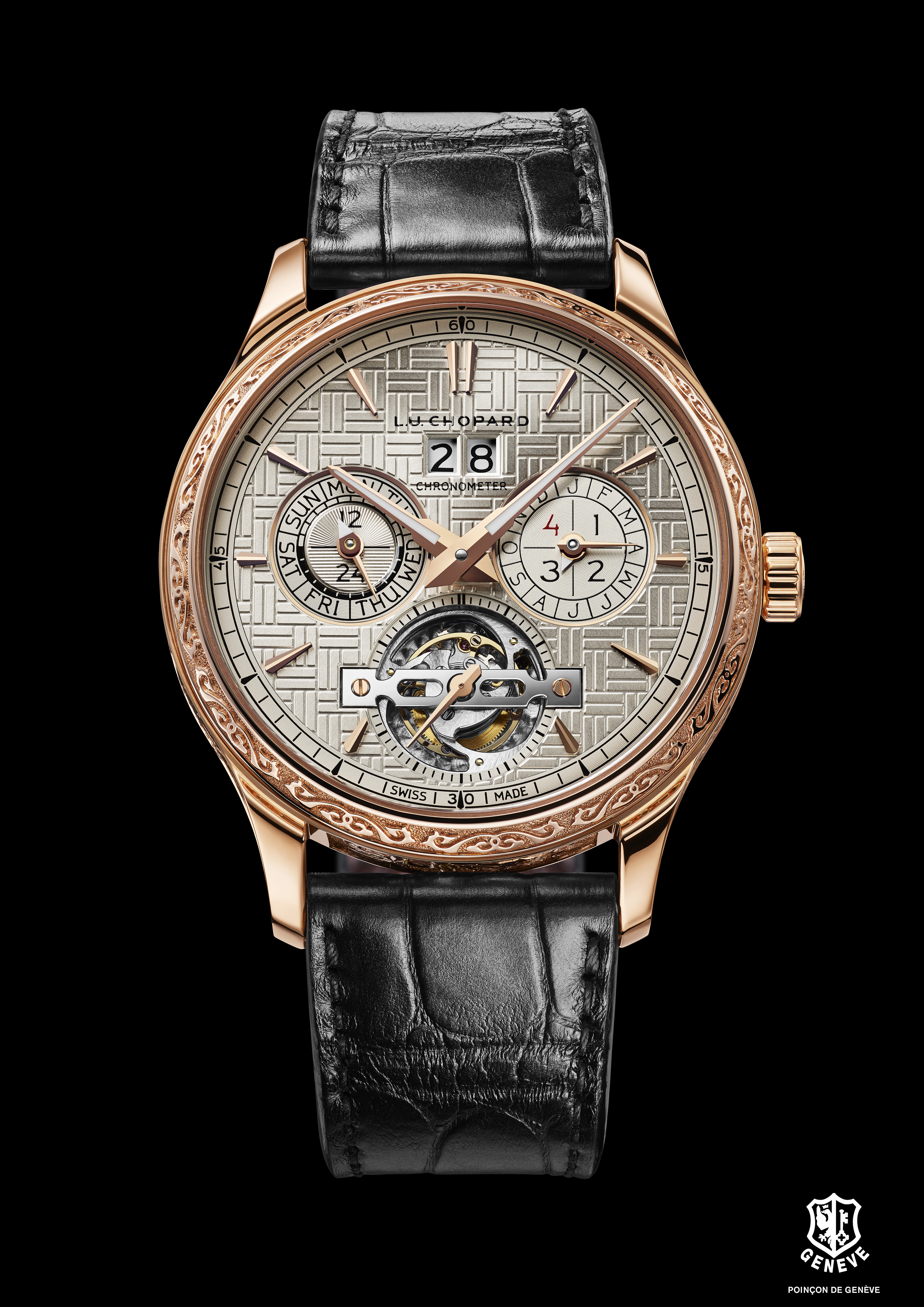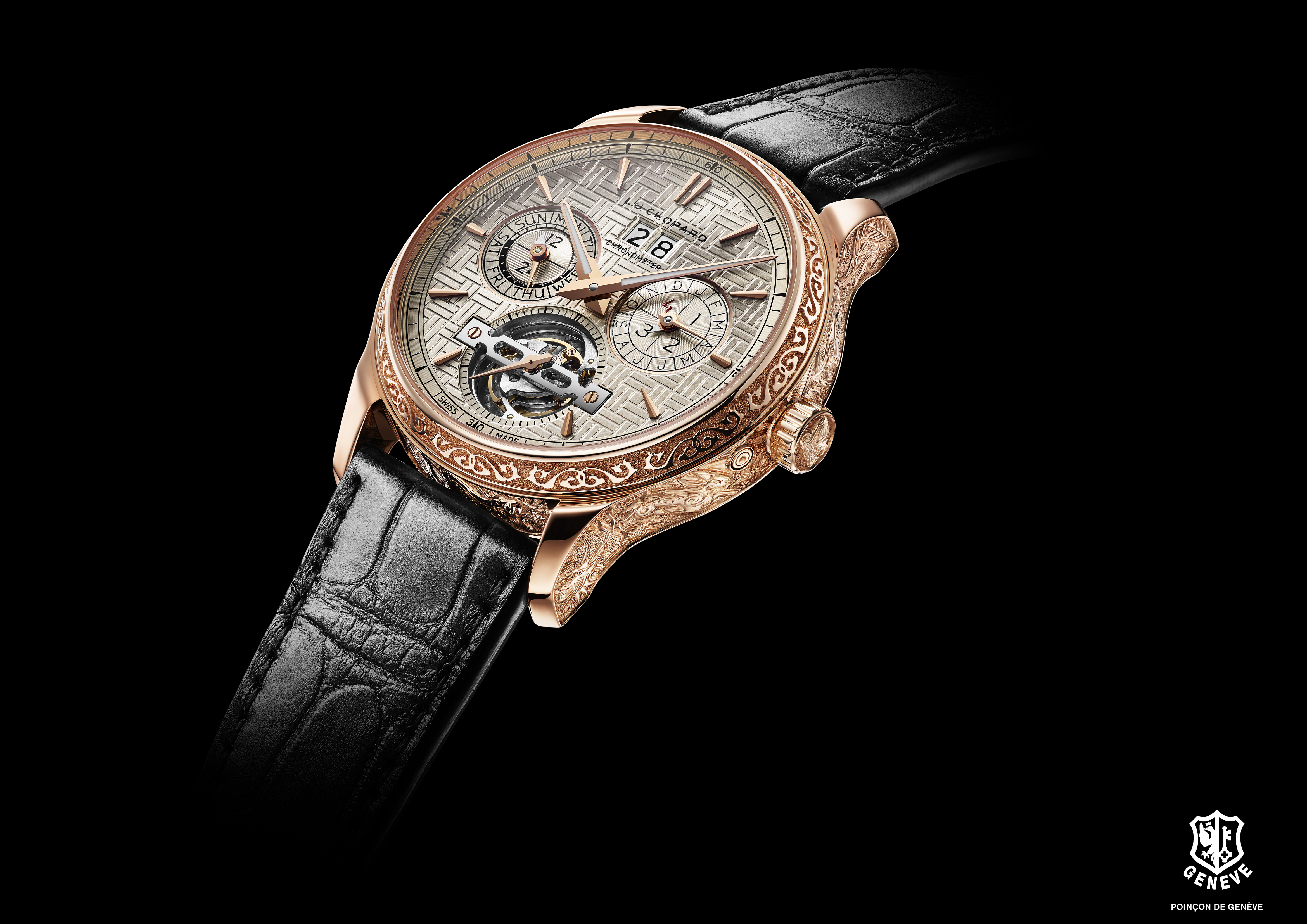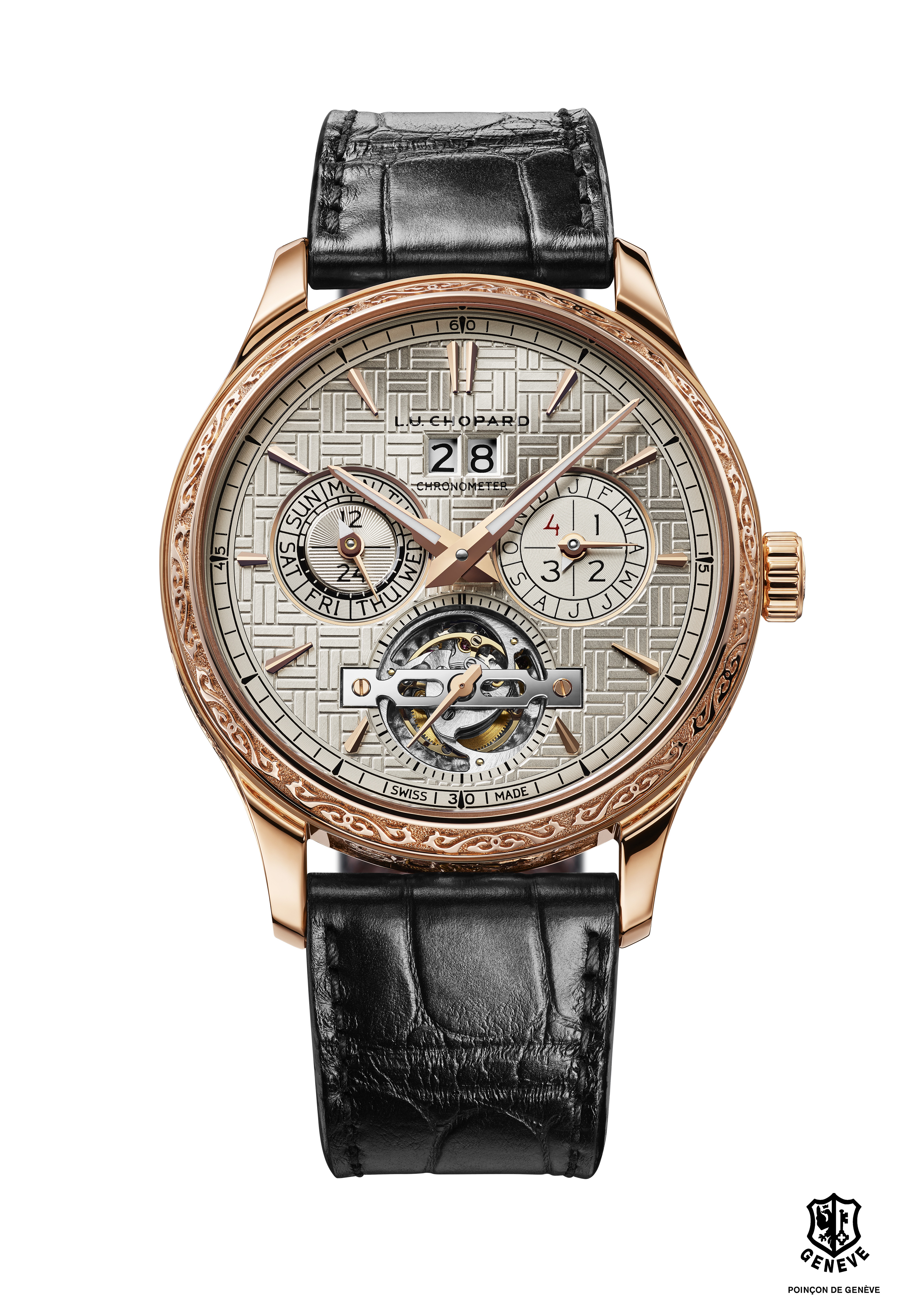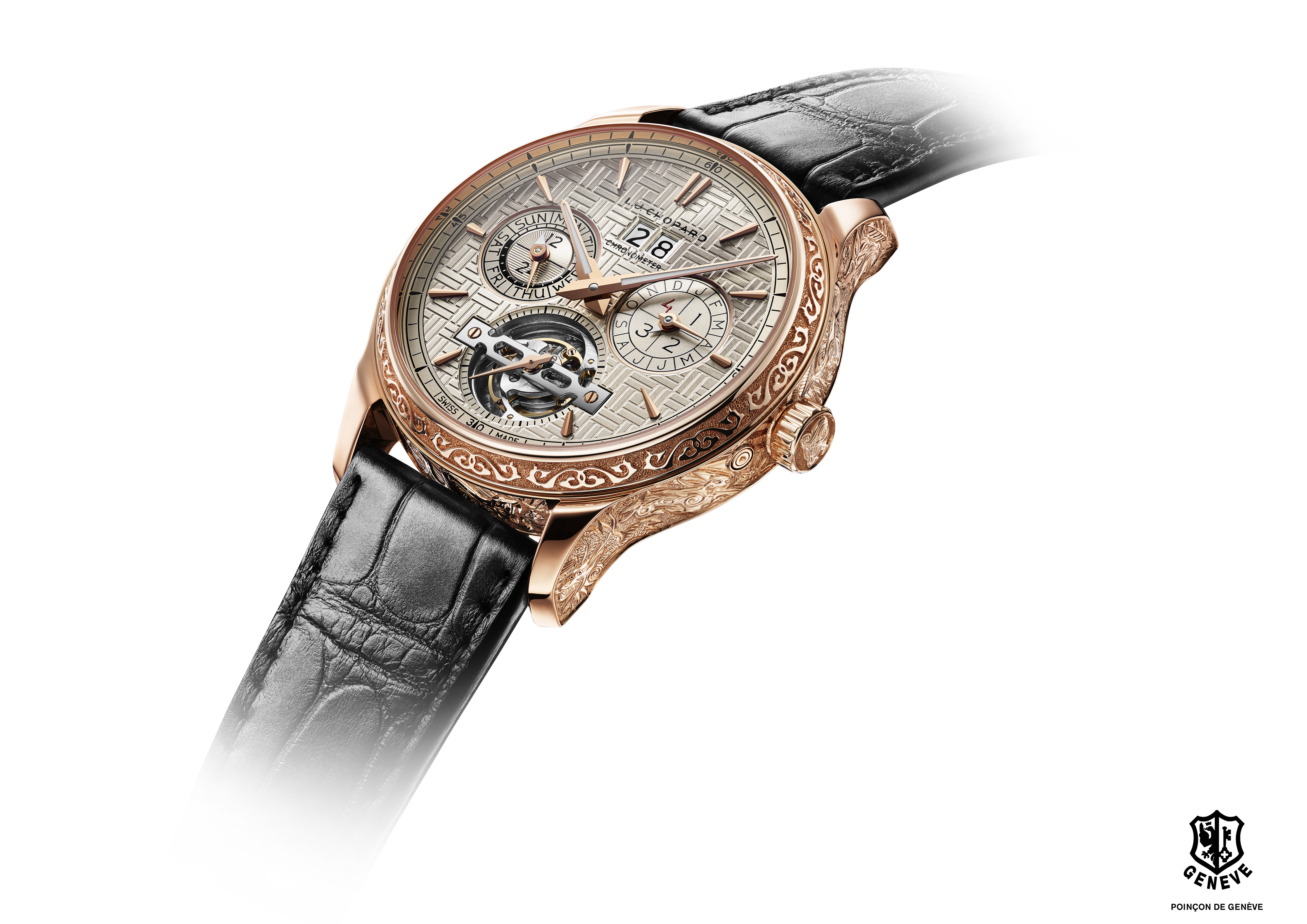 Engagé de longue date dans la perpétuation des métiers d’art mais aussi dans la célébration de la culture traditionnelle chinoise, Chopard livre un nouveau garde-temps édité en pièce unique qui fait honneur à ces deux domaines: la L.U.C Perpetual T Spirit of the Chinese Zodiac. Les artisans de la manufacture ont réalisé une boîte en or éthique rose 18 carats intégralement gravée à la main, représentant les douze signes du zodiaque chinois. A l’intérieur bat l’un des calibres les plus sophistiqués qui soient : un tourbillon quantième perpétuel à 9 jours de marche. Cette œuvre d’art exclusive, hommage à une culture millénaire, est réservée au plus avisé des collectionneurs.