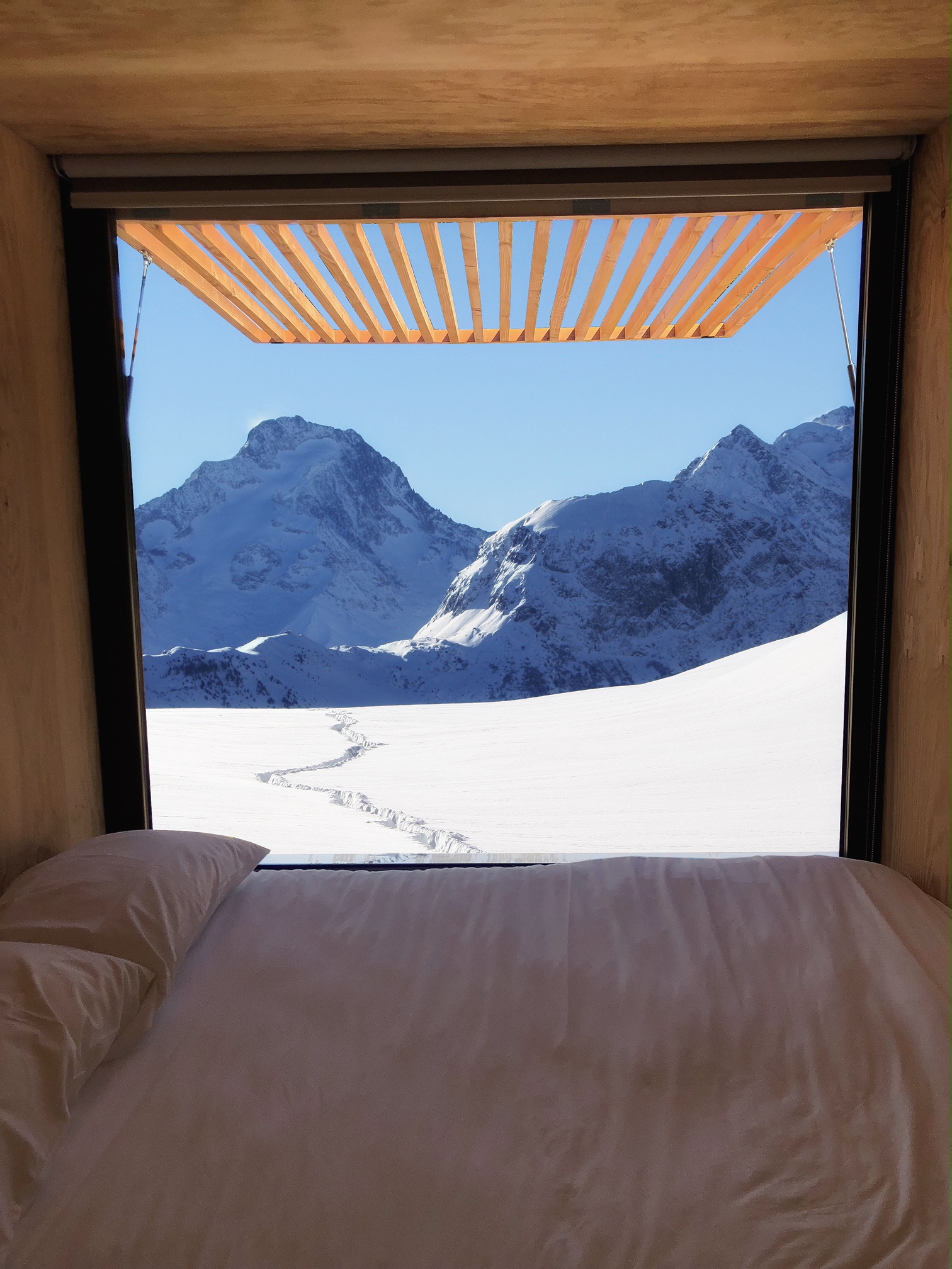 Si le concept Flying Nest est totalement insolite de par sa conception, son design et son architecture, il propose aussi une expérience entre confort, bien être et proximité avec la nature. Vous disposerez d’un espace de vie lumineux, d’une chambre avec un lit douillet, d’une salle de bain moderne et d’une terrasse privative. En plus de l’accès à un espace de vie commun avec vue sur la montagne pour prendre un petit déjeuner gourmand, un local de ski gardera votre équipement au chaud jusqu’aux prochaines descentes. Il ne reste plus qu’à chausser ses skis le matin et partir sur les pistes.