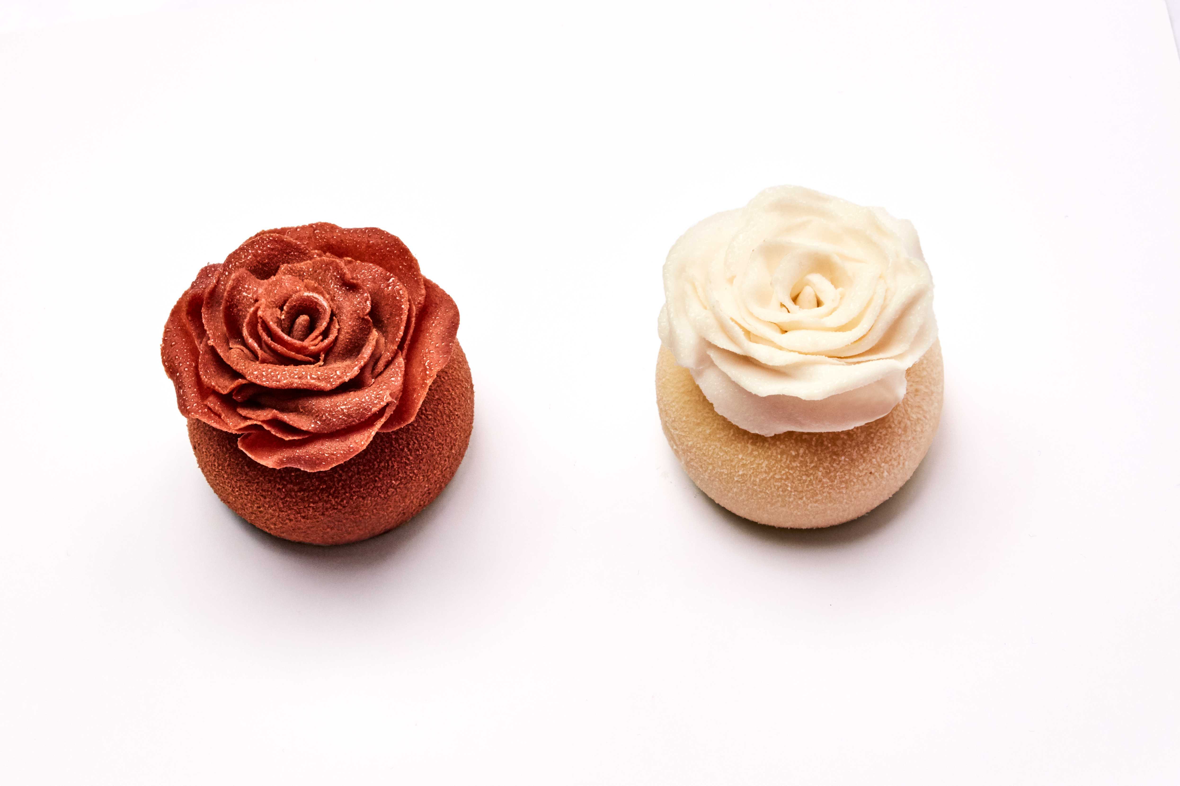 Surmontées d’une élégante et délicate rose en chocolat noir ou blanc, qui rappelle la grâce des Crazy Girls, ces douceurs dissimulent un cœur coulant à la noisette ou au caramel beurre salé ainsi qu’un biscuit aux noisettes ou aux amandes.