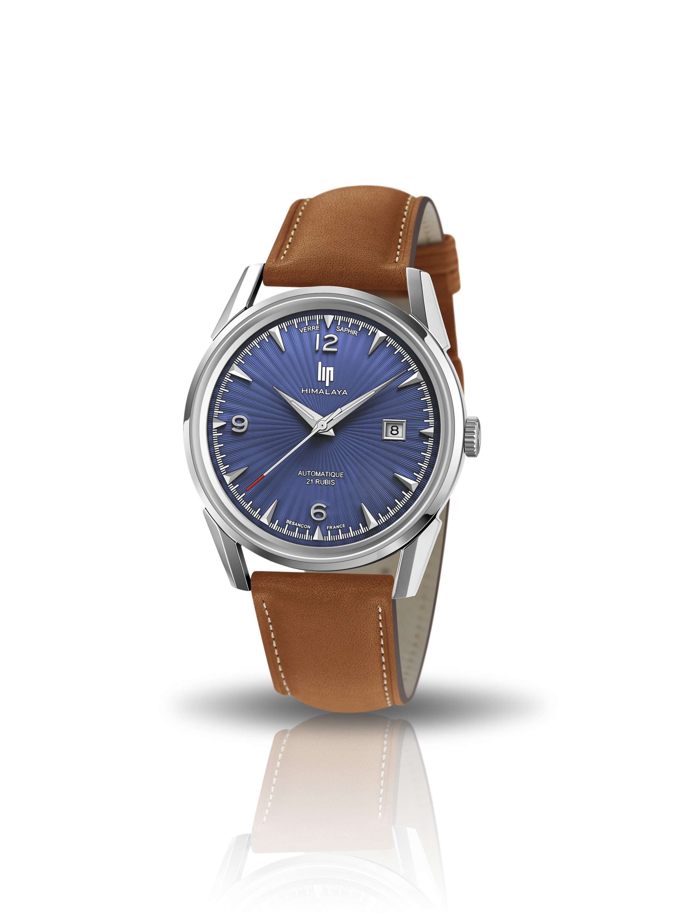 Équipée d’un nouveau cadran bleu avec double soleillage, un plus profond et un fin, la nouvelle LIP Himalaya 40mm automatique évoque les différentes nuances de bleu du ciel tandis que ses index et aiguilles facettés symbolisent les hauts sommets Himalayens.