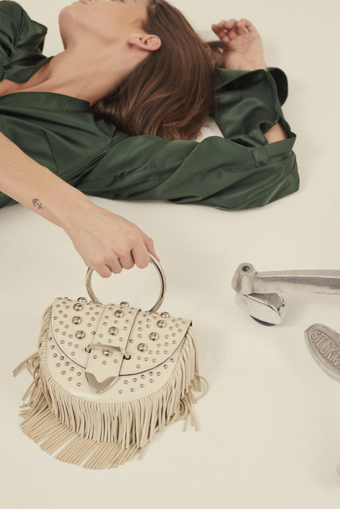 Déclinée en trois coloris, la besace se pare de franges et de clous pour un air de Calamity Jane.