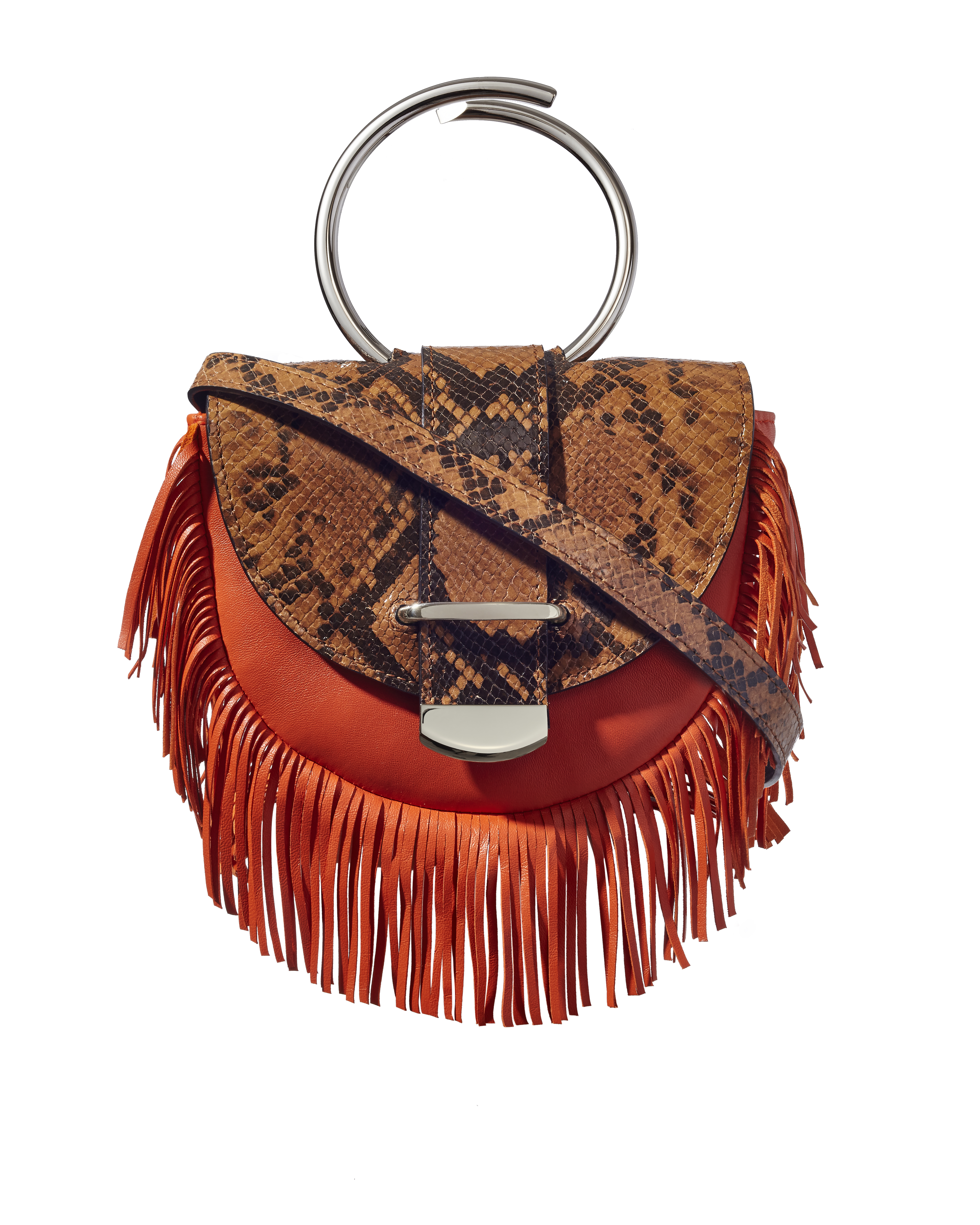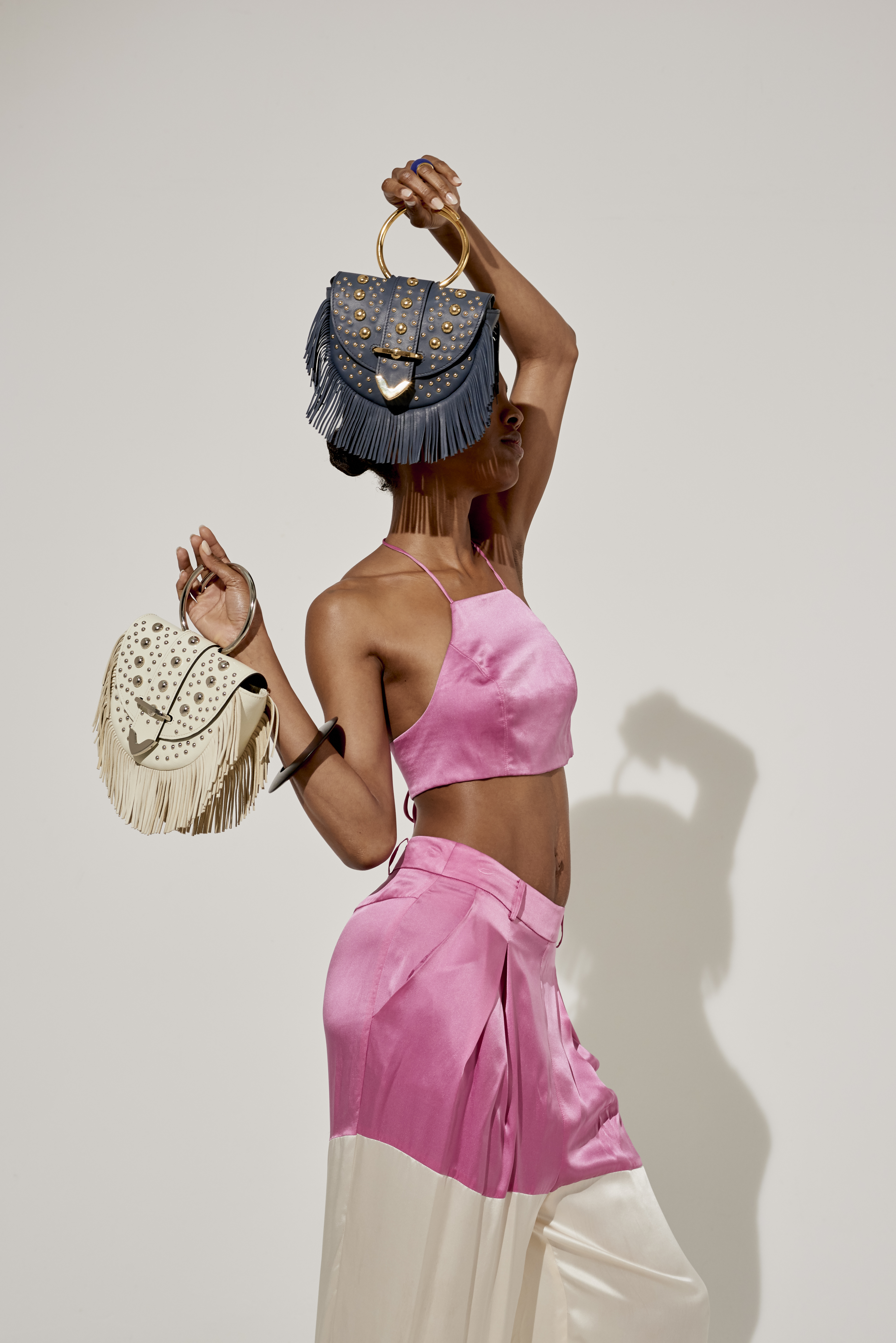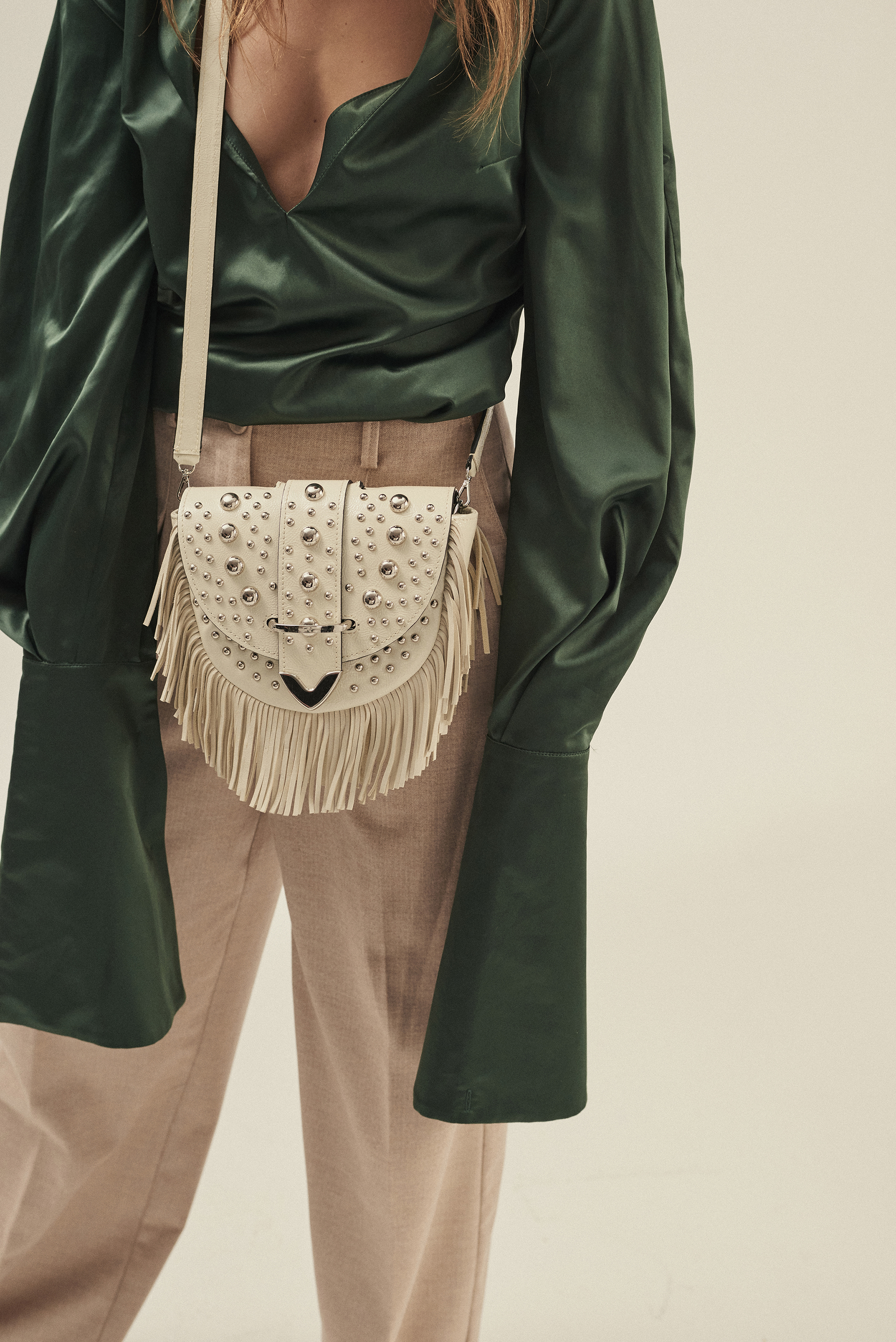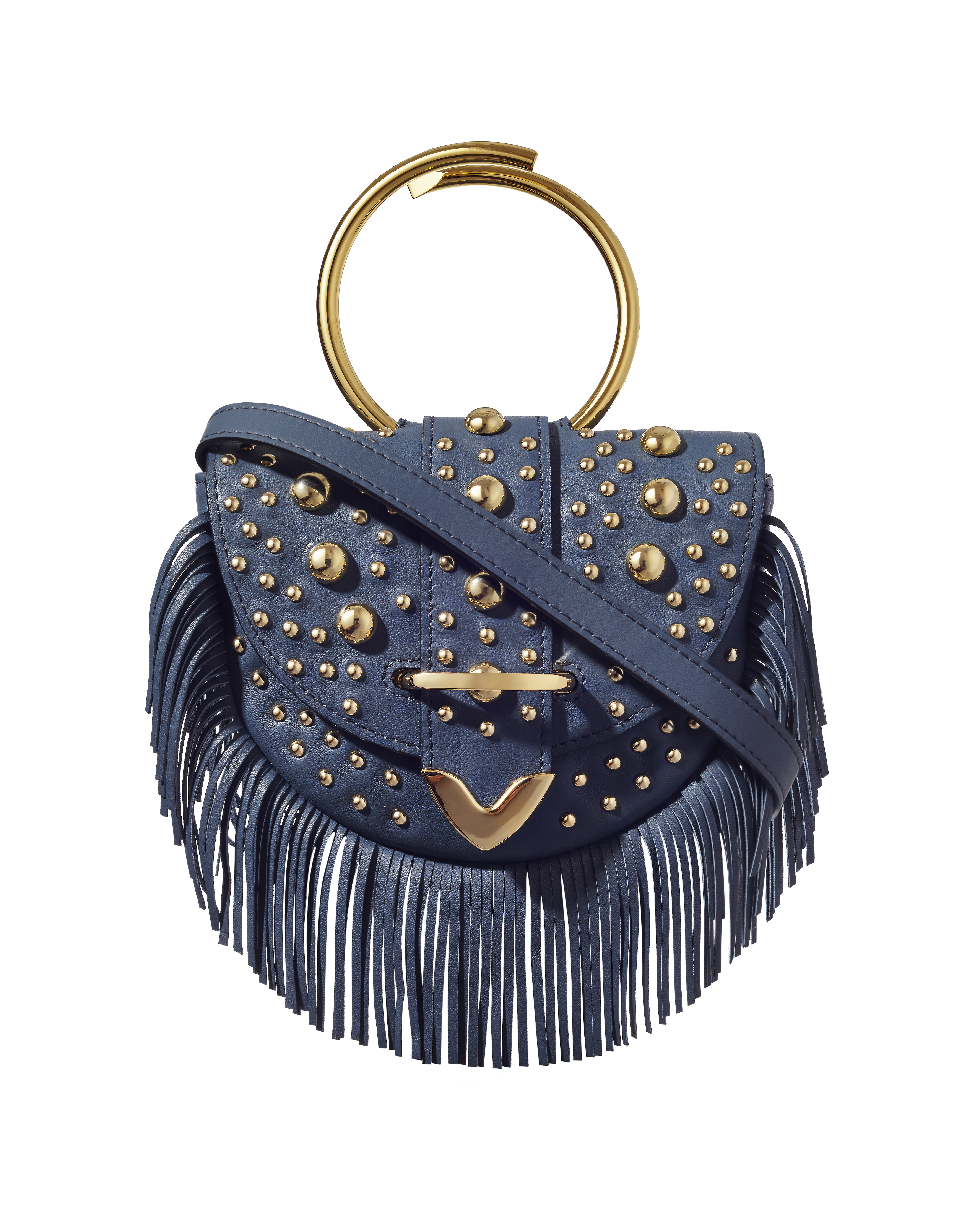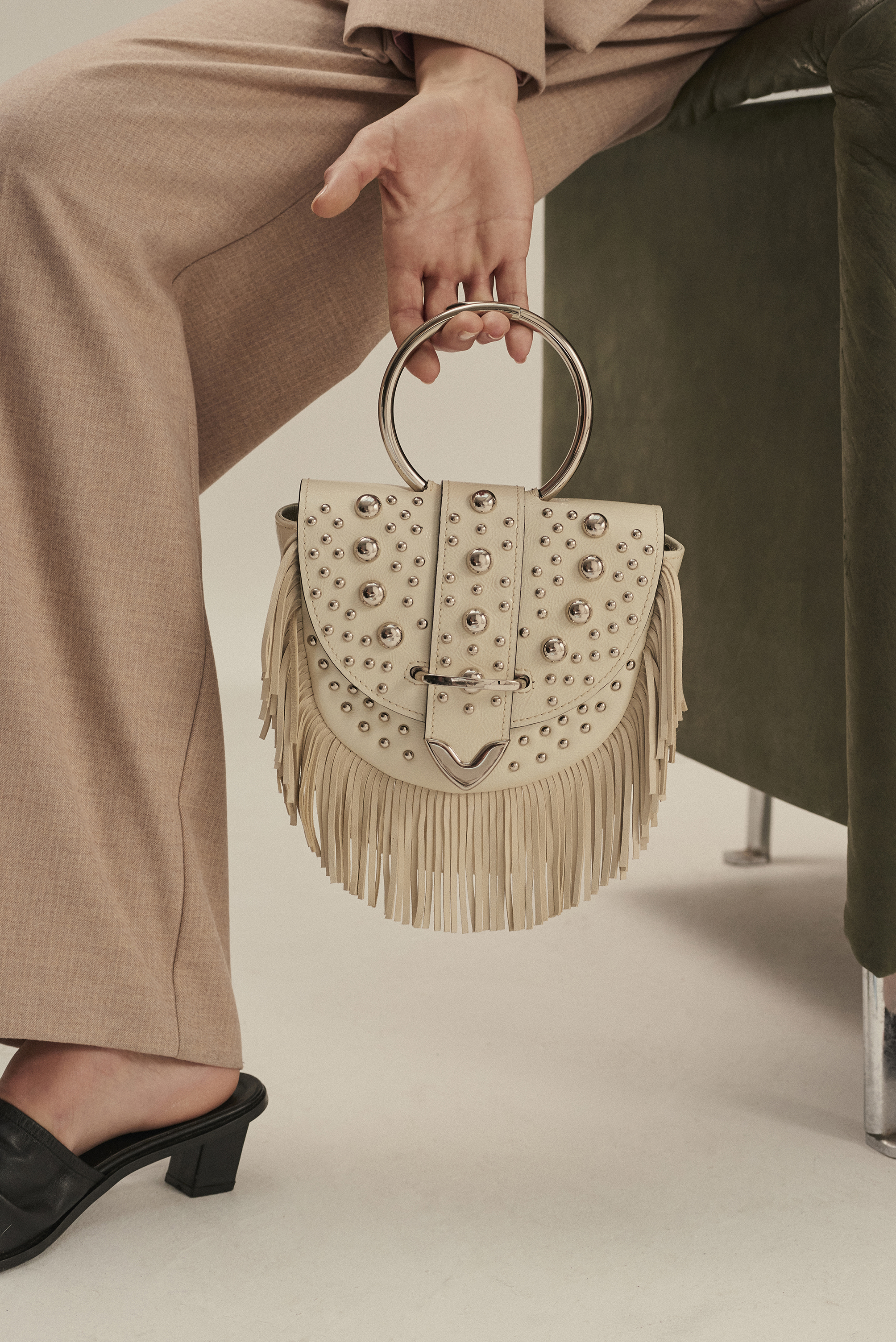 Déclinée en trois coloris, la besace se pare de franges et de clous pour un air de Calamity Jane.