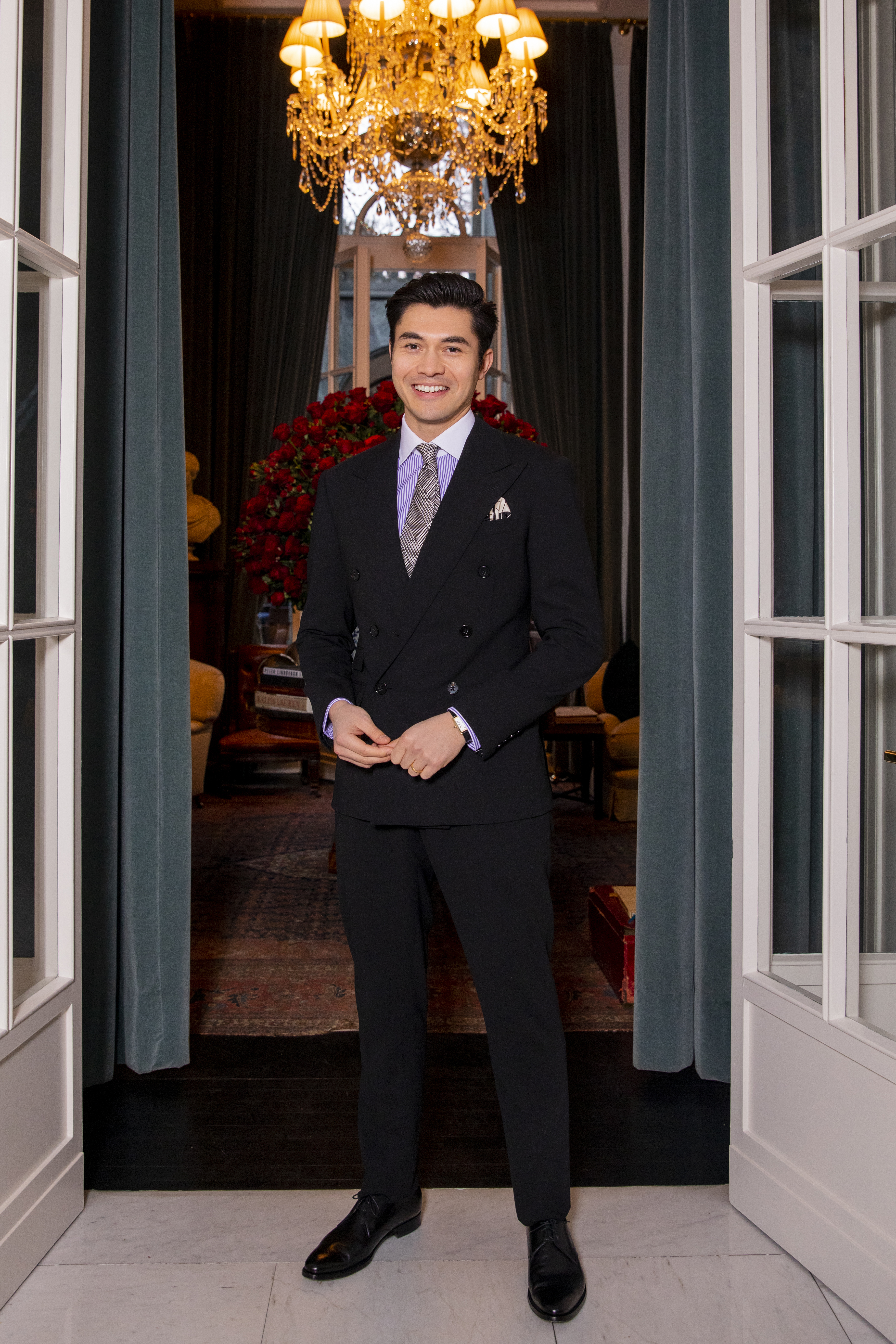L’acteur Henry Golding, qui portait le costume « Ralph » noir à double boutonnage de la collection Purple Label Spring 2019, a assisté à la présentation.