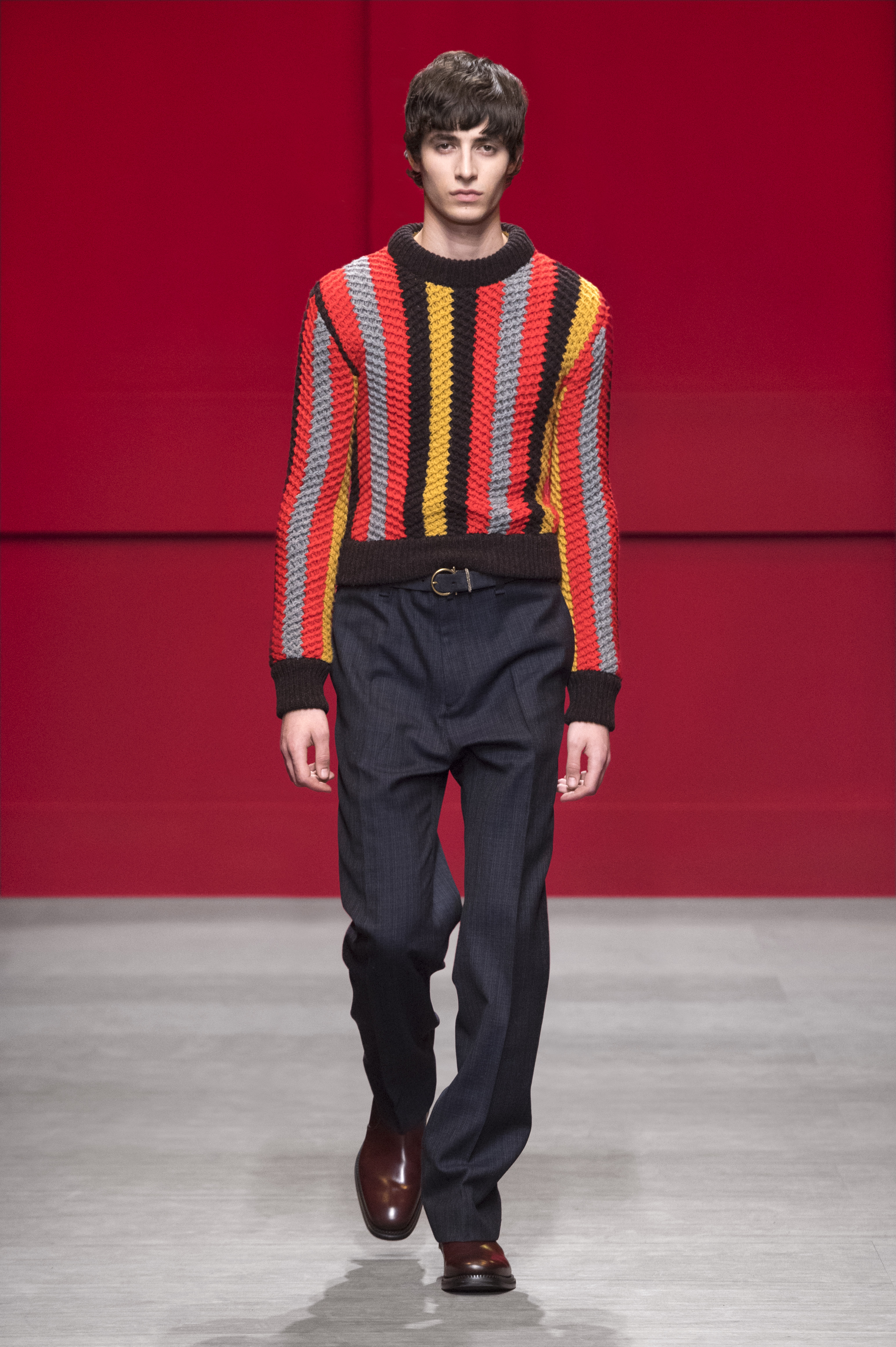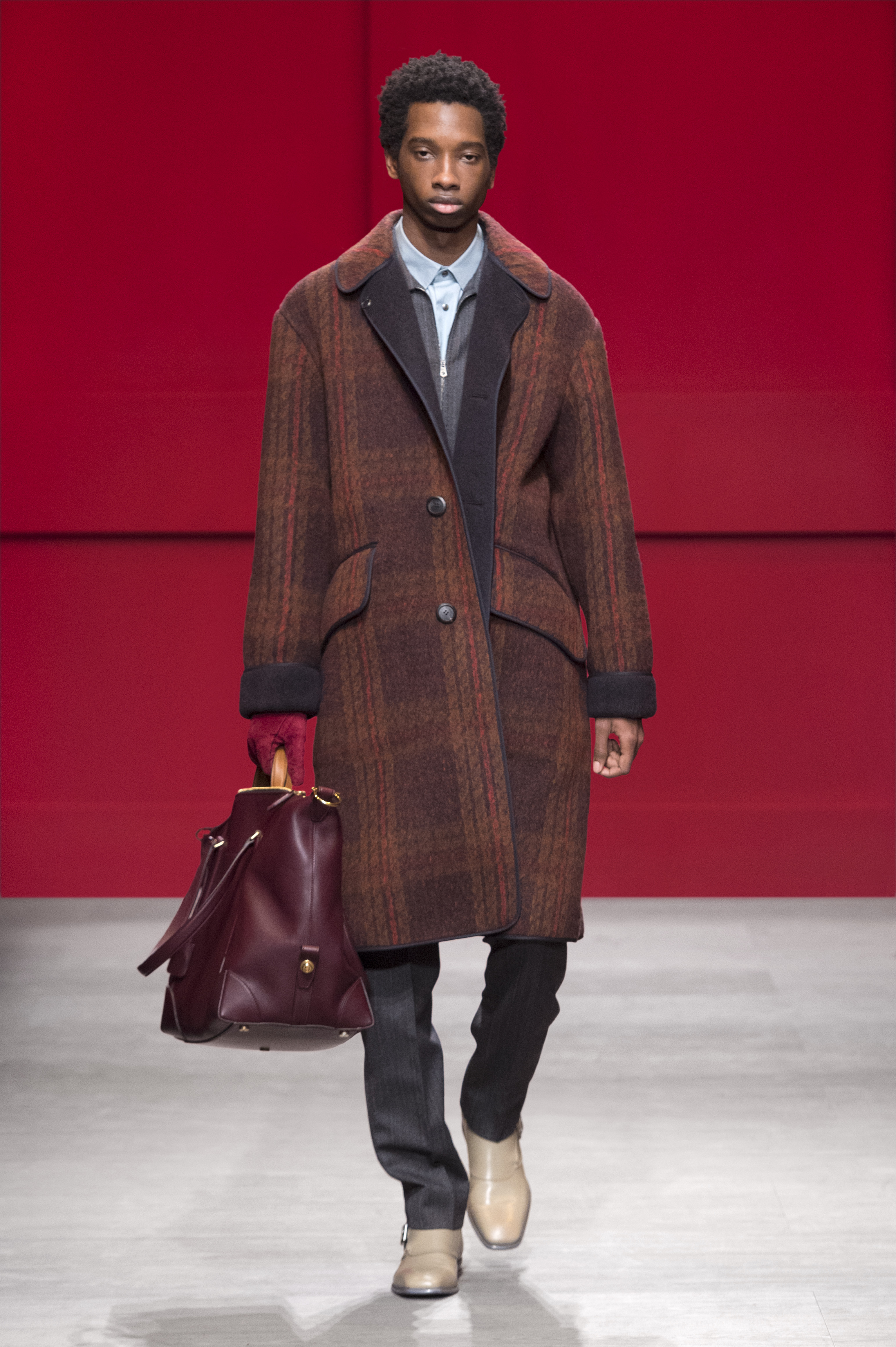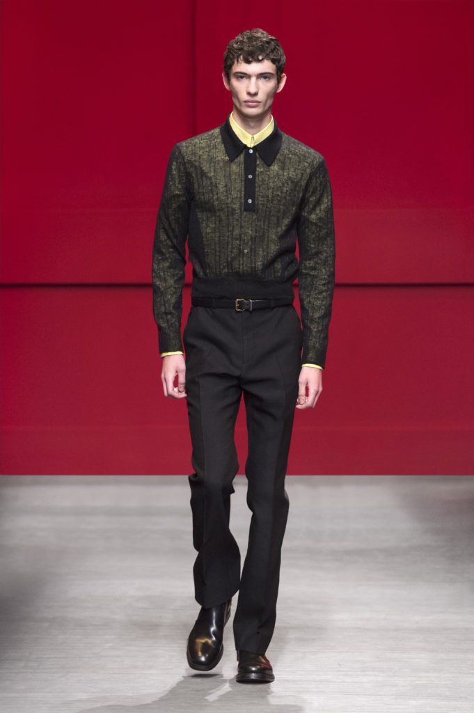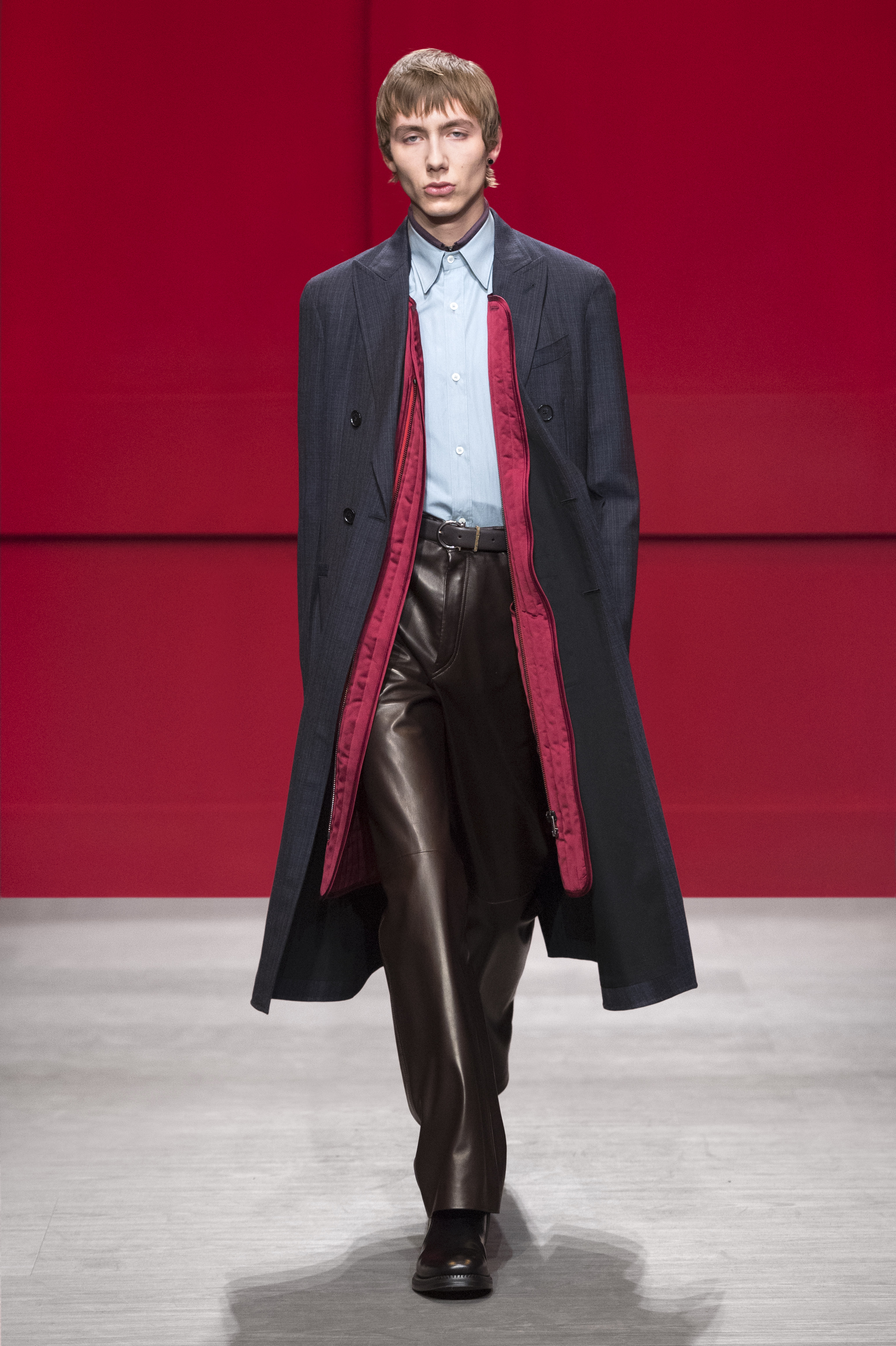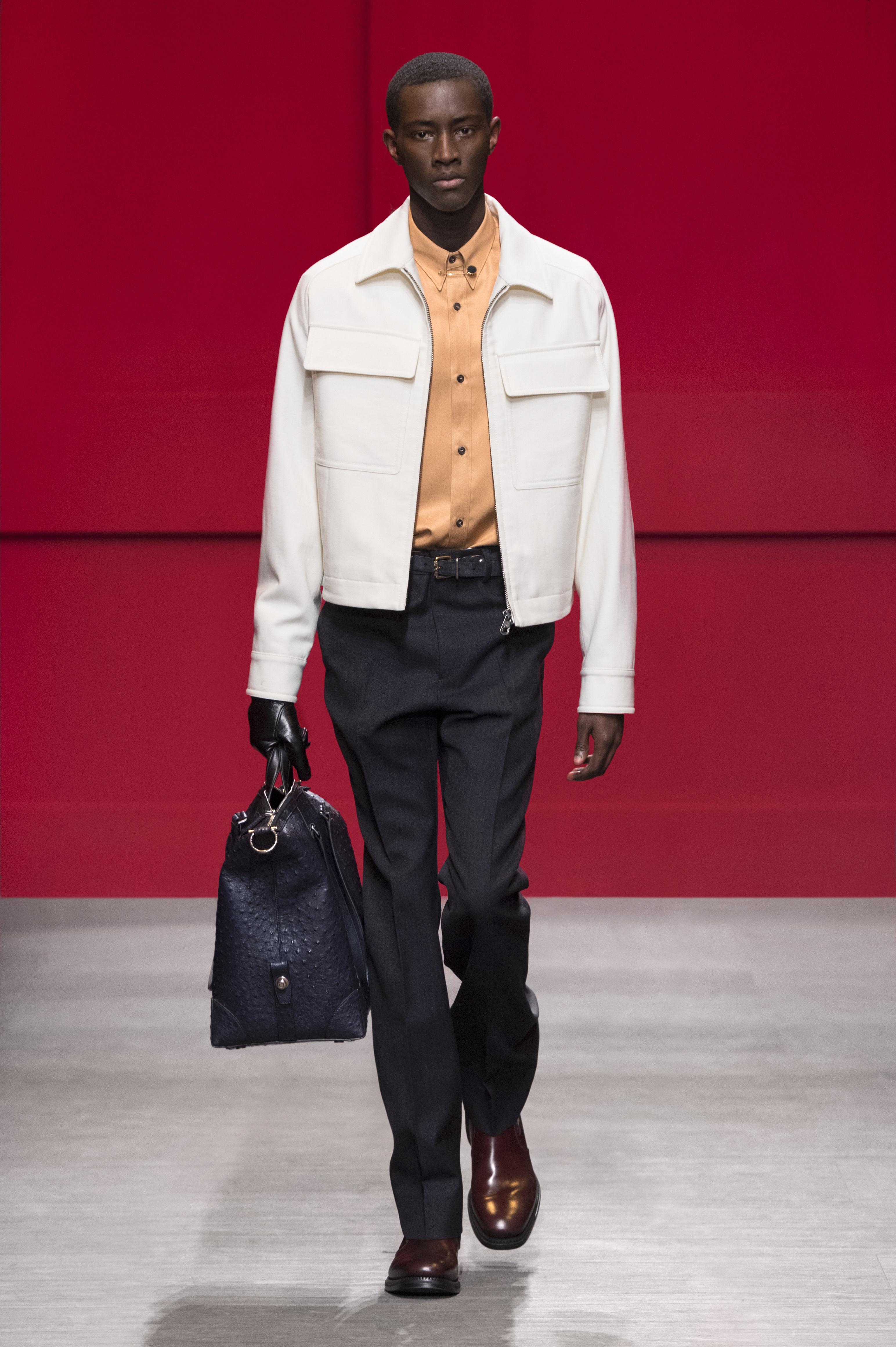 Conçue par Guillaume Meilland, la collection Homme Automne/Hiver 2018 retravaille les codes formels de Salvatore Ferragamo, conforme une philosophie de confort et de fonctionnalité. Inspirée par les archives de la Maison, la collection présente une nouvelle version de l’utilitaire, des pièces authentiques ont été renouvelées avec une touche innovante.