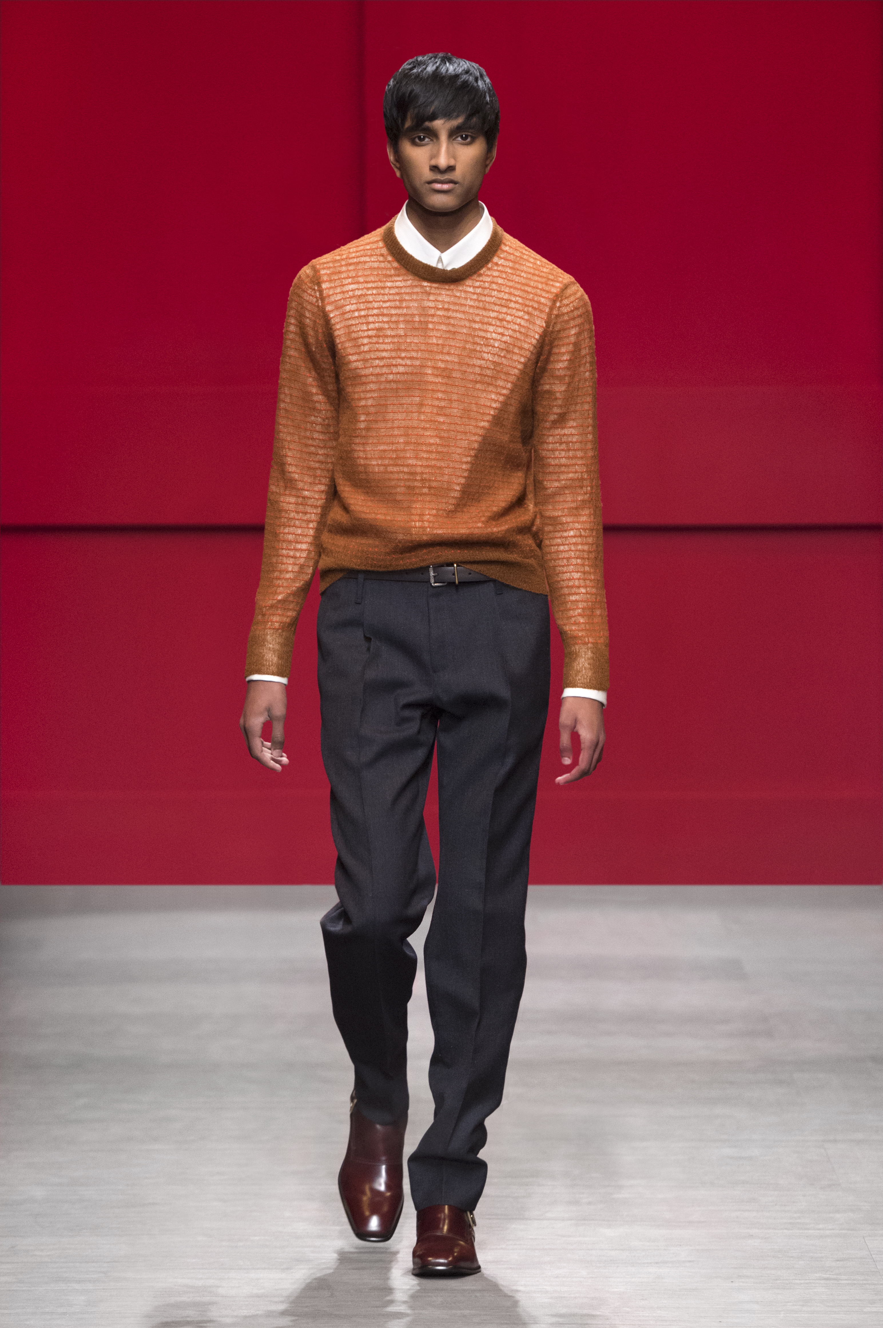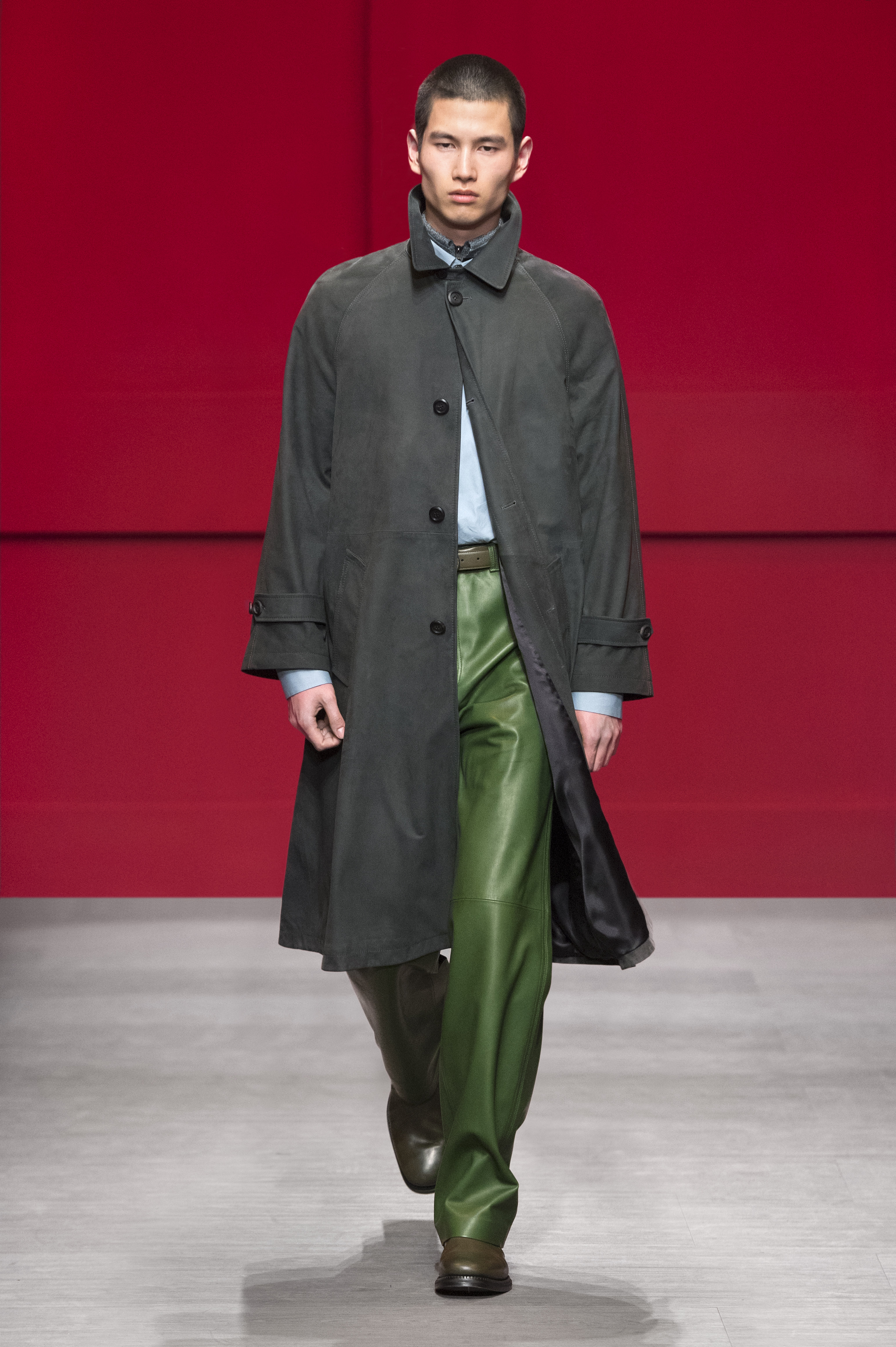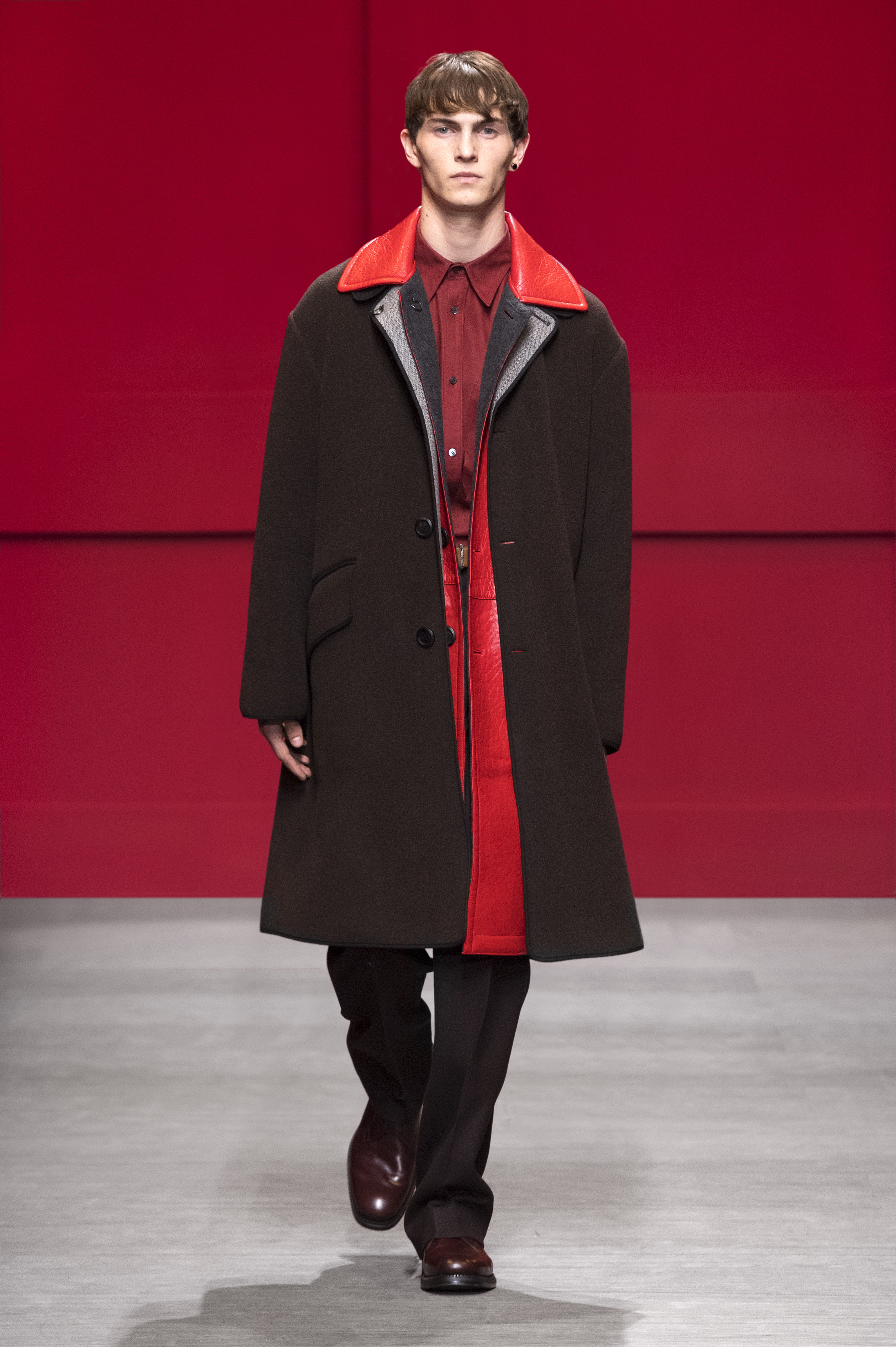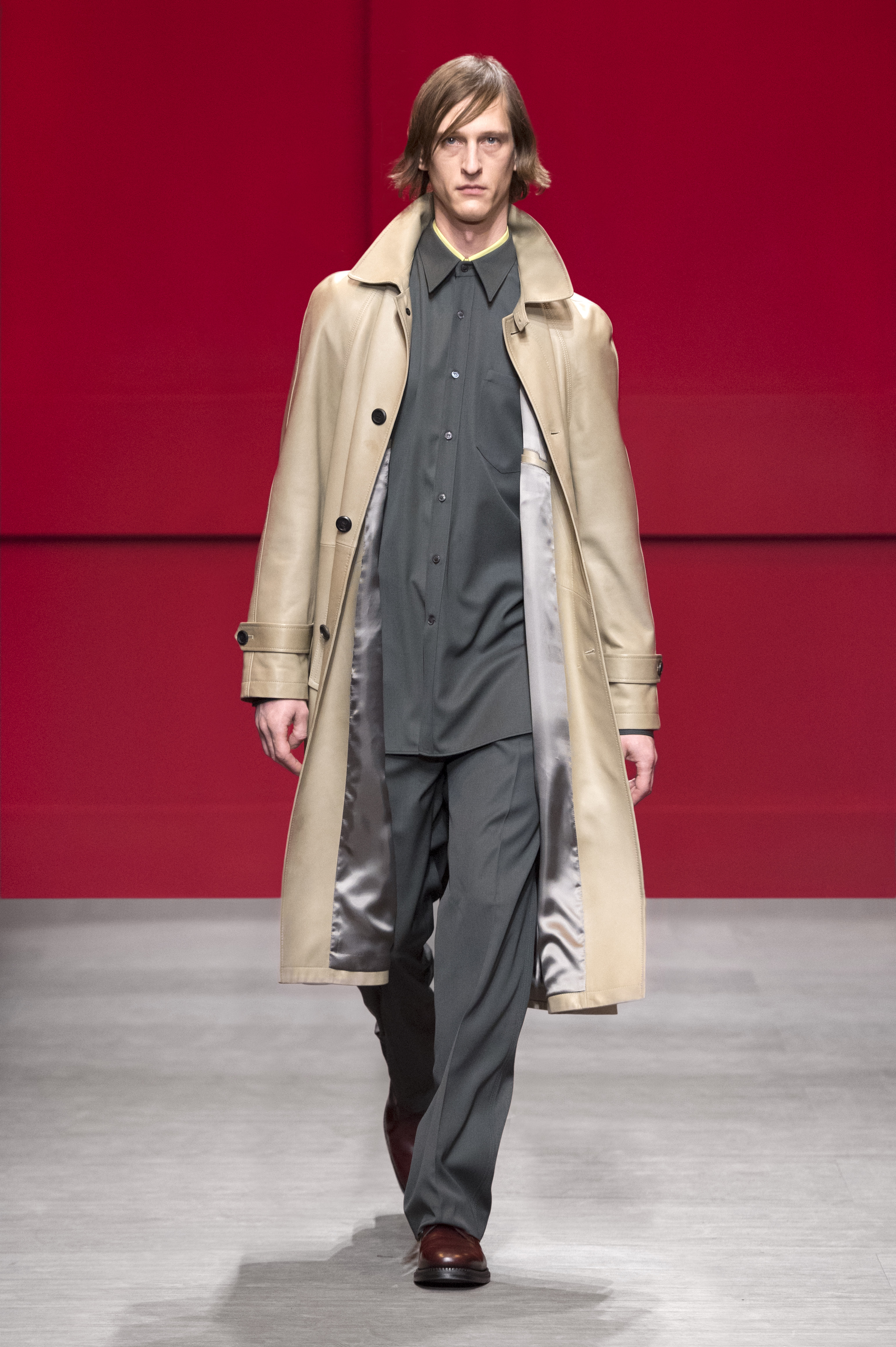 Conçue par Guillaume Meilland, la collection Homme Automne/Hiver 2018 retravaille les codes formels de Salvatore Ferragamo, conforme une philosophie de confort et de fonctionnalité. Inspirée par les archives de la Maison, la collection présente une nouvelle version de l’utilitaire, des pièces authentiques ont été renouvelées avec une touche innovante.