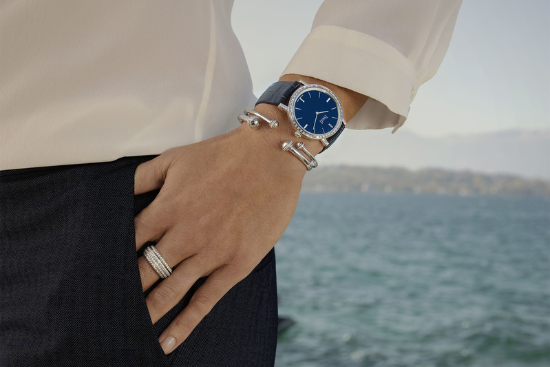 Pour la première fois, sa lunette et son cadran présentent des diamants taille baguette, son cadran est soleillé en bleu Piaget et elle est produite dans une édition qui ne comporte que 88 exemplaires.