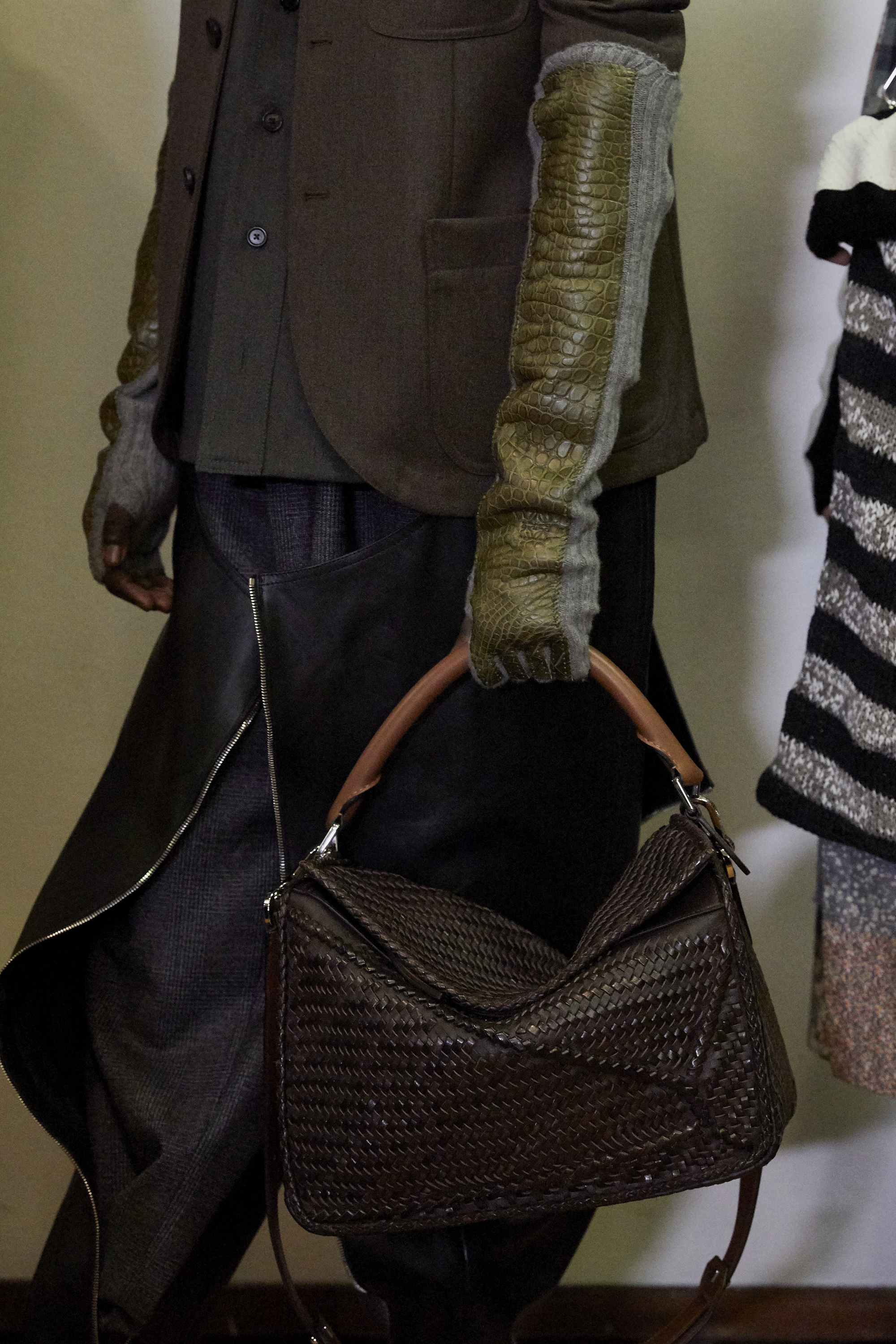 The signature Puzzle bag appears in burnished hand-braided leather, and the giant Gate saddlebag is unveiled for men.