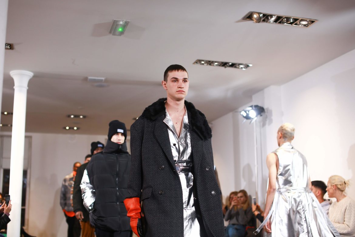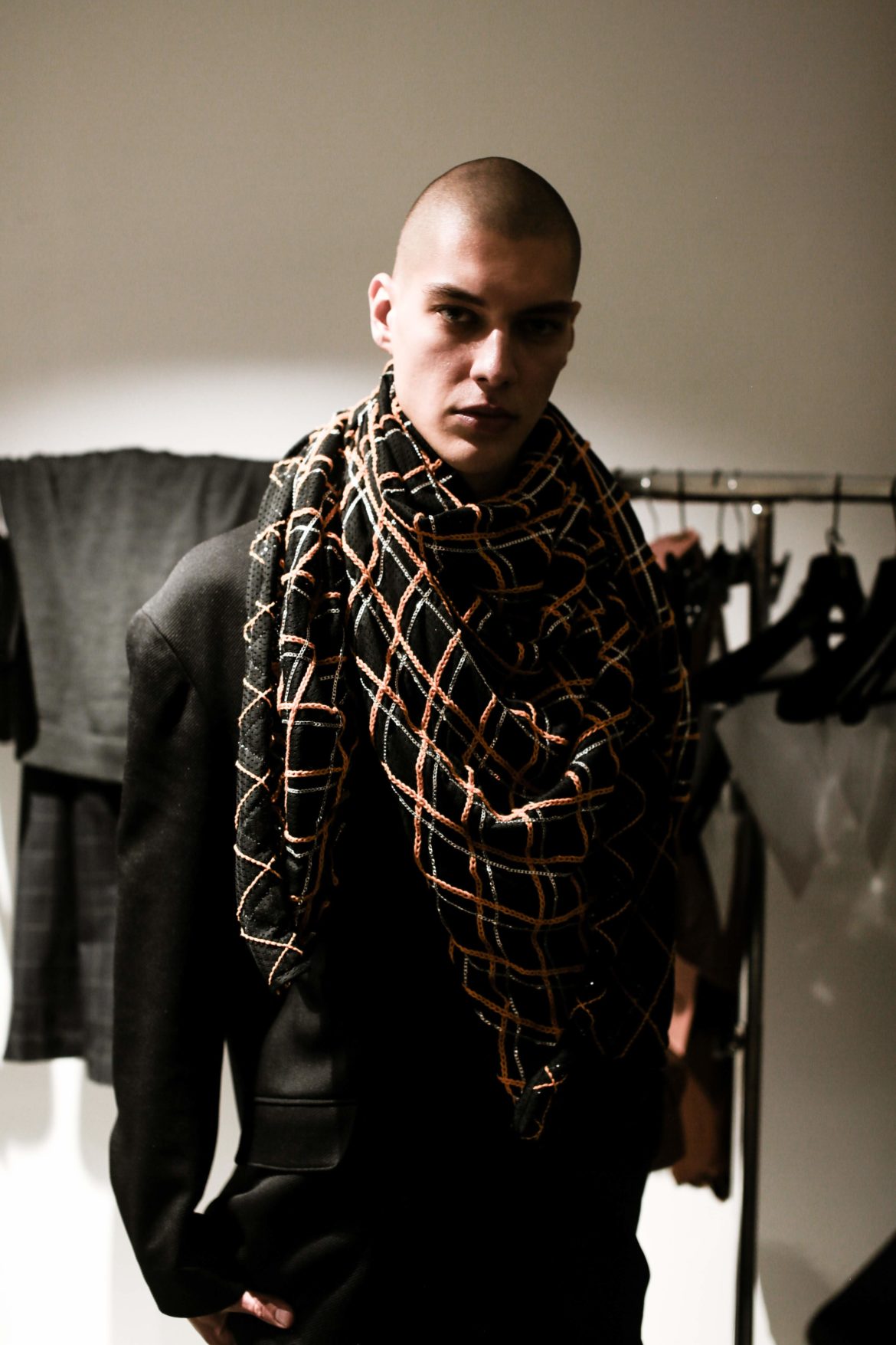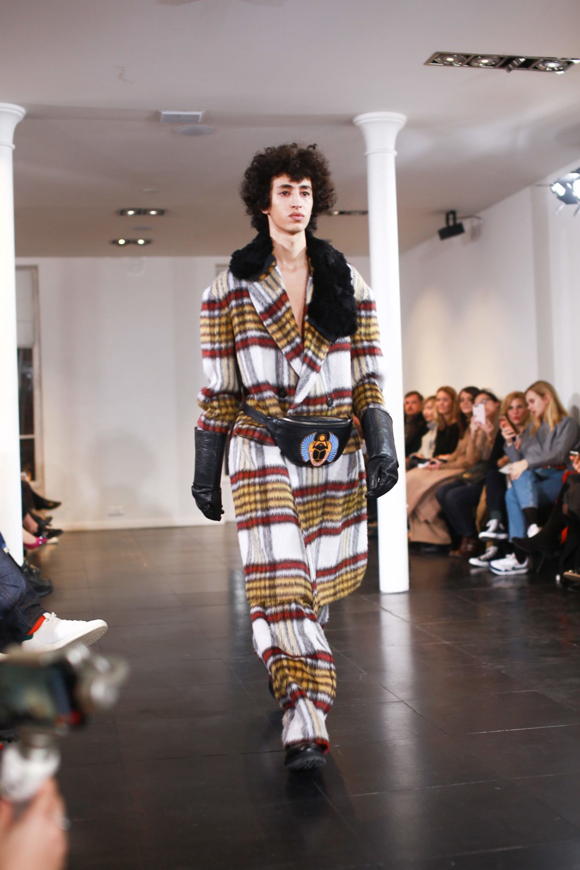 The collection finds itself dissecting the dialogue between classic suits and workwear. The stars dotted throughout the collection echo those which line ancient tombs as well as old car radiators, the modern sarcophagi of our daily vehicles. The prints (leopard, tartan and skull) combined with the precious metal talismans created as accessories, situate the collection between ostentatious opulence, grunge aesthetics and symbols of power.