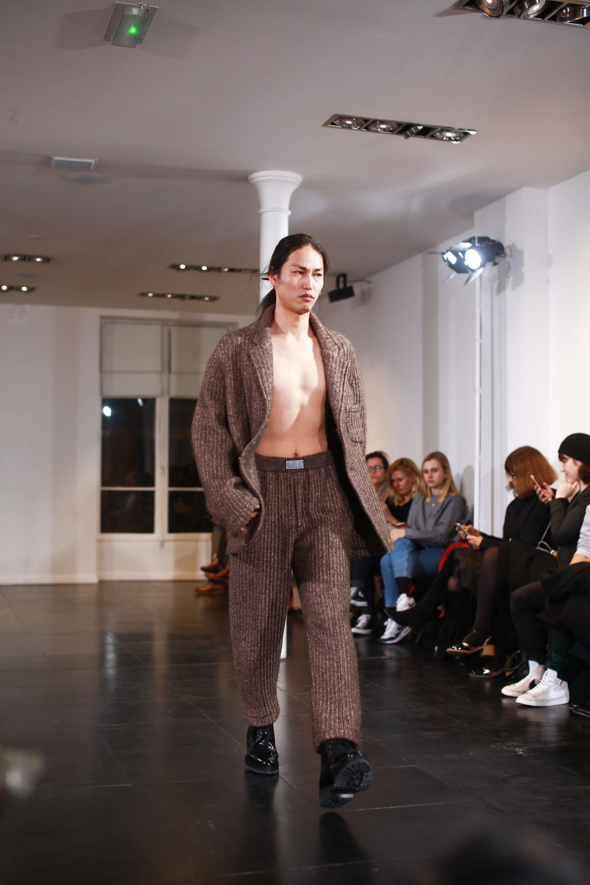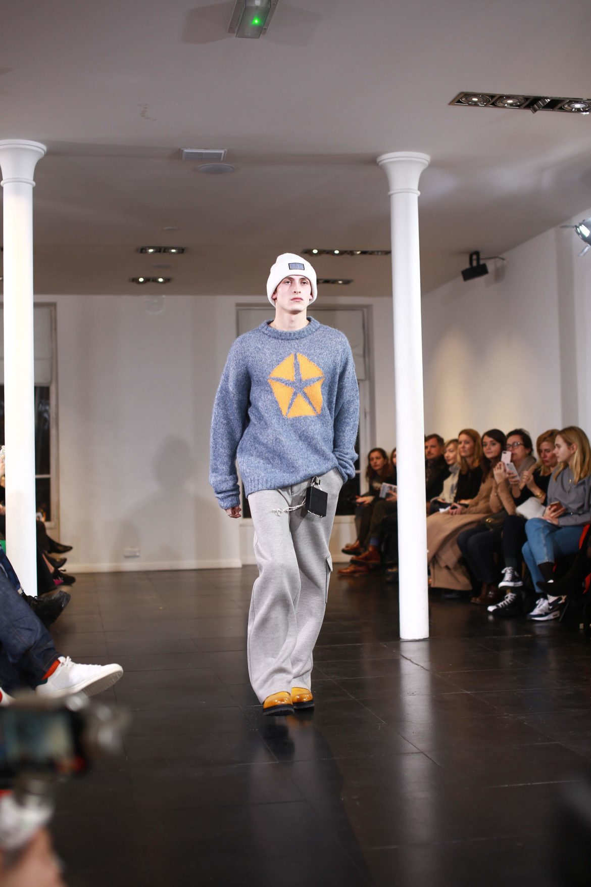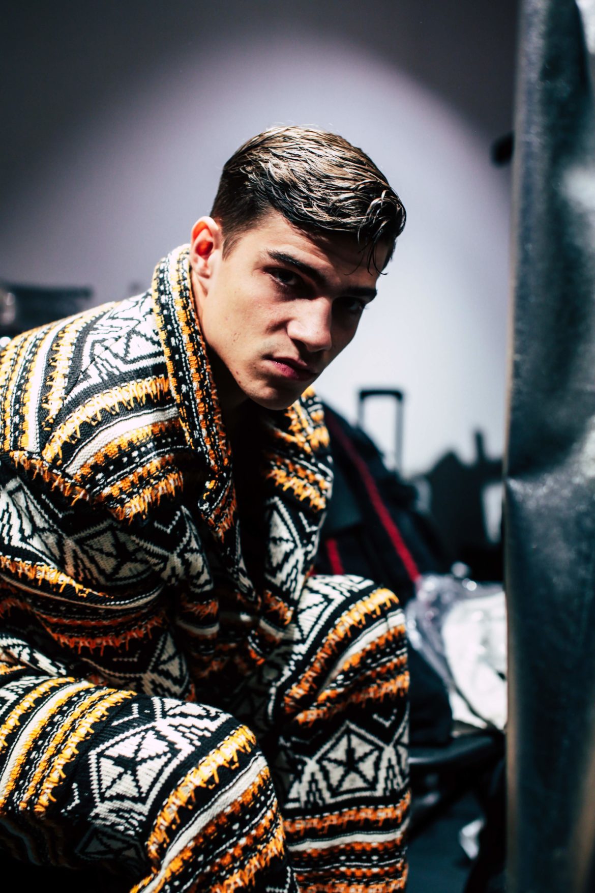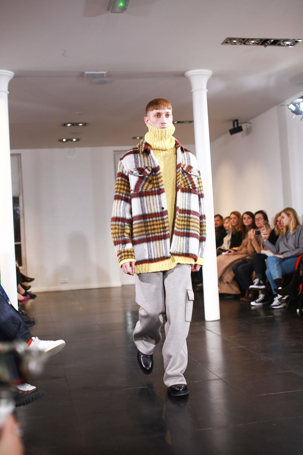 The collection finds itself dissecting the dialogue between classic suits and workwear. The stars dotted throughout the collection echo those which line ancient tombs as well as old car radiators, the modern sarcophagi of our daily vehicles. The prints (leopard, tartan and skull) combined with the precious metal talismans created as accessories, situate the collection between ostentatious opulence, grunge aesthetics and symbols of power.