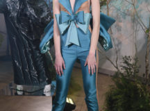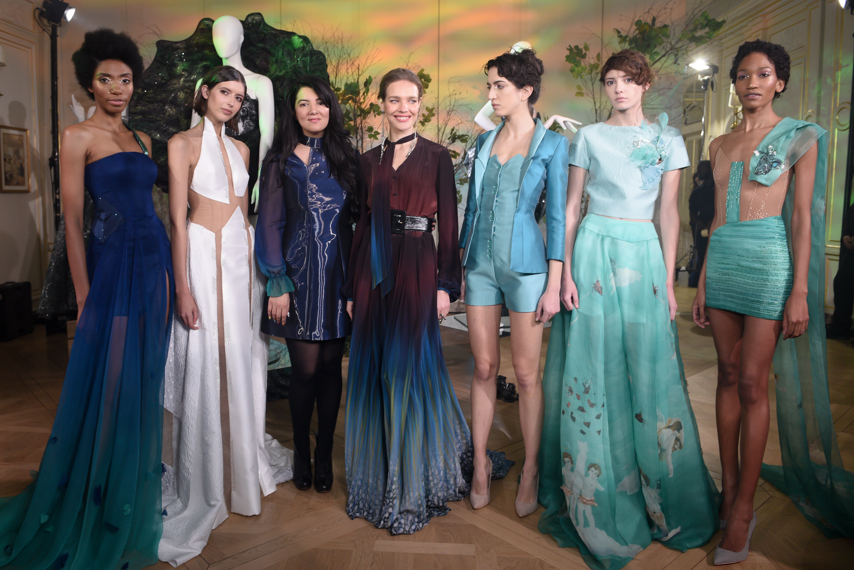 Le temps d’un conte, le Ritz s’est transformé en une forêt peuplée de muses. Alors que les premières neiges tombaient sur Paris, le vestiaire couture imaginé par la créatrice Gyunel s’est déjouée du froid pour exercer sa douce féerie. Une ambiance Dark Paradise qui n’est en rien angoissante. À l’image de la robe du même nom, délicate et teintée d’un noir bleu ombré, la chanson de Gyunel est comme ces mélodies intemporelles. Un air rassurant vers lequel on revient peu importe les époques. Avec une offre qui combine artistique, travail des coupes et robes plus sexy,  la maison Gyunel Couture est celle d’une artiste dont les robes conservent au creux de l’orgenza les marques des pinceaux qui peignent les rêves.