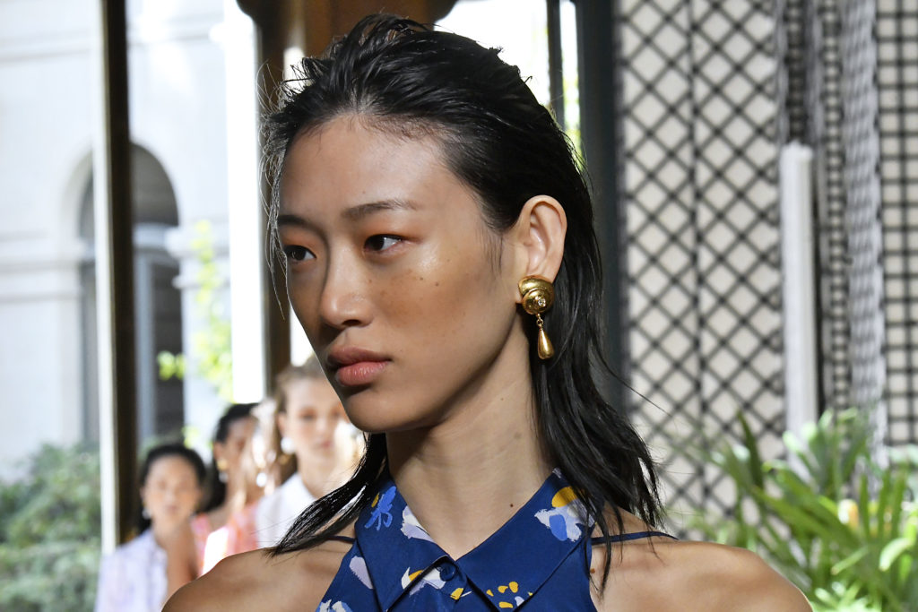 “I wanted to capture the feeling of being in love during the summer- of happiness and elation, but also of vulnerability and fragility, and the inherent tension and thrill that comes with first love. I was inspired by movies that explored young love, from Cinema Paradiso to Stealing Beauty and Call Me By Your Name, and memories of my own summers in Italy as a teenager. I wanted the collection to evoke a garden of sensual delight, lush and dazzling, drenched in sunlight and echoing with the sound of waves. I started with a strict silhouette, and slowly started breaking it down, making it feel more and more undone.” – J.A.