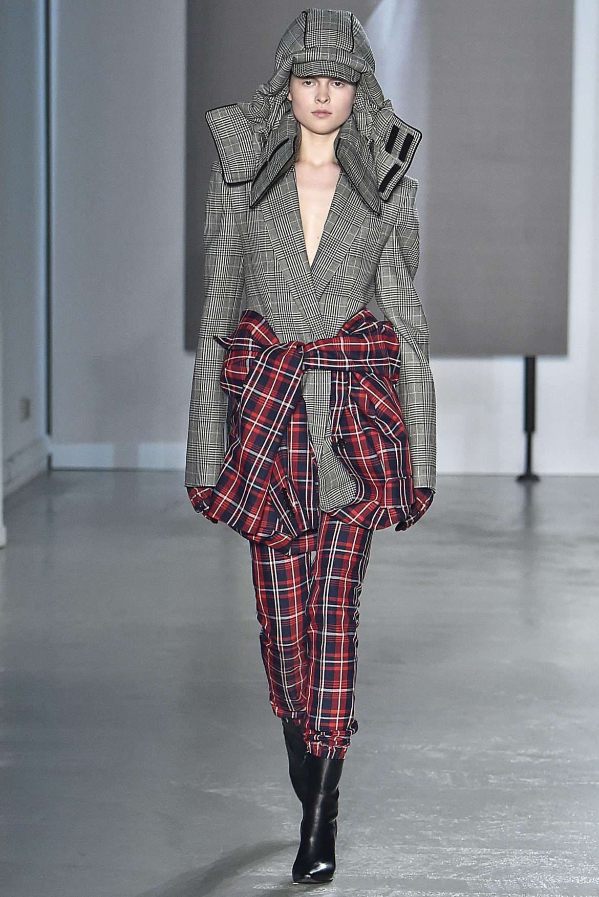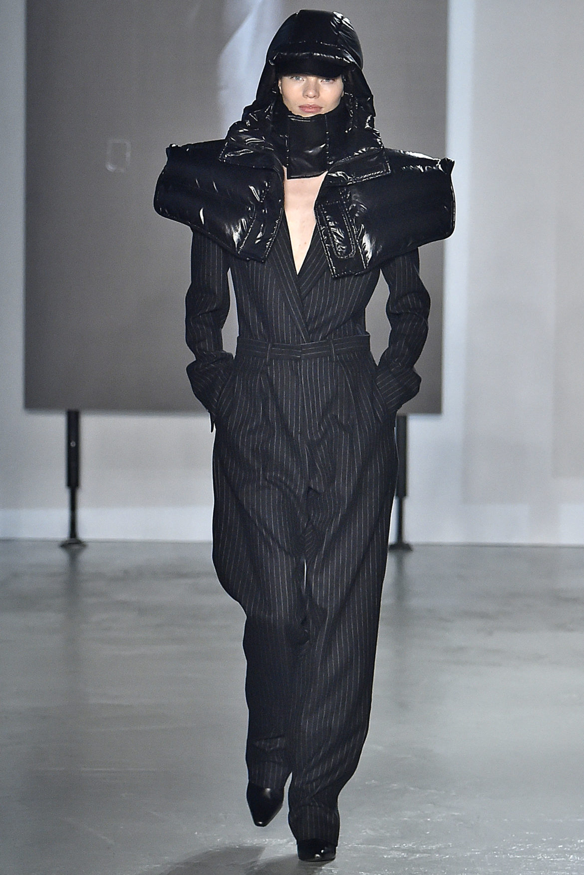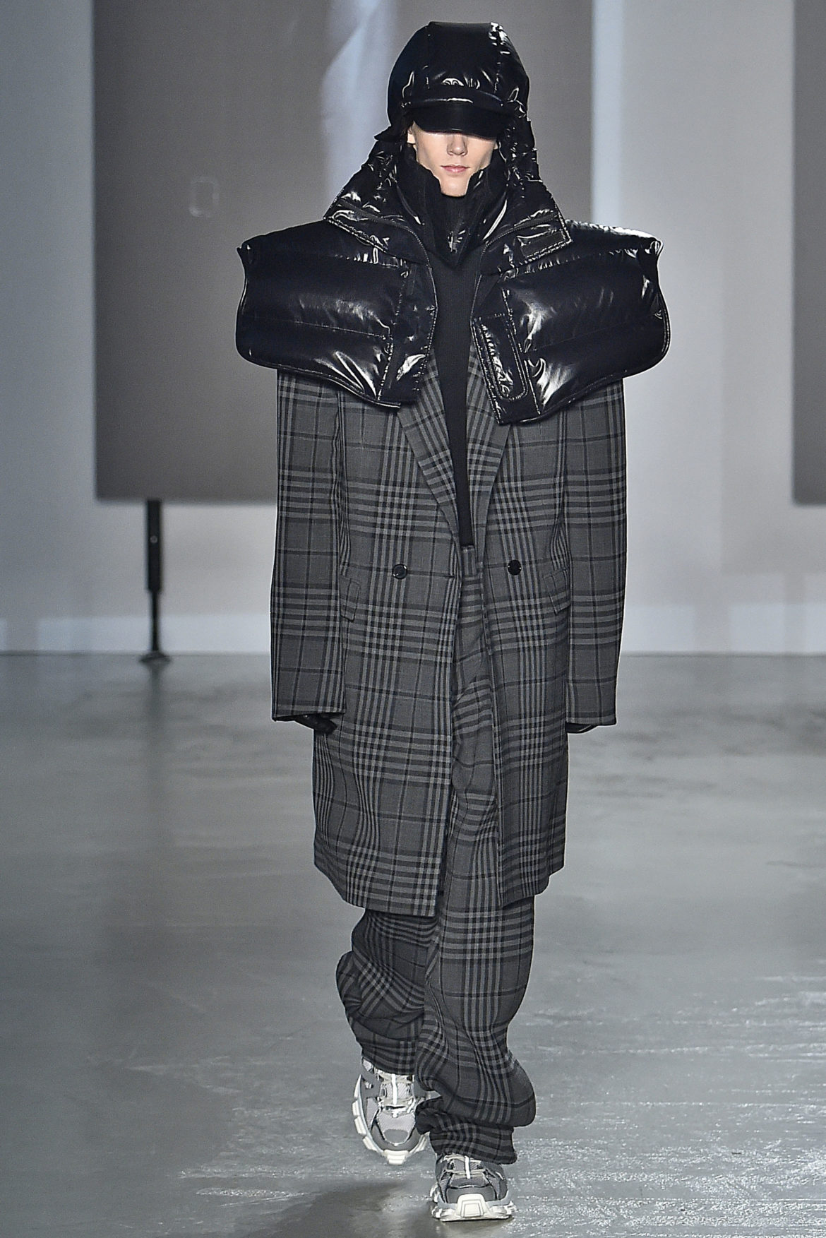 It brings silhouettes and structures from formal items together with a mixture of various fabrics presenting new Juun.J silhouettes.