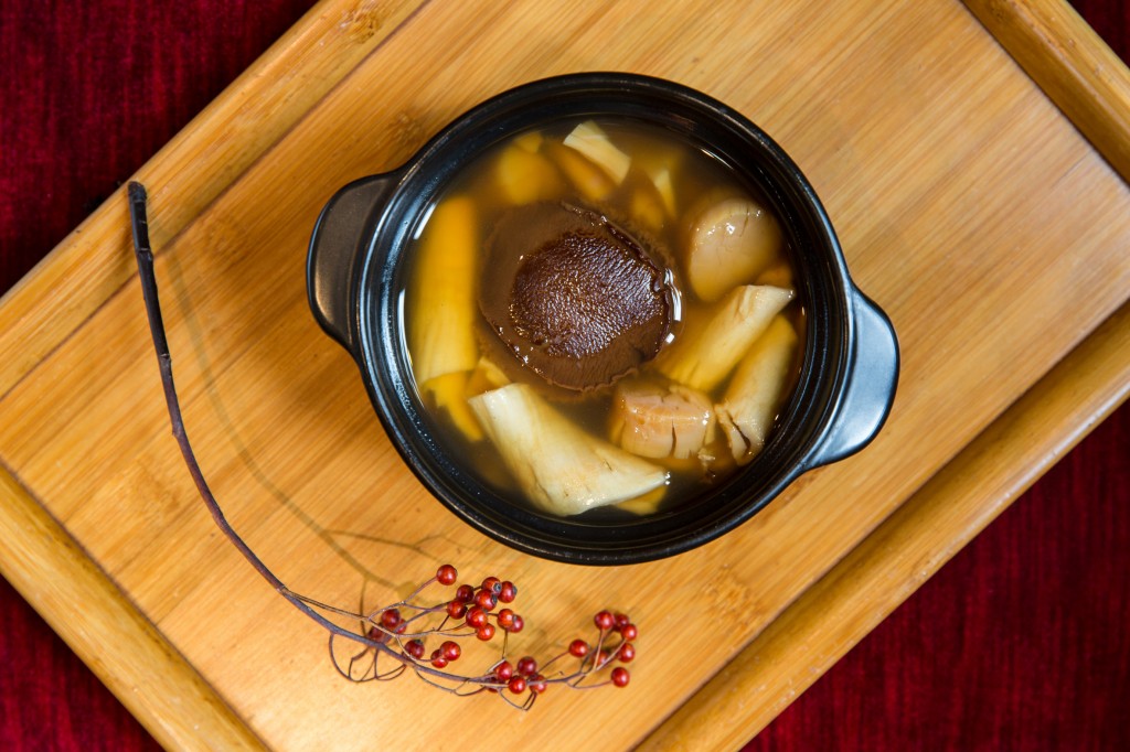 Les fruits de mer ont une grande place dans la cuisine cantonaise et à la carte du restaurant. Chez Ly, on utilise, comme à Hong-Kong, des ormeaux séchés, technique qui permet de les garder plus longtemps et surtout de concentrer les saveurs. Ils sont ensuite cuits dans un bouillon parfumé avec des pétoncles et des champignons.