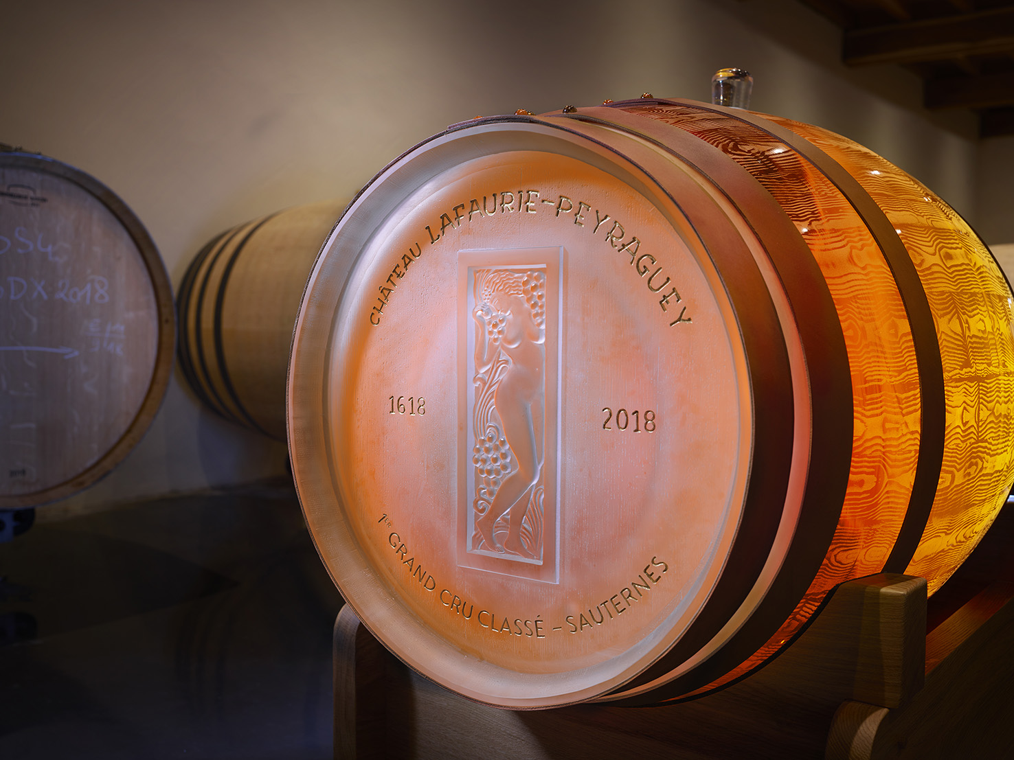A l’occasion des 400 ans du château (1618 – 2018), une barrique en cristal a été créée par la manufacture LALIQUE pour le Château Lafaurie-Peyraguey à Sauternes.