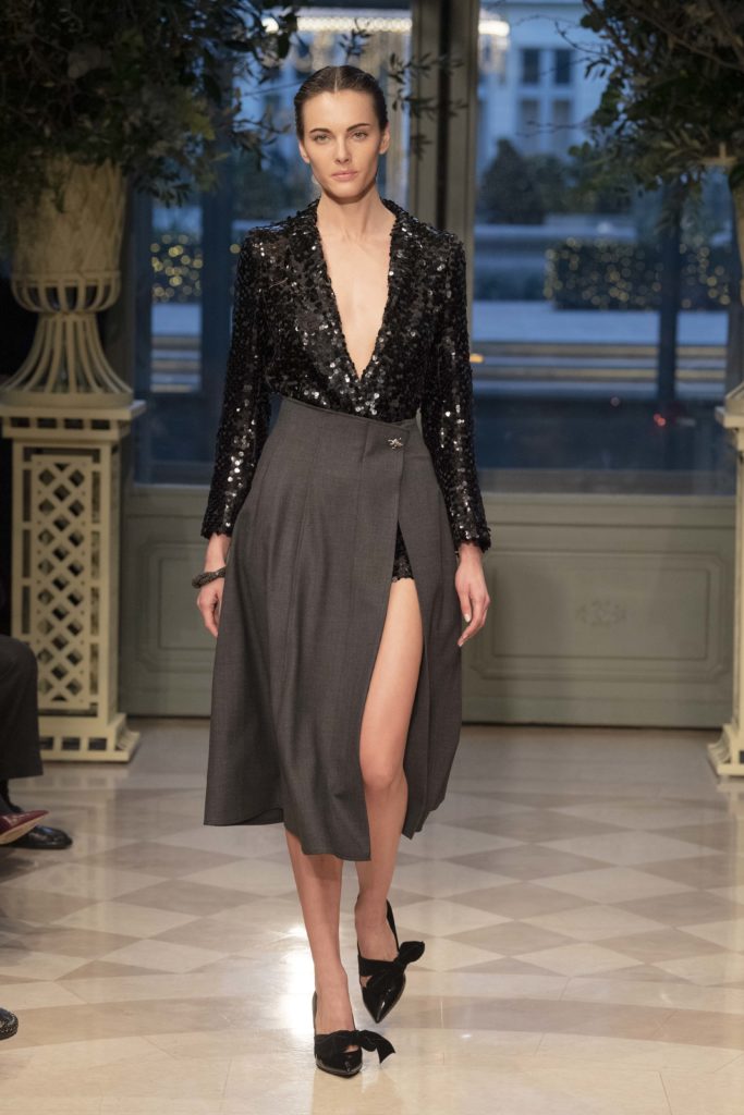Une trentaine de silhouettes ont été présentées : le dressing d’une Parisienne contemporaine, équilibre entre élégance nonchalante et sophistication d’aujourd’hui.